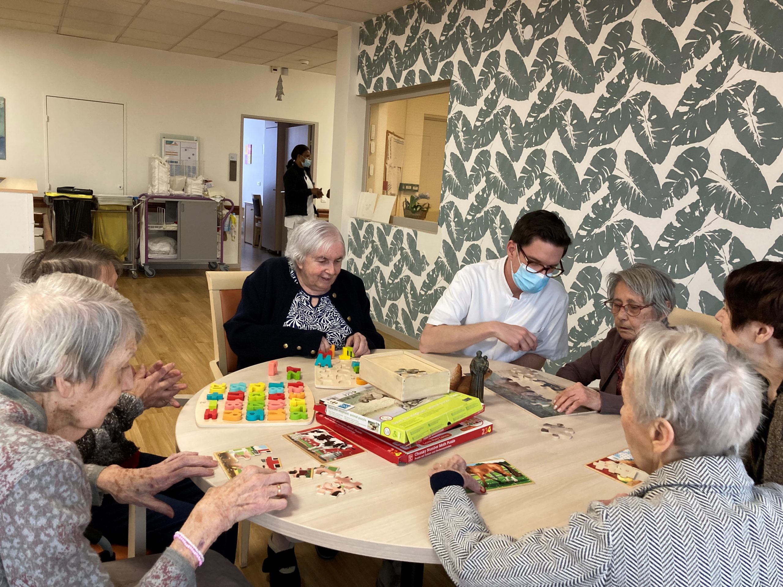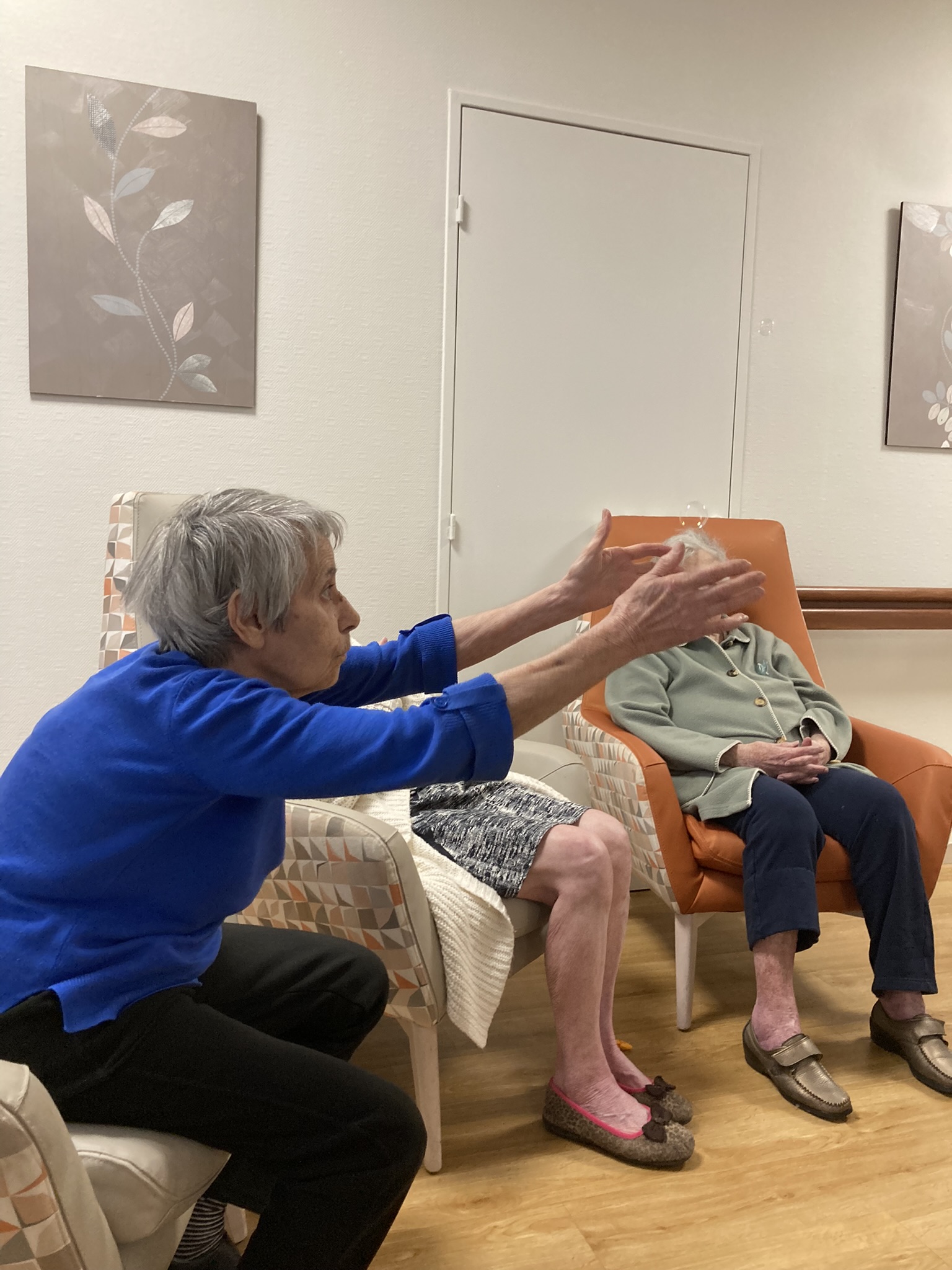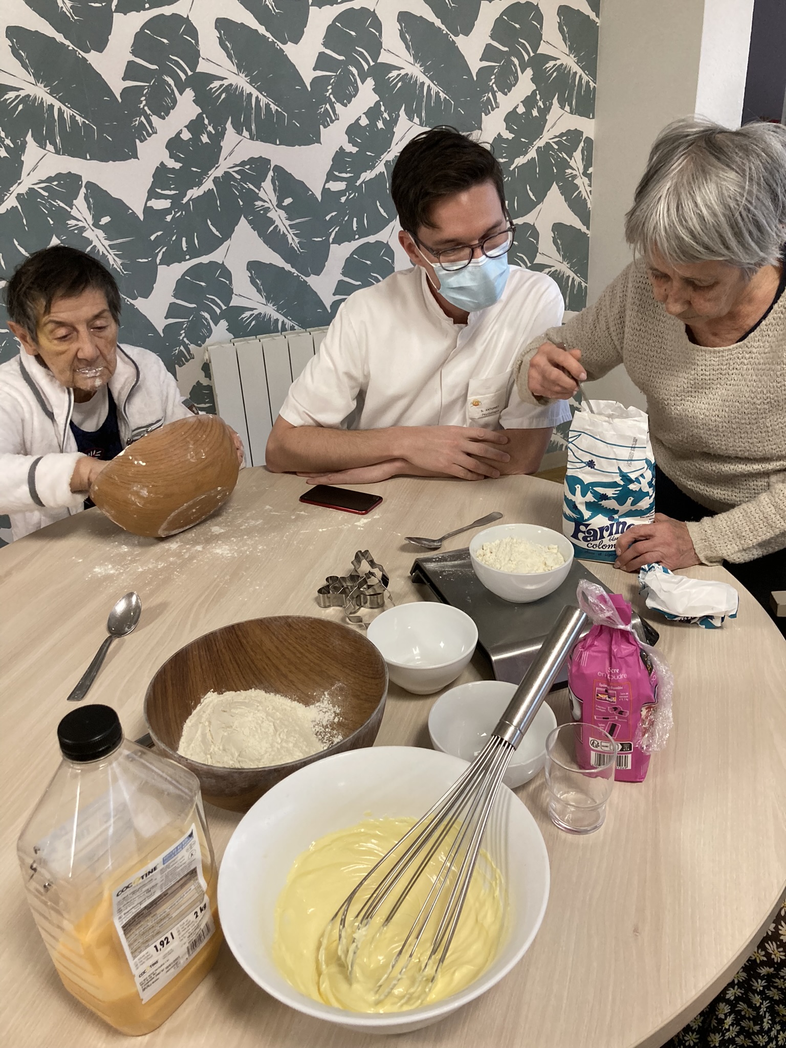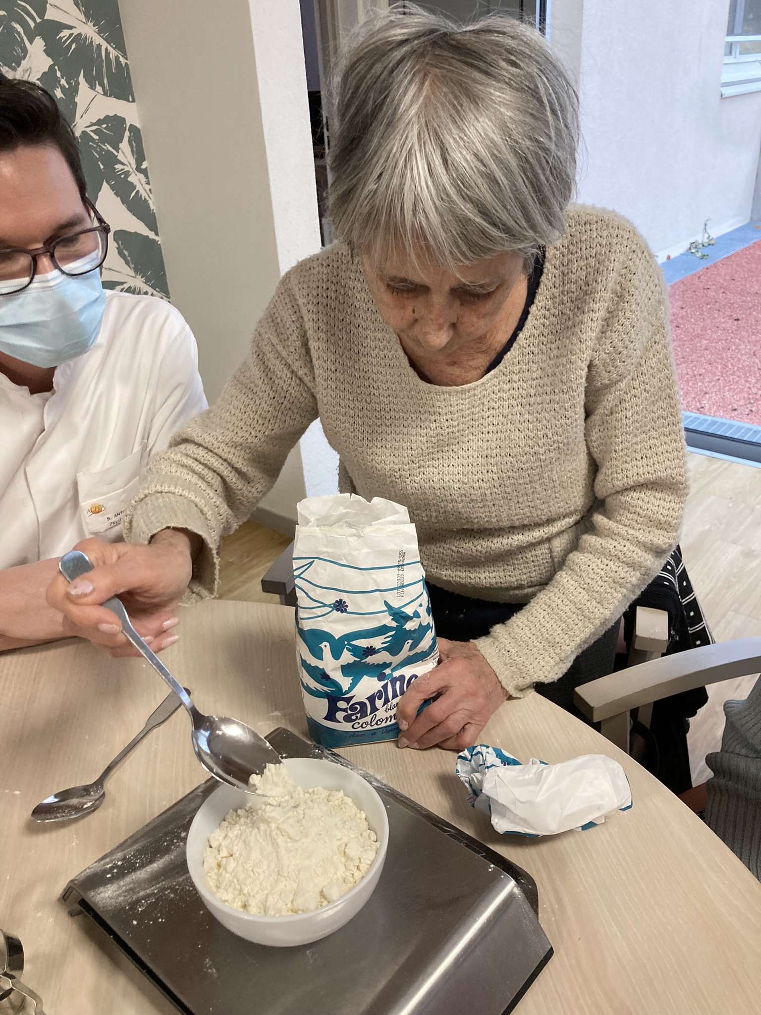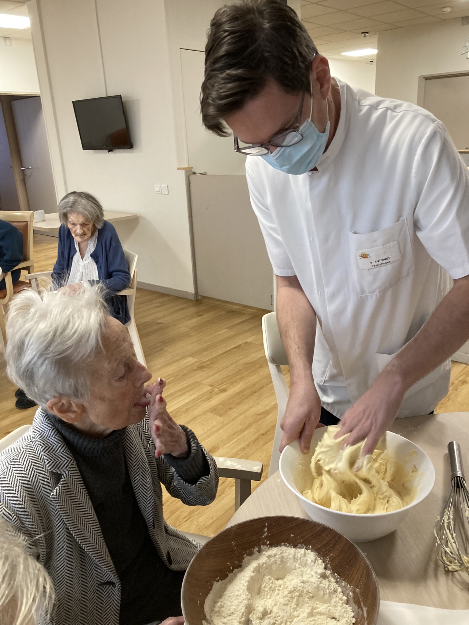 Chaque vendredi matin, le psychologue et la psychomotricienne organisent un atelier d’expérimentations sensorielles. Les résidentes redécouvrent des recettes de cuisine, des jeux de motricité ou de dextérité. Un moment propice aux échanges et adapté à chacun.