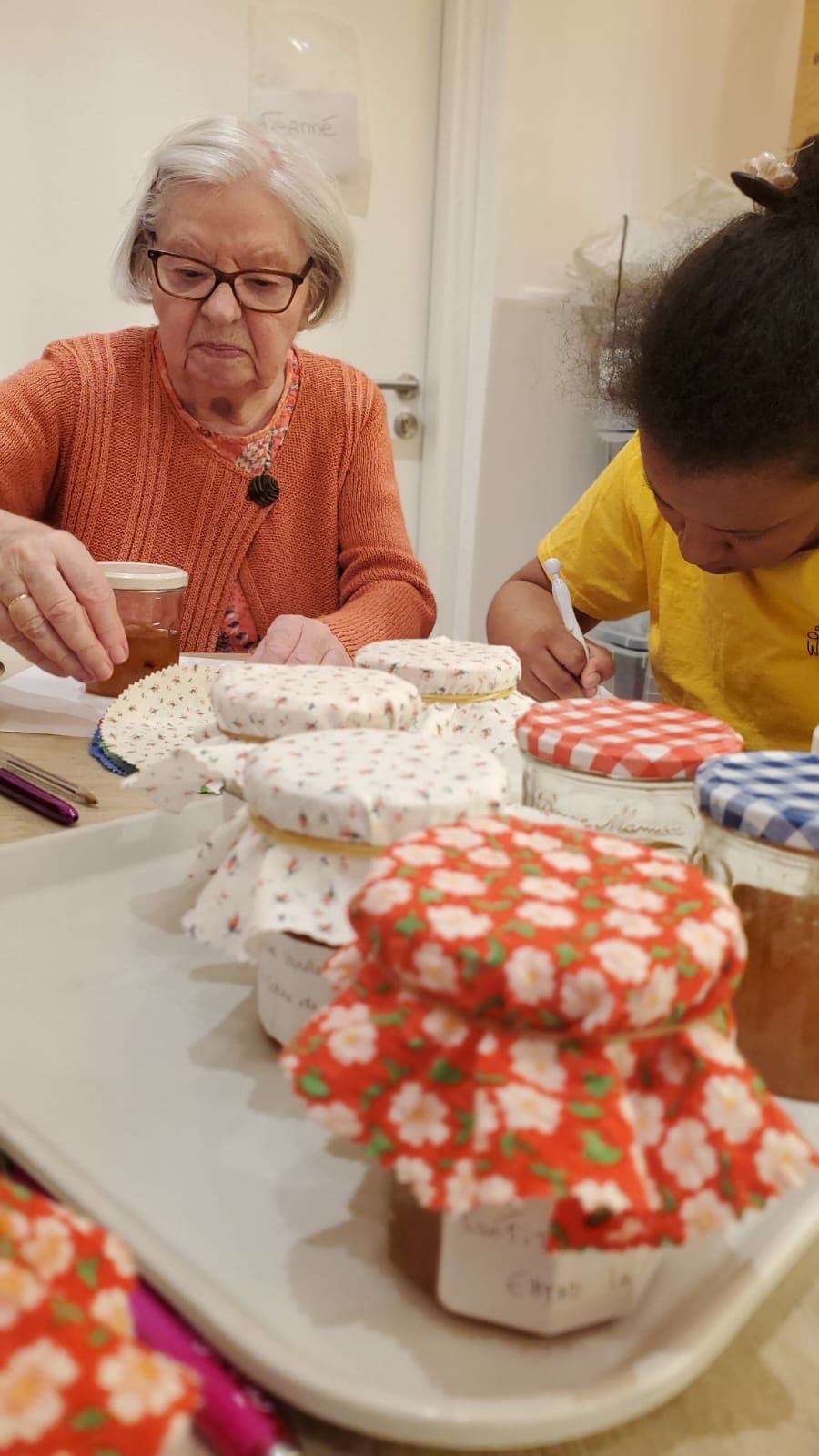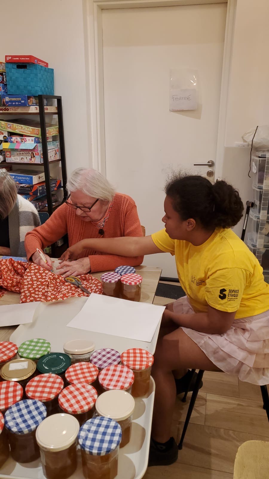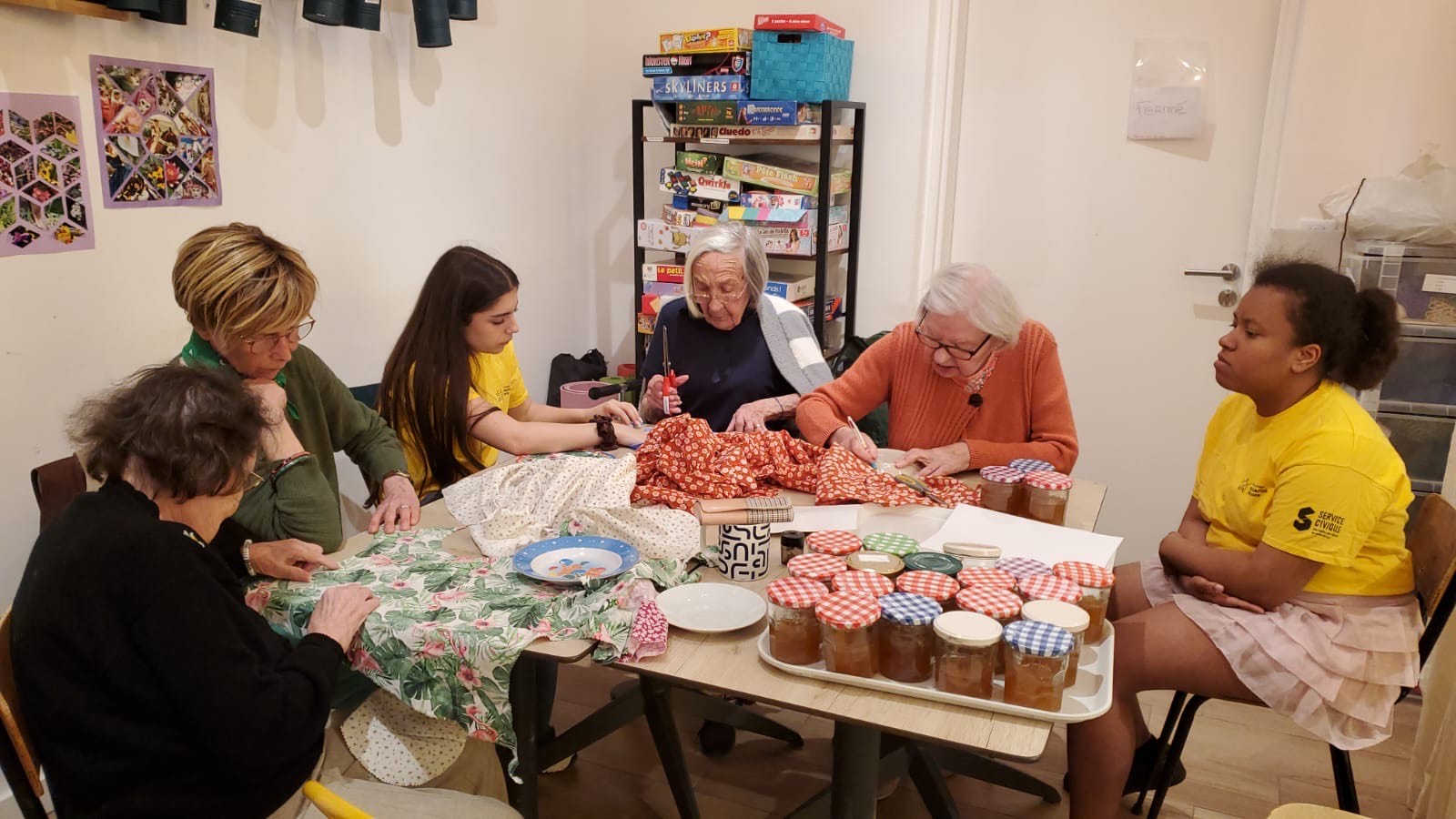 A la demande du Café Daddy de la Croix-Rousse, nous avons participé à la brocante du dimanche 25 mai en confectionnant des pots de confiture à la Poire-Vanille-Citron vert. Nous avons organisé un atelier cuisine pour éplucher et préparer la confiture, puis, nous nous sommes rendues au café pour décorer les pots. Une belle initiative menée par Eléa en service civique.