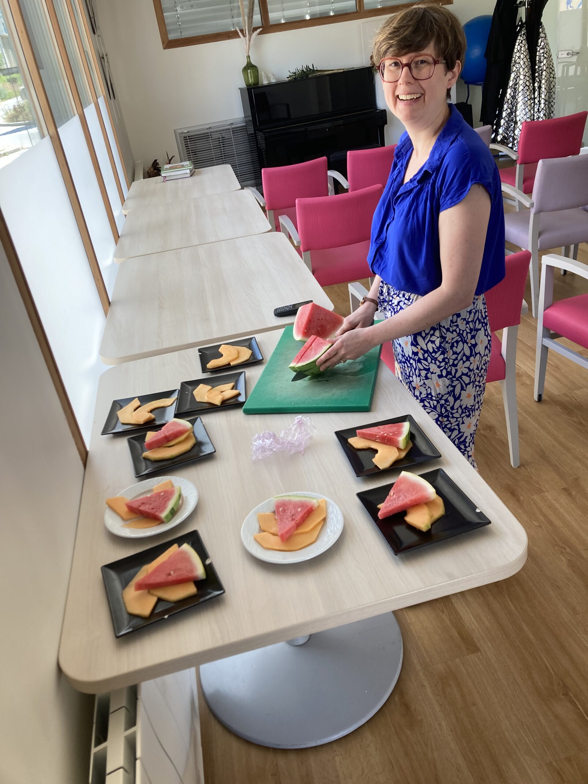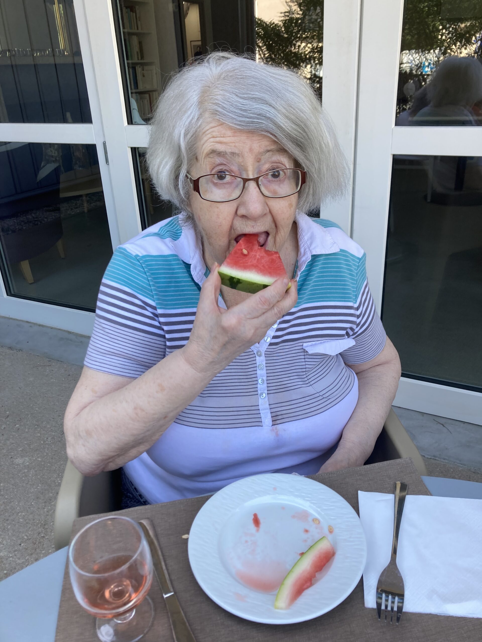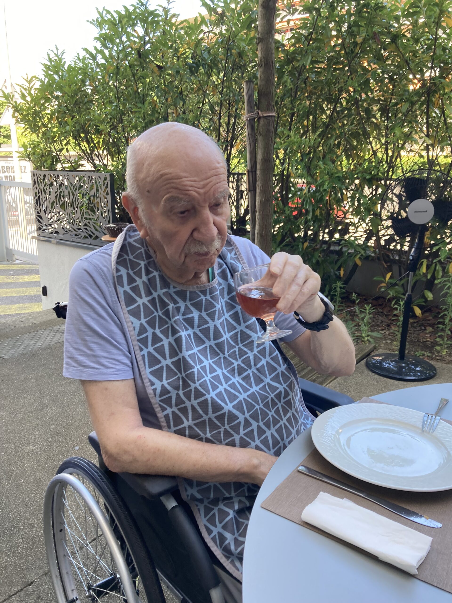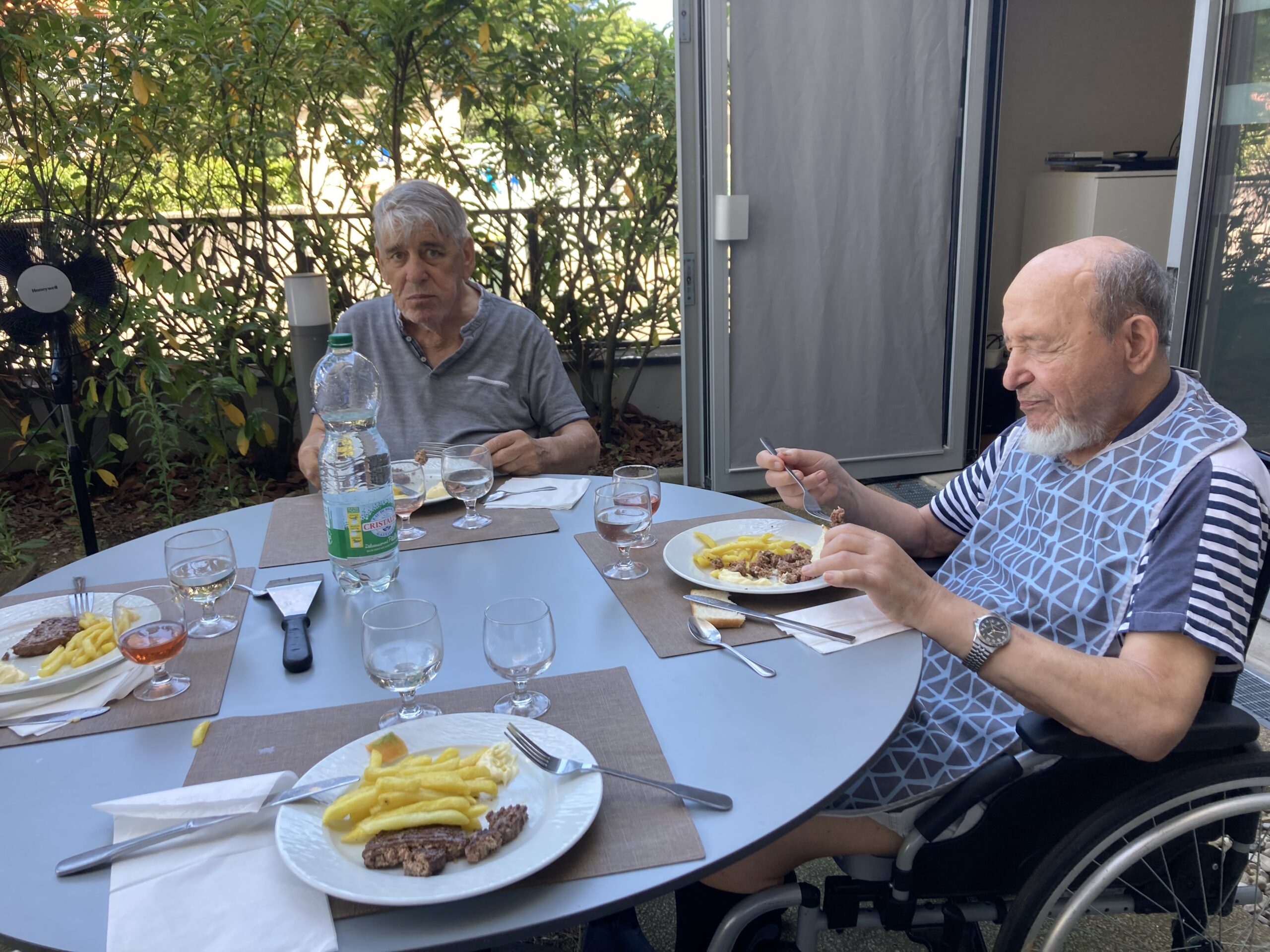 Avec l’été, nous avons repris les repas partagés. Installés sur la terrasse du RDC, nous profitons d’un barbecue maison, avec 6 résidents invités. Tour à tour, nous proposons à un autre groupe de se réunir pour déjeuner en extérieur. Que de belles découvertes gustatives !