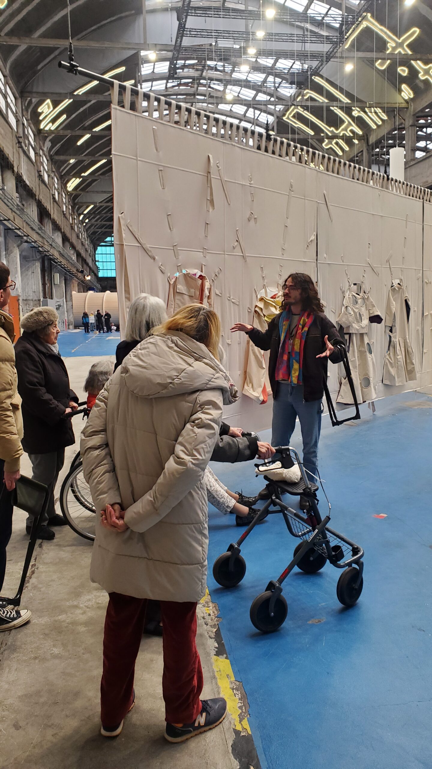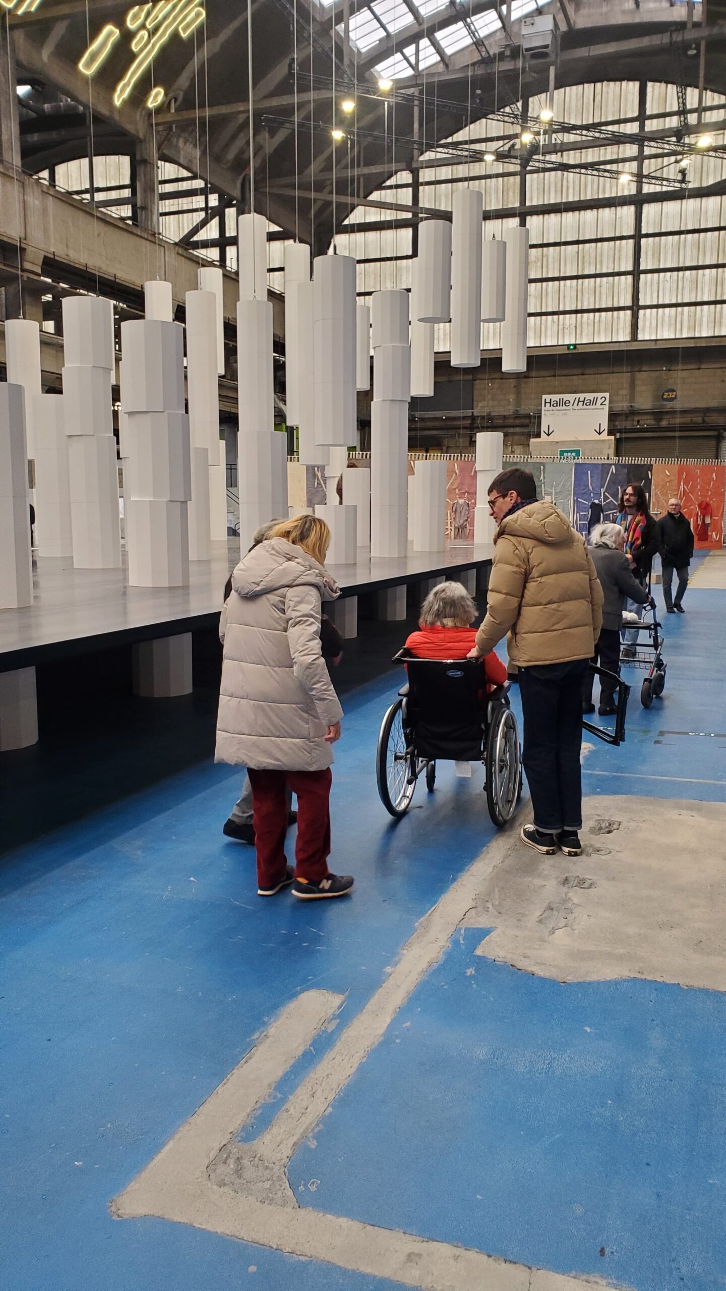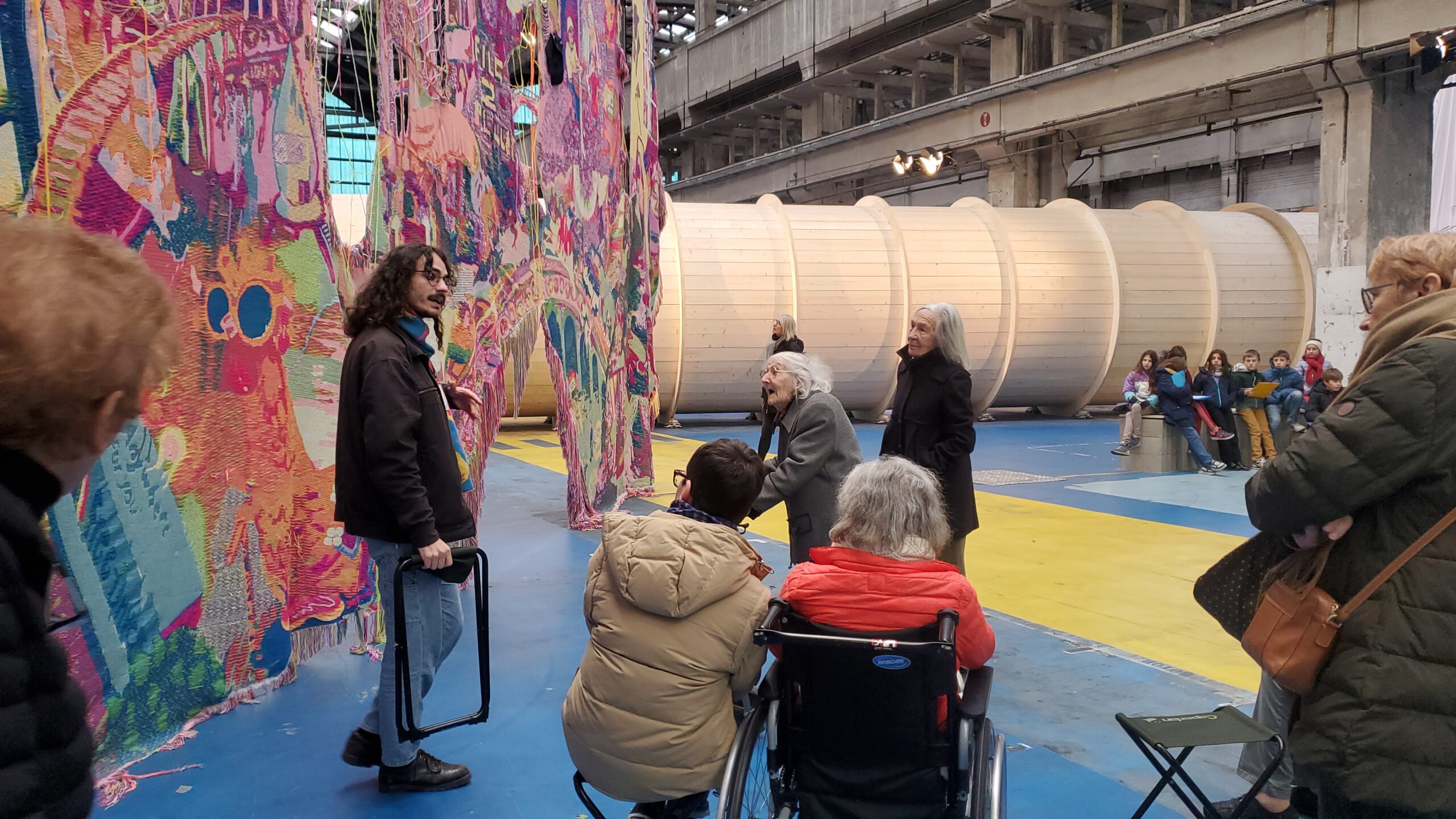 Le vendredi 29 novembre, un groupe de résidentes a découvert l’exposition de la 17ème Biennale d’Art contemporain, La Voix des Fleuves, aux Grandes Locos de Oullins. Le médiateur culturel nous a fait circuler entre des œuvres incroyables pour terminer avec celle d’Oliver Beer, The Cave. » Composé dans et pour la grotte de Font-de-Gaume, l’opéra vidéo The Cave met en scène huit interprètes qui chantent leur premier souvenir musical. La grotte fonctionne comme un diapason naturel, amplifiant et transformant leurs voix pour s’harmoniser avec les tonalités du lieu. Une expérience immersive, l’installation à huit écrans d’Oliver Beer invite les spectateurs à découvrir l’environnement sonore de la grotte autant qu’un patrimoine musical qui traverse le temps et les cultures. »