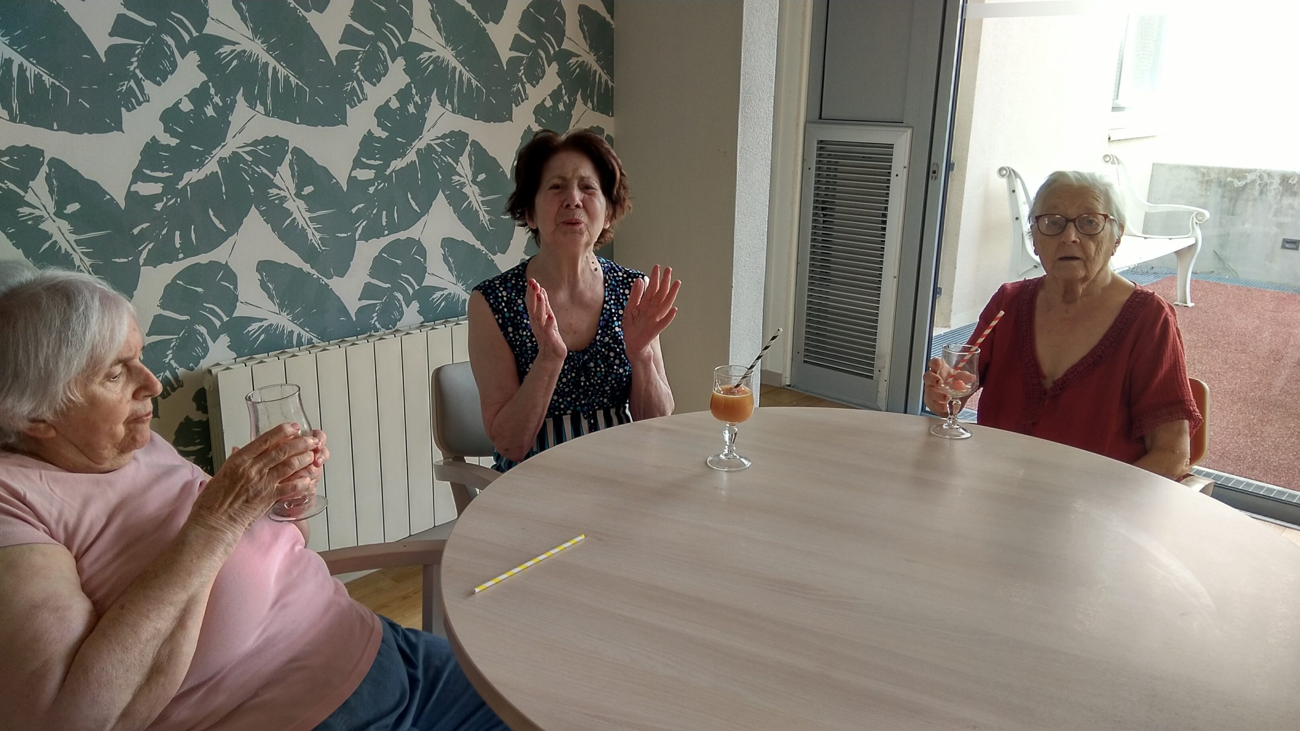 Pendant l’été, des chariots aux couleurs vives, circulent dans les étages pour distribuer aux résidents quelques douceurs. C’est une occasion de découvrir différents cocktails, comme Le RIO (jus d’orange, sirop de fraise, eau pétillante) ou le NOOVO MOI (jus de pomme, sirop de menthe, eau pétillante). Les coupes glacées multiplient les saveurs avec de la pistache, du rhum raisin ou de la noix de coco.