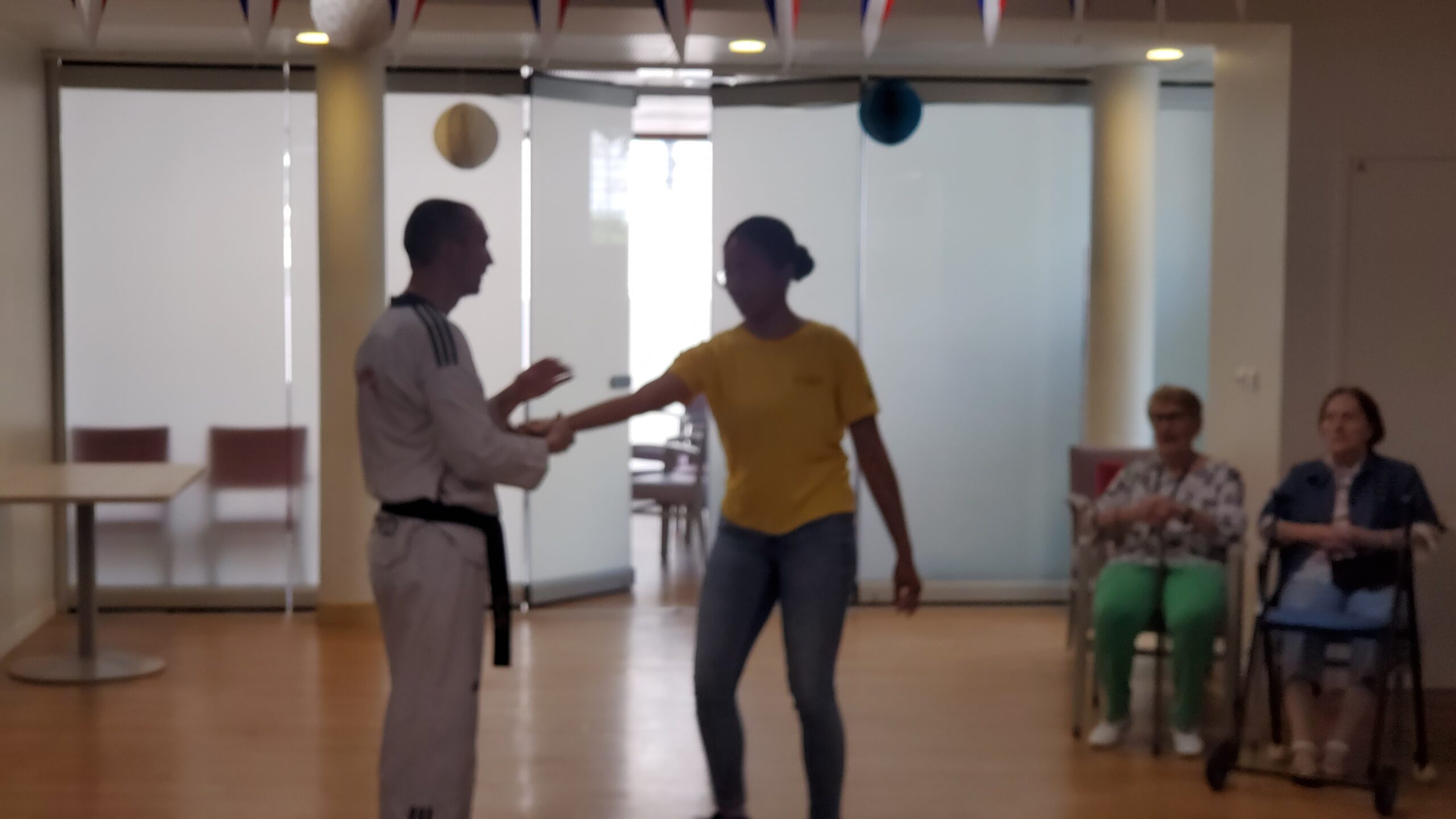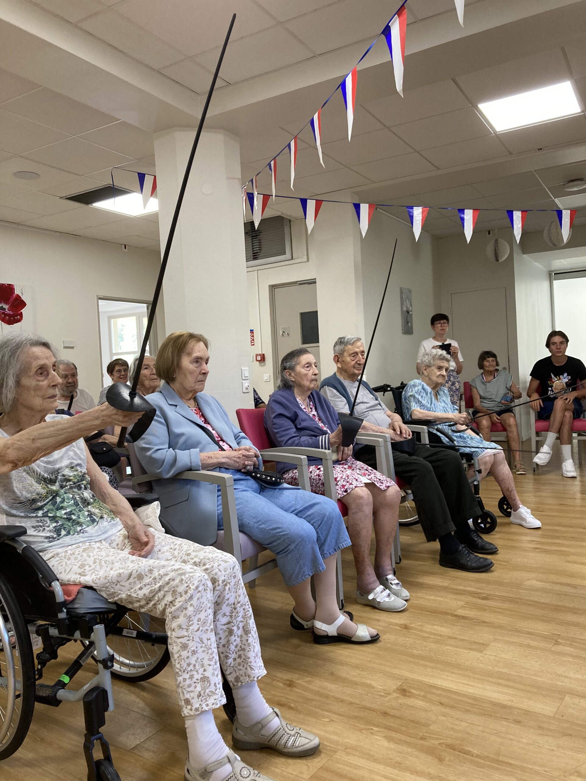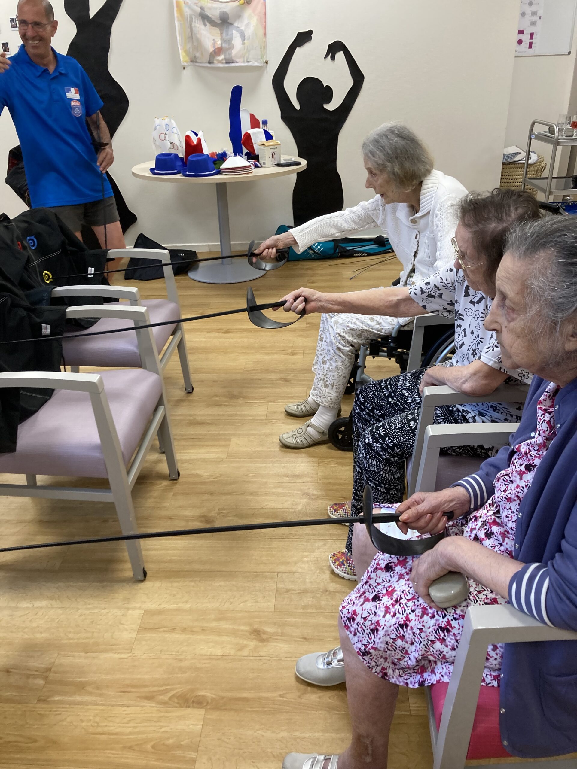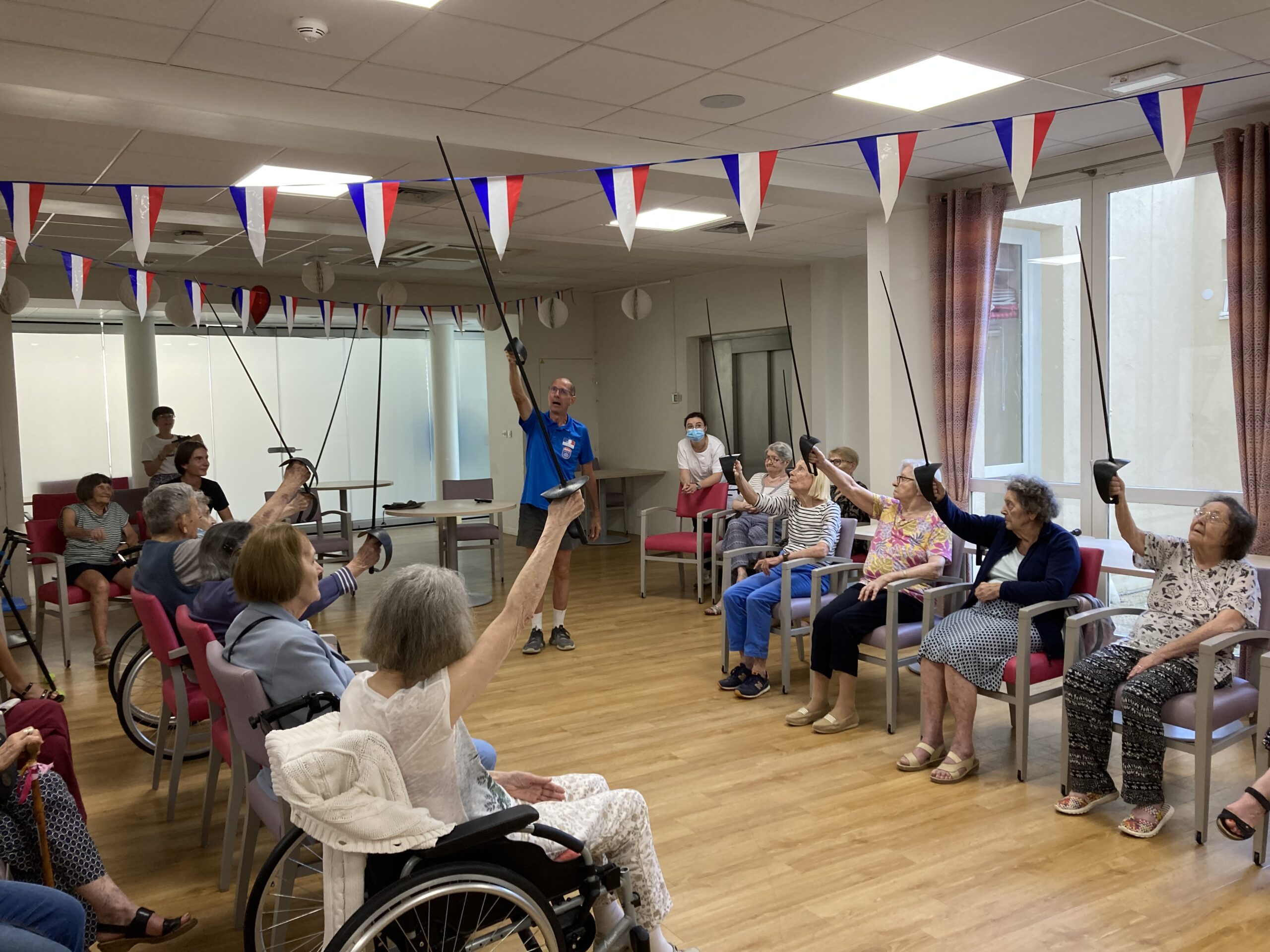 Pour préparer les Jeux Olympiques de Paris, nous avons organisé pendant ce mois de juillet, des démonstrations de sports olympiques. Une fois par semaine, nous découvrirons le Taekwondo, la Boxe et l’Escrime. Des temps de partage très appréciés par nos résidents qui repoussent leurs limites et leurs craintes.
