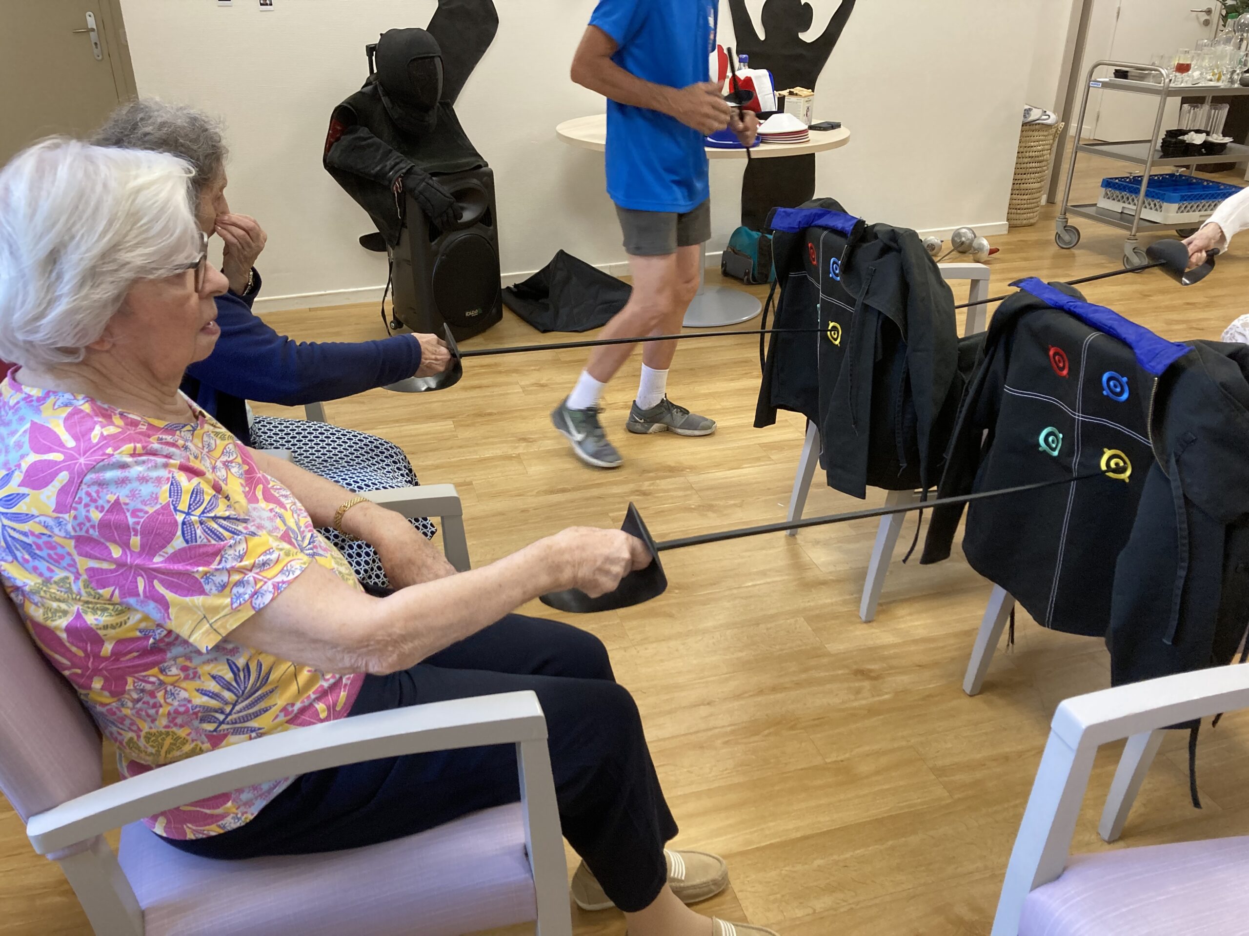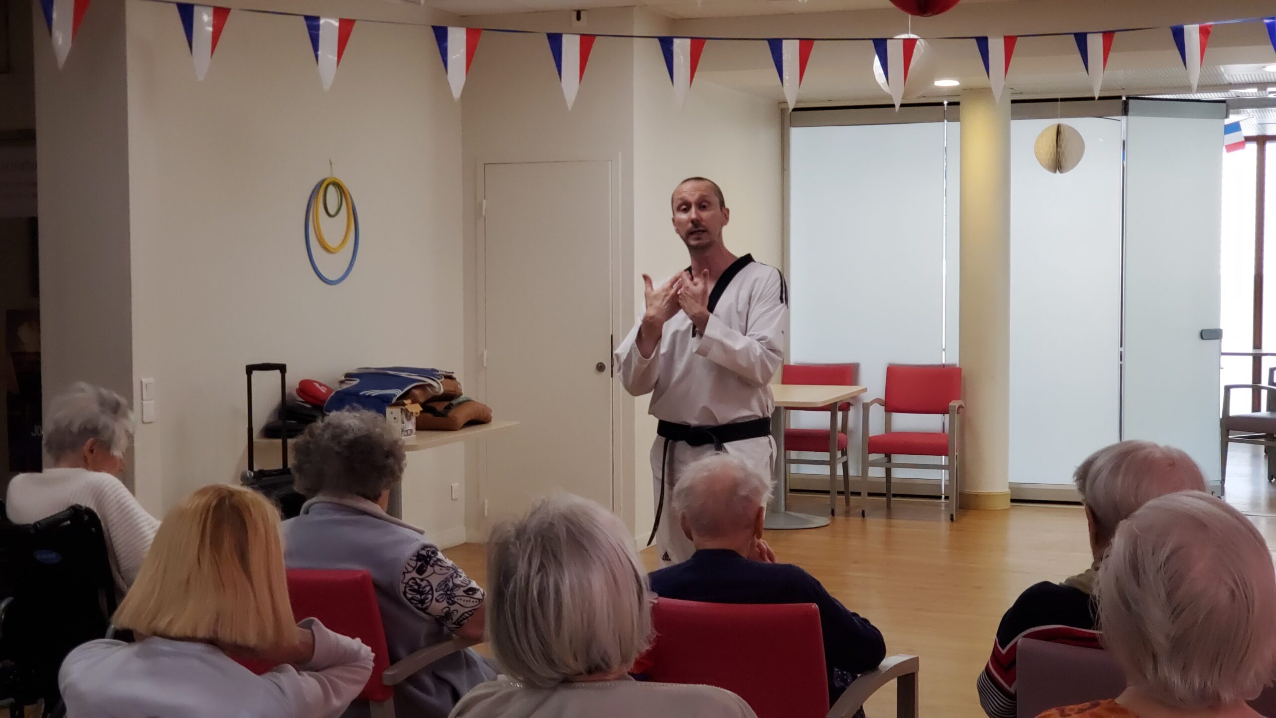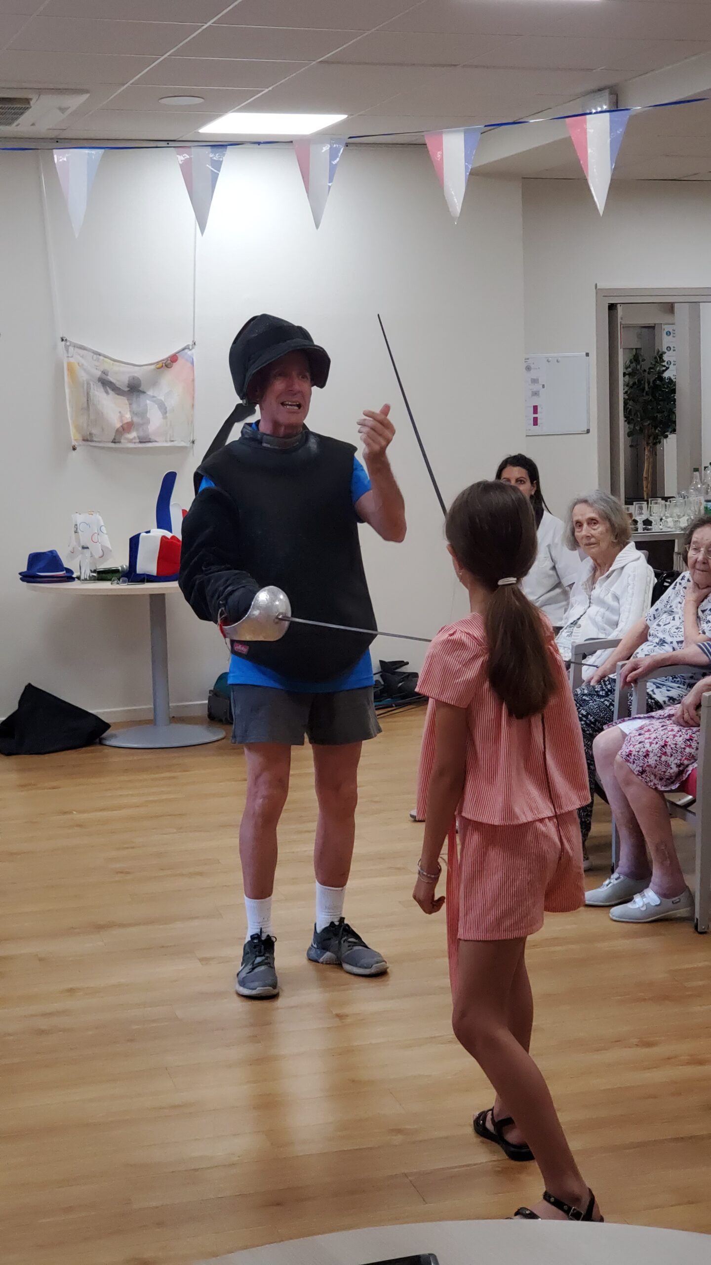 Pour préparer les Jeux Olympiques de Paris, nous avons organisé pendant ce mois de juillet, des démonstrations de sports olympiques. Une fois par semaine, nous découvrirons le Taekwondo, la Boxe et l’Escrime. Des temps de partage très appréciés par nos résidents qui repoussent leurs limites et leurs craintes.