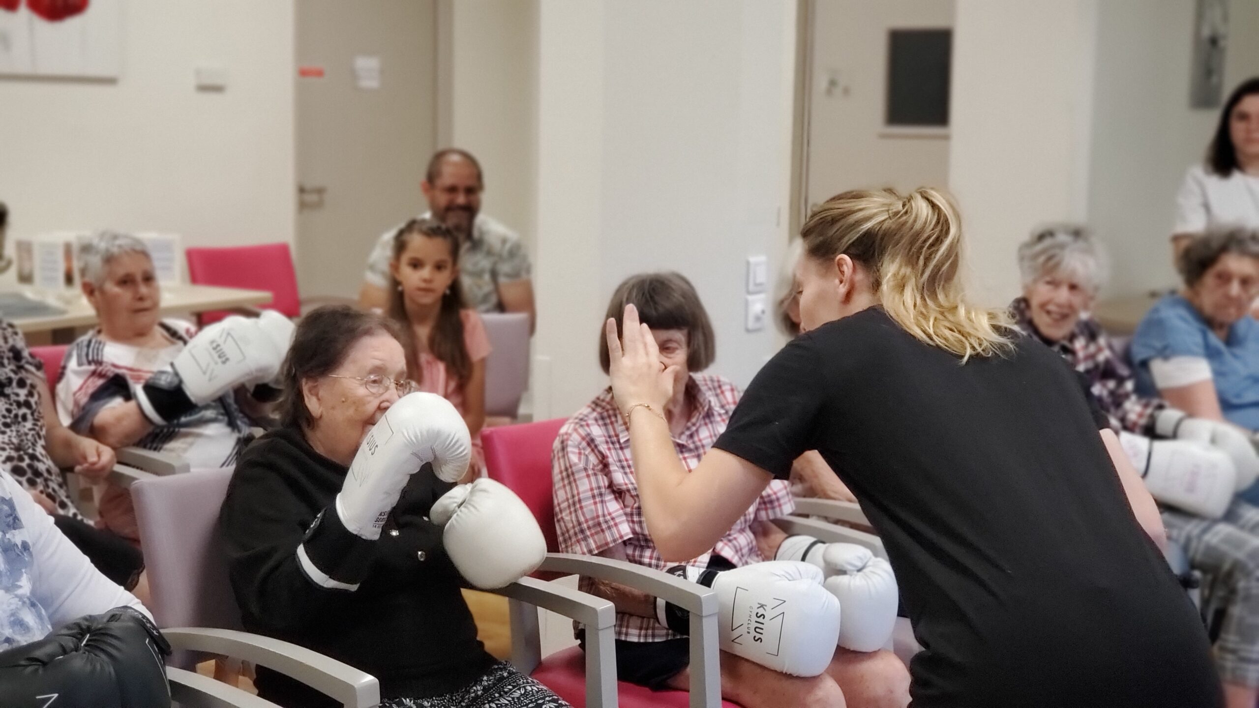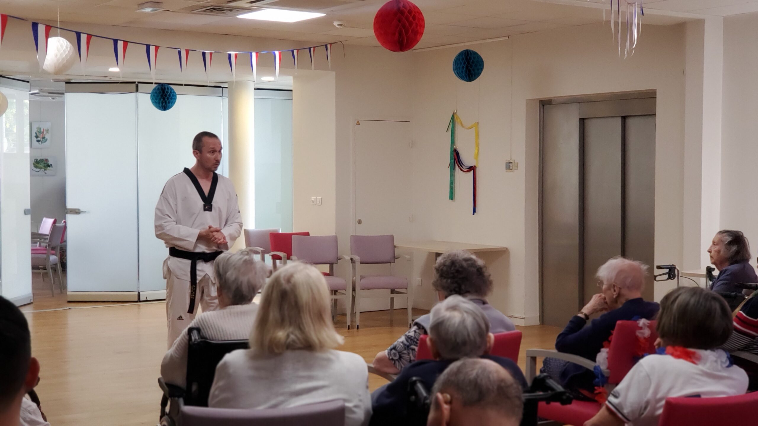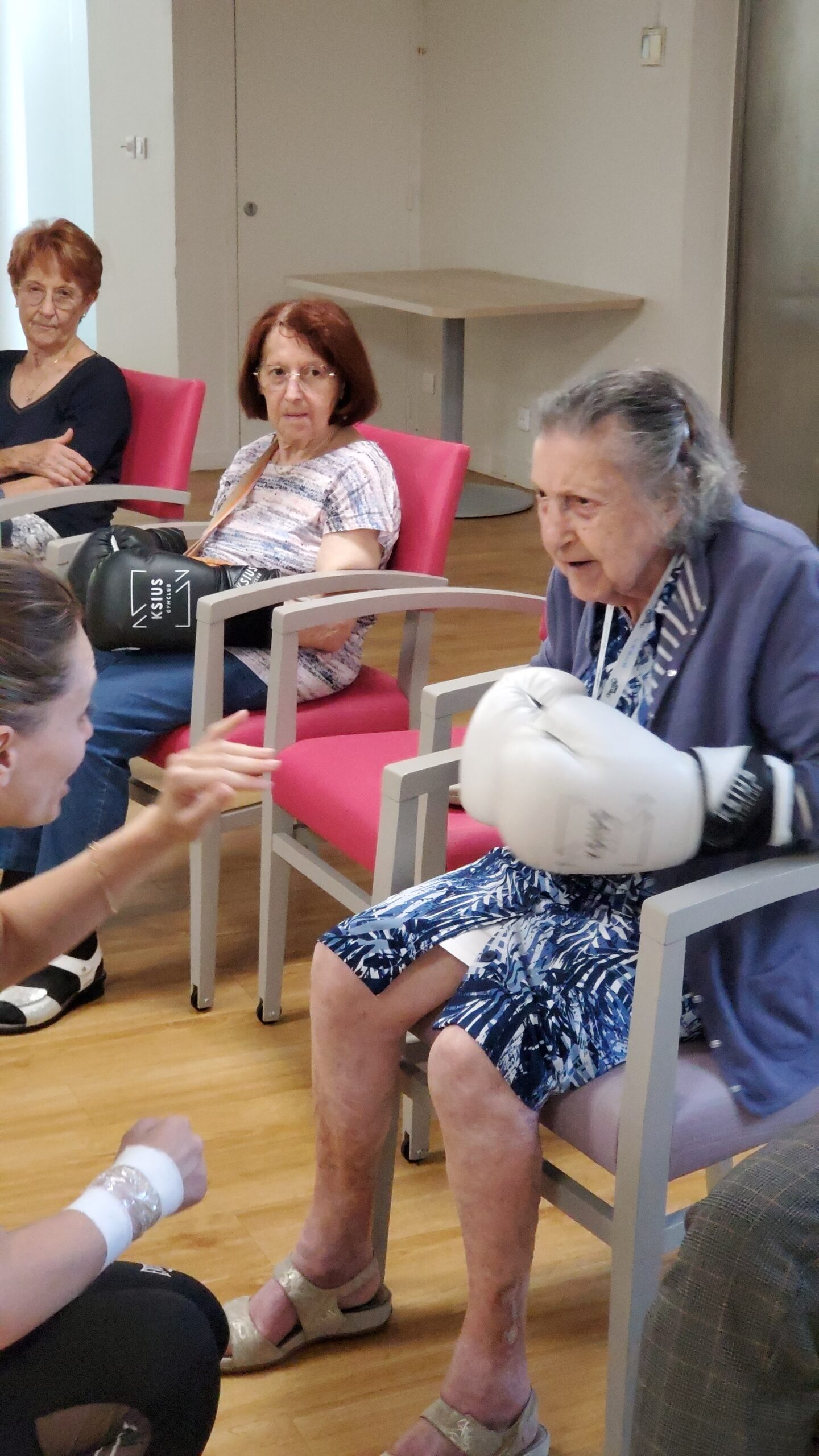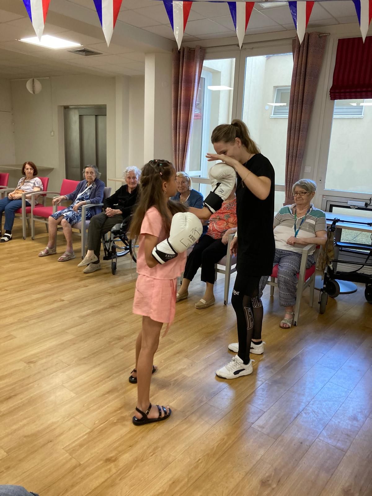 Pour préparer les Jeux Olympiques de Paris, nous avons organisé pendant ce mois de juillet, des démonstrations de sports olympiques. Une fois par semaine, nous découvrirons le Taekwondo, la Boxe et l’Escrime. Des temps de partage très appréciés par nos résidents qui repoussent leurs limites et leurs craintes.