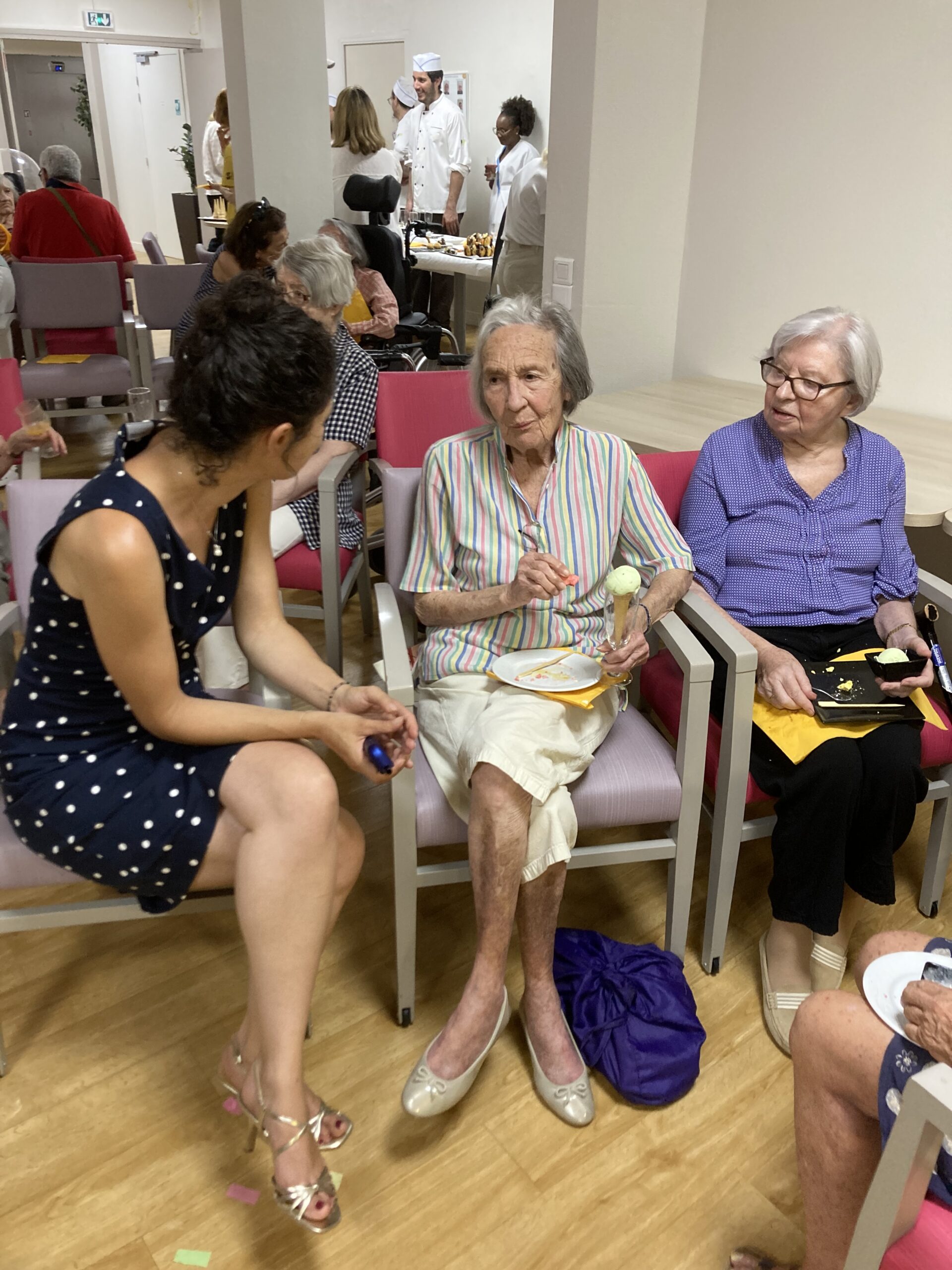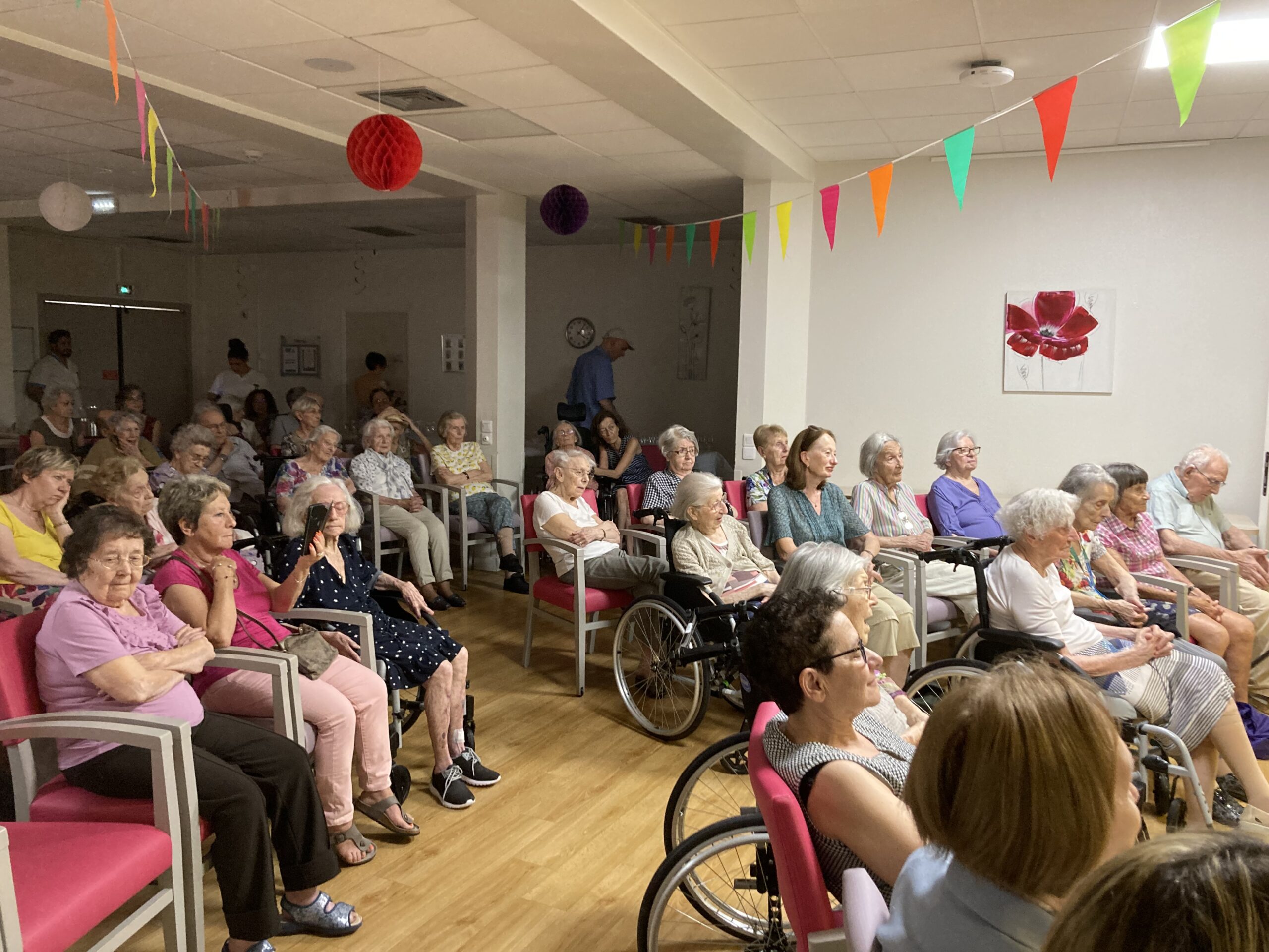 Ce vendredi 28 juin, nous avons fêté l’été entouré des familles et amis en compagnie du Carmine Show. Un spectacle de magie et de chant très bien orchestré, haut en couleurs, avec des tours de magie mystérieux. Nous avons pu aussi apprécié un buffet de gourmandises exceptionnelles avec des mini choux, des pyramides de madeleines, des glaces, des brochettes de fruits et de la barbe à papa, le tout arrosé de pétillant. Nous remercions le travail effectué par les chefs de la cuisine.