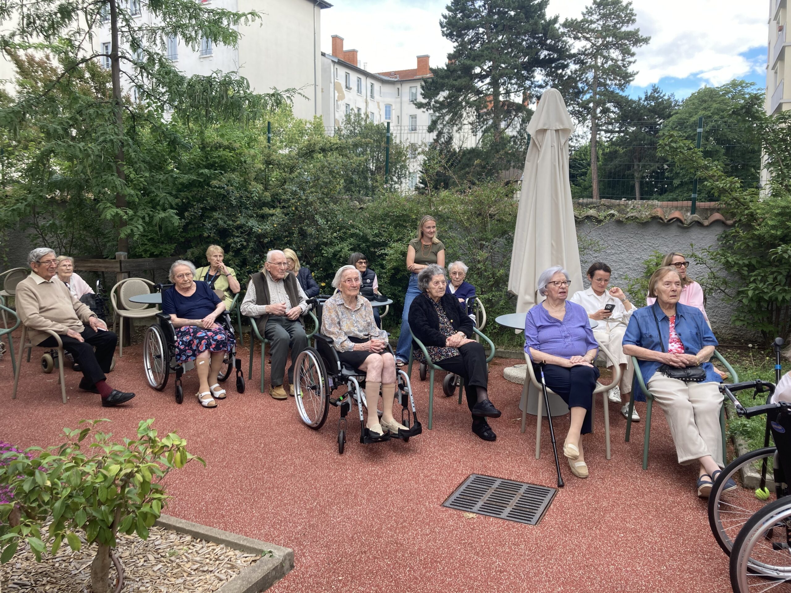 Pour la Fête de la Musique, ce vendredi 21 juin, nous nous sommes réunis pour un apéro-dinatoire musical dans le jardin de la Résidence. Nous avons apprécié le concert de la Chorale instrumentale, Happy Gones, tout en buvant un verre de rosé. En évitant les gouttes de pluie, nous avons pu profiter d’une belle soirée.