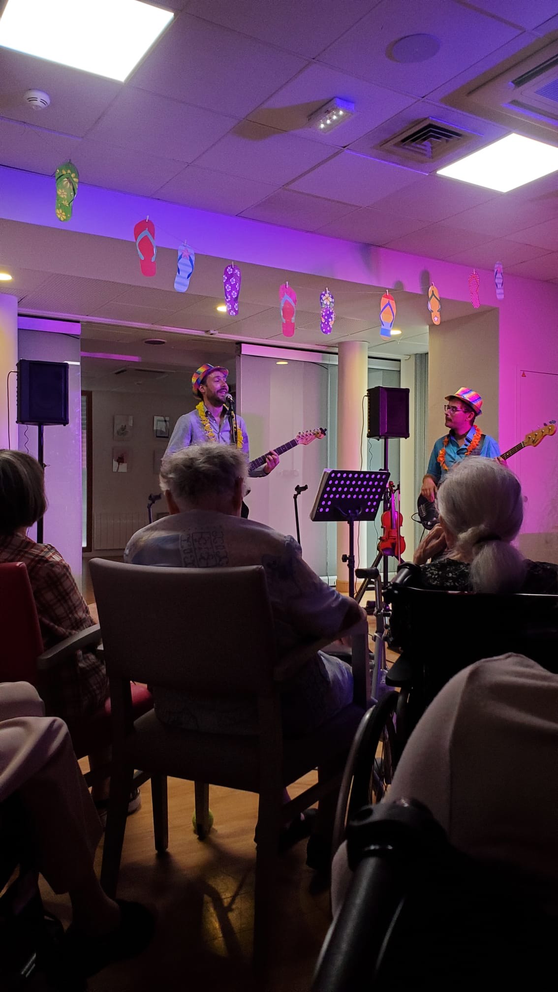 Jeudi 26 juin, nous avons accueilli le groupe Pierre et Chausson pour s’amuser, chanter et danser aux rythmes de la guitare et du violon. Belle ambiance qui s’est terminée par un buffet partagé. Nous avons célébré le début de l’été avec beaucoup d’entrain.