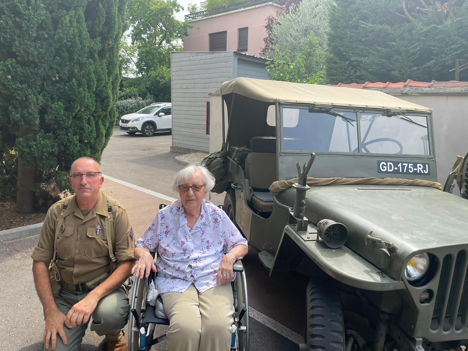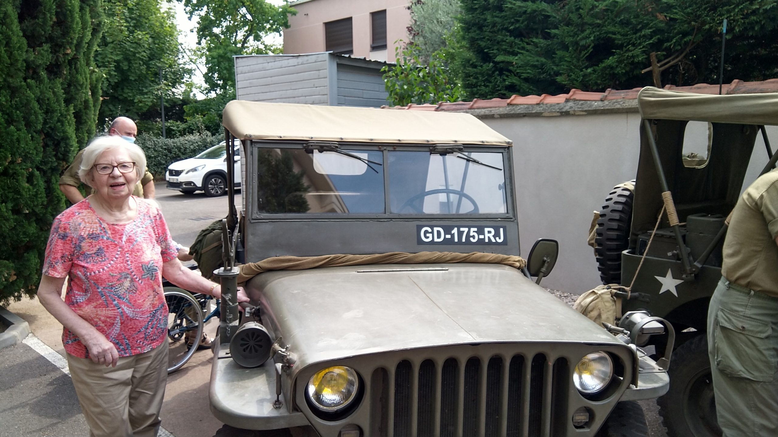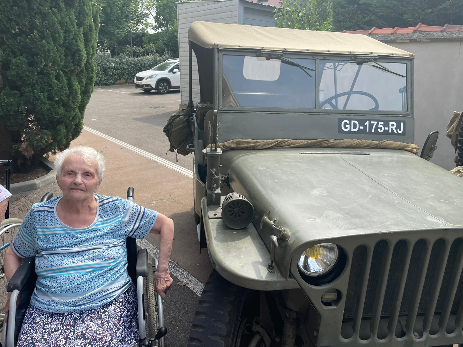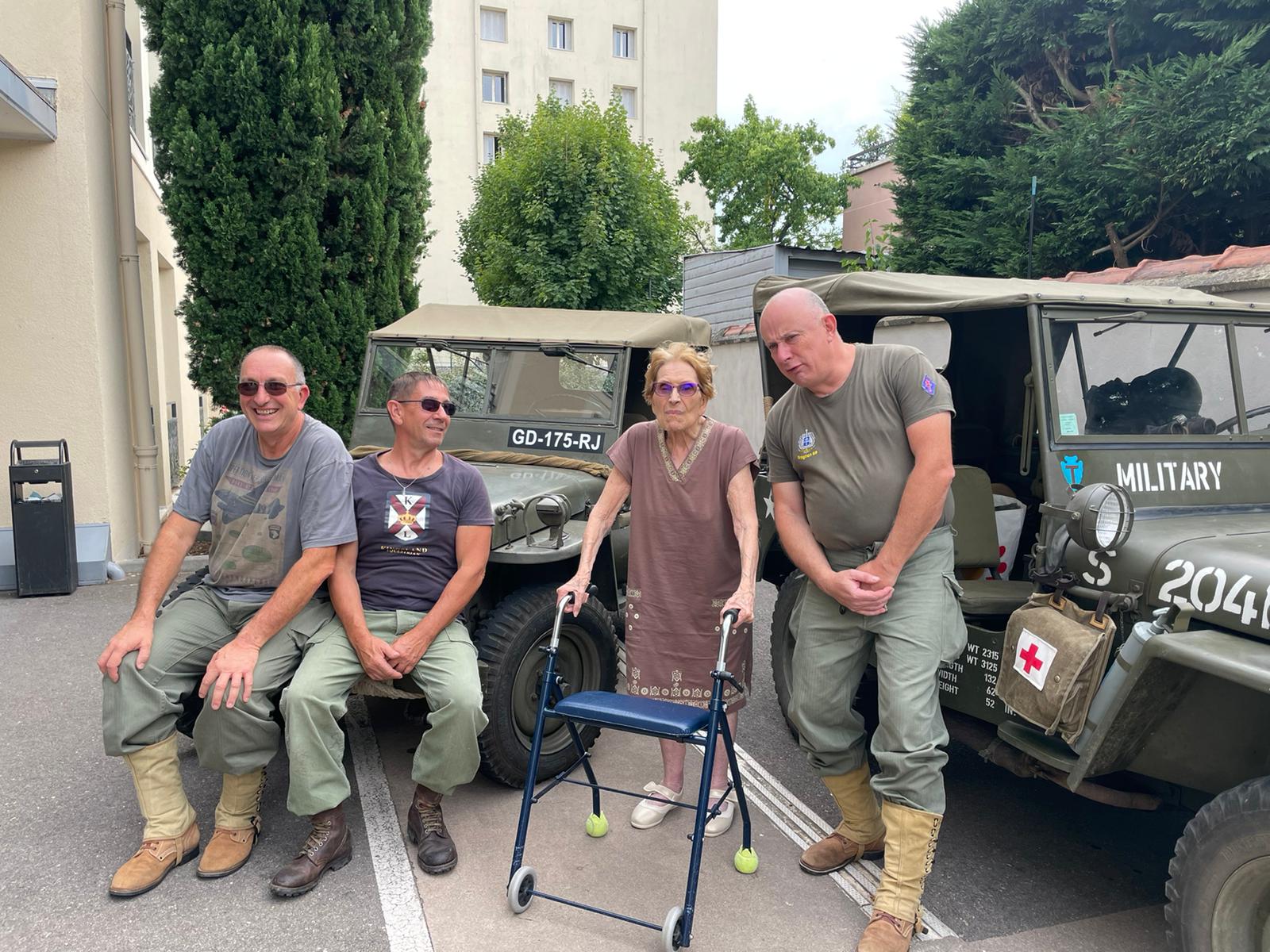 Cette année, pour fêter le 14 juillet, « n’ayant pas pu tirer un feu d’artifice dans le jardin », nous avons eu l’idée de faire venir une association de reconstitution historique. Dragoon 69 réunis des passionnés de la seconde guerre mondiale et qui représente, plus spécifiquement, un régiment de Fusiliers-Marins débarqué le 15 Aout 1944 en Provence. Connue pour assurer les cérémonies militaires et des journées de formation dans les écoles, ce jour-là, M. Dutronc, chef de groupe, est venu accompagné de 3 effectifs de Dragoon 69 et de 2 jeeps d’époque. Nous avons partagé une belle rencontre autour de souvenirs, avec la découverte des accessoires apportés, comme un gramophone, vinyles, et uniformes. Le goûter tout de bleu, blanc et rouge a été, pour l’occasion, une réussite. Le Cerdon a coulé à flots.