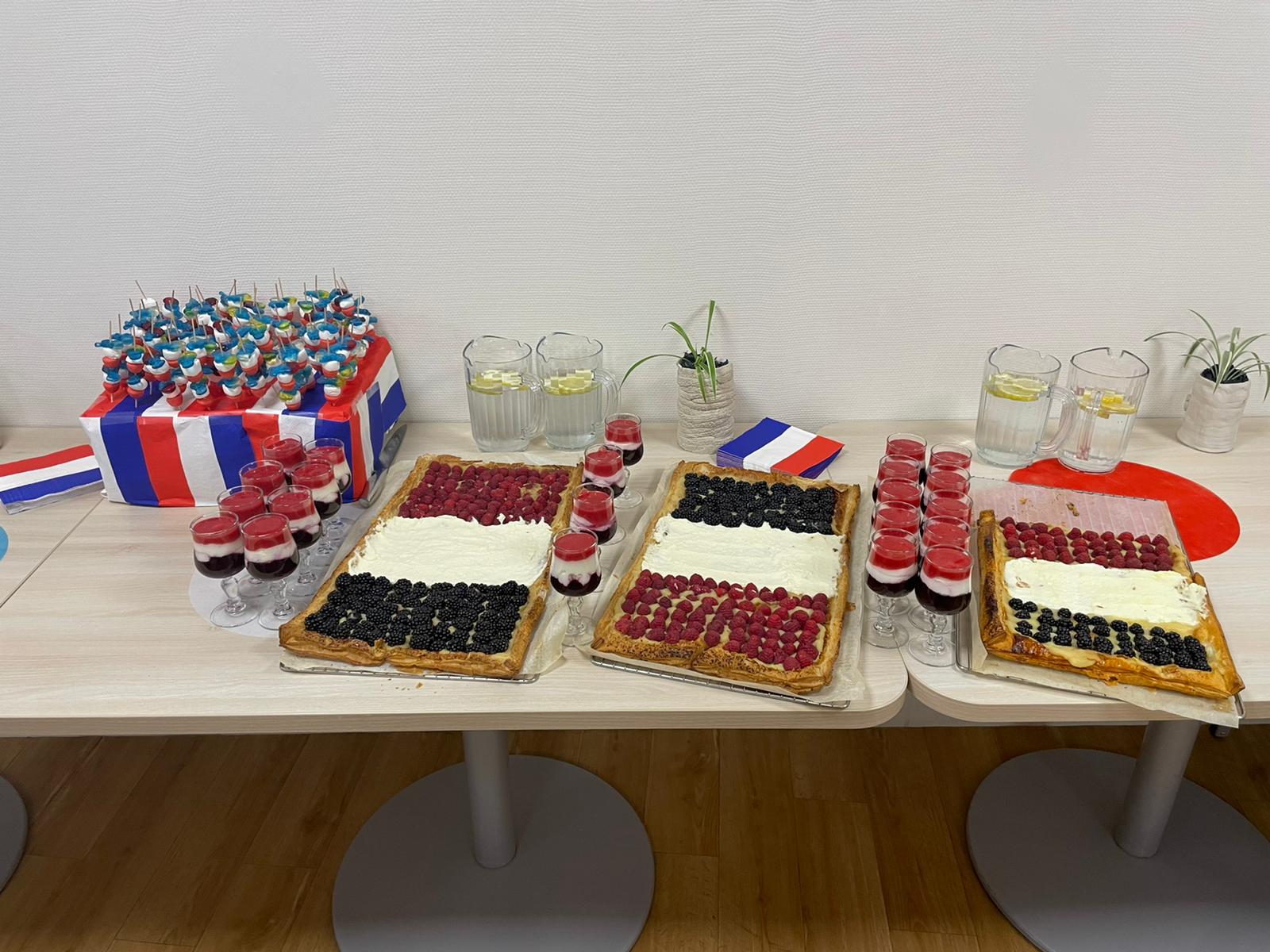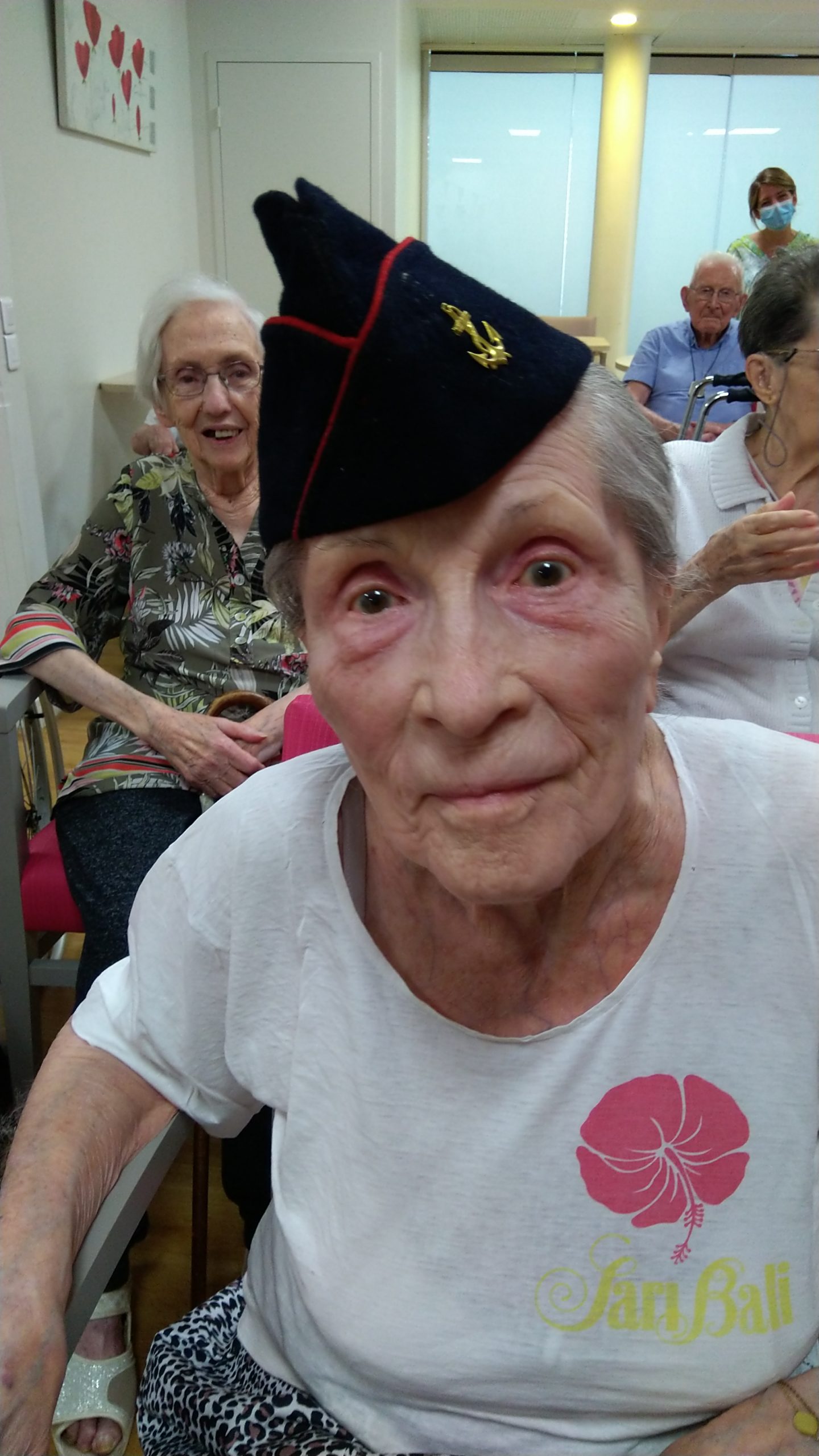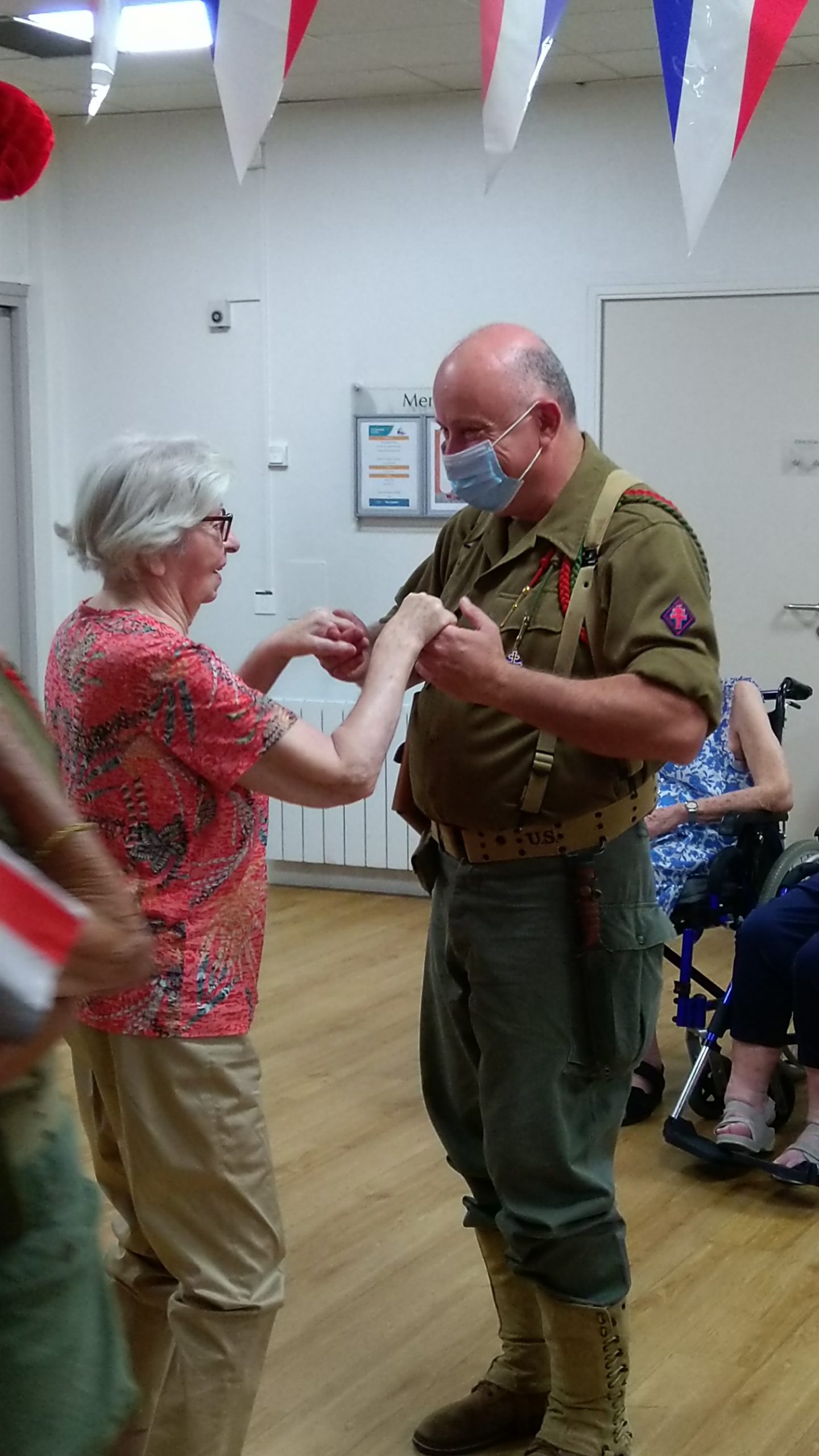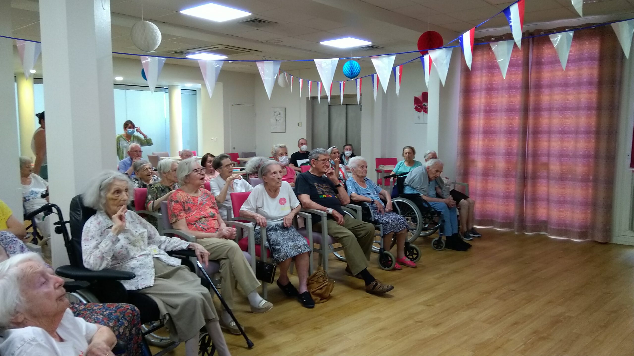 Cette année, pour fêter le 14 juillet, « n’ayant pas pu tirer un feu d’artifice dans le jardin », nous avons eu l’idée de faire venir une association de reconstitution historique. Dragoon 69 réunis des passionnés de la seconde guerre mondiale et qui représente, plus spécifiquement, un régiment de Fusiliers-Marins débarqué le 15 Aout 1944 en Provence. Connue pour assurer les cérémonies militaires et des journées de formation dans les écoles, ce jour-là, M. Dutronc, chef de groupe, est venu accompagné de 3 effectifs de Dragoon 69 et de 2 jeeps d’époque. Nous avons partagé une belle rencontre autour de souvenirs, avec la découverte des accessoires apportés, comme un gramophone, vinyles, et uniformes. Le goûter tout de bleu, blanc et rouge a été, pour l’occasion, une réussite. Le Cerdon a coulé à flots.