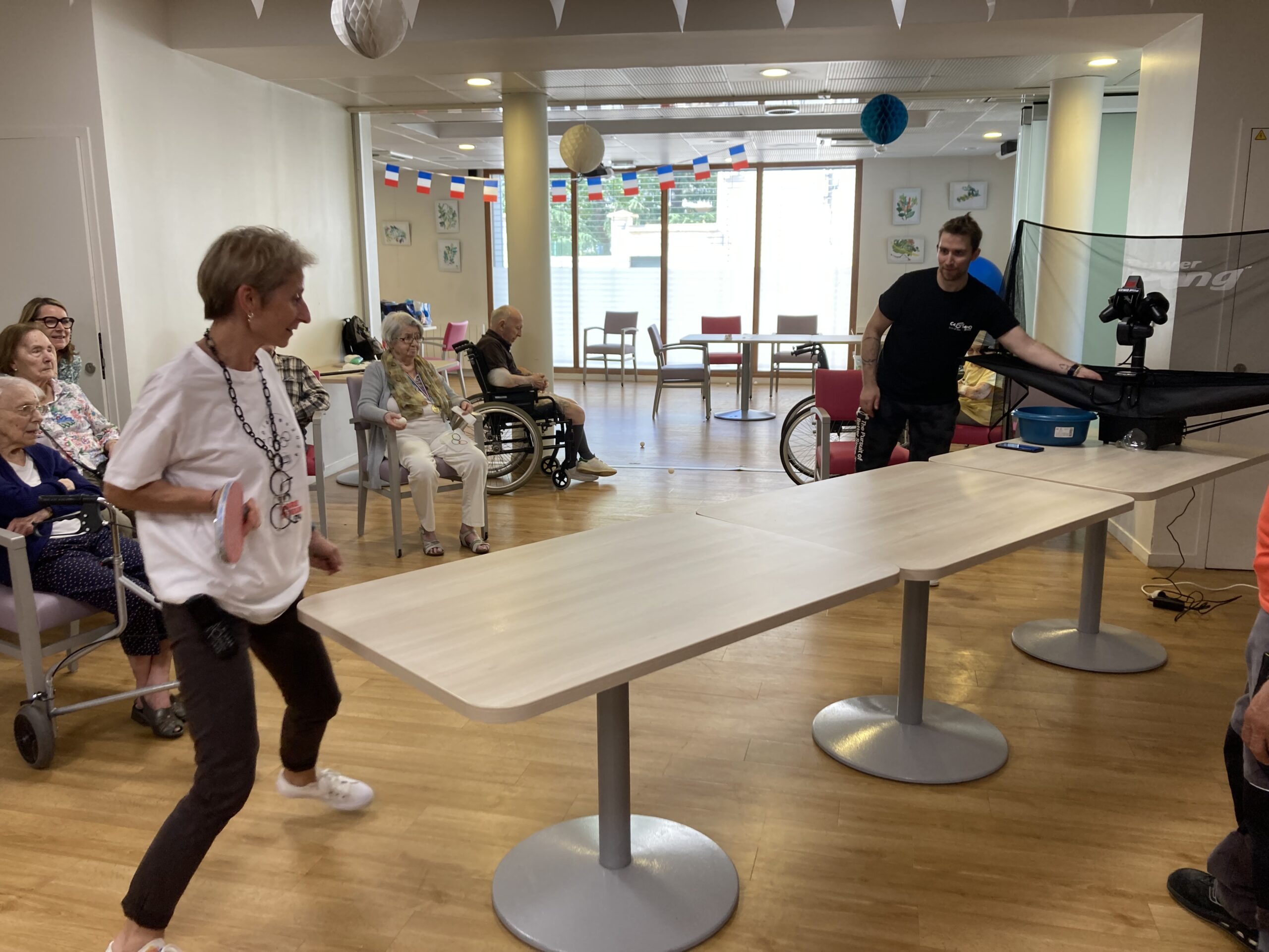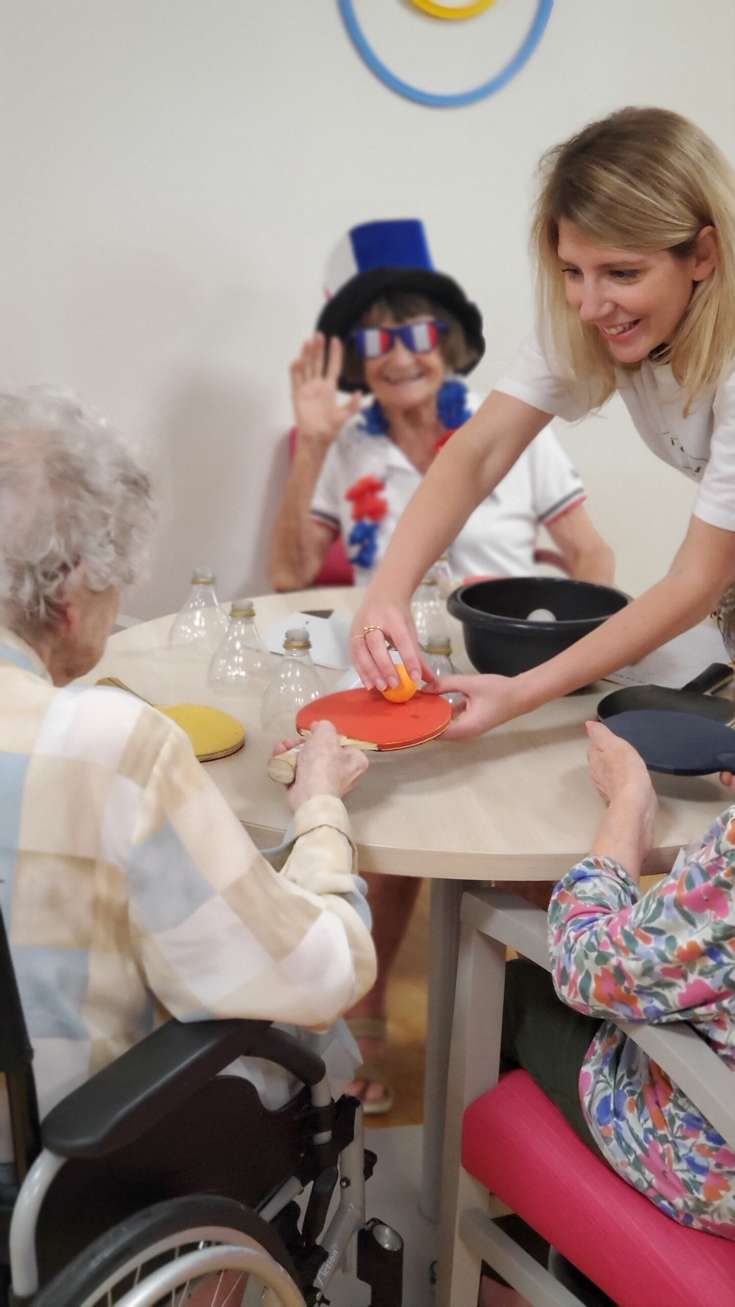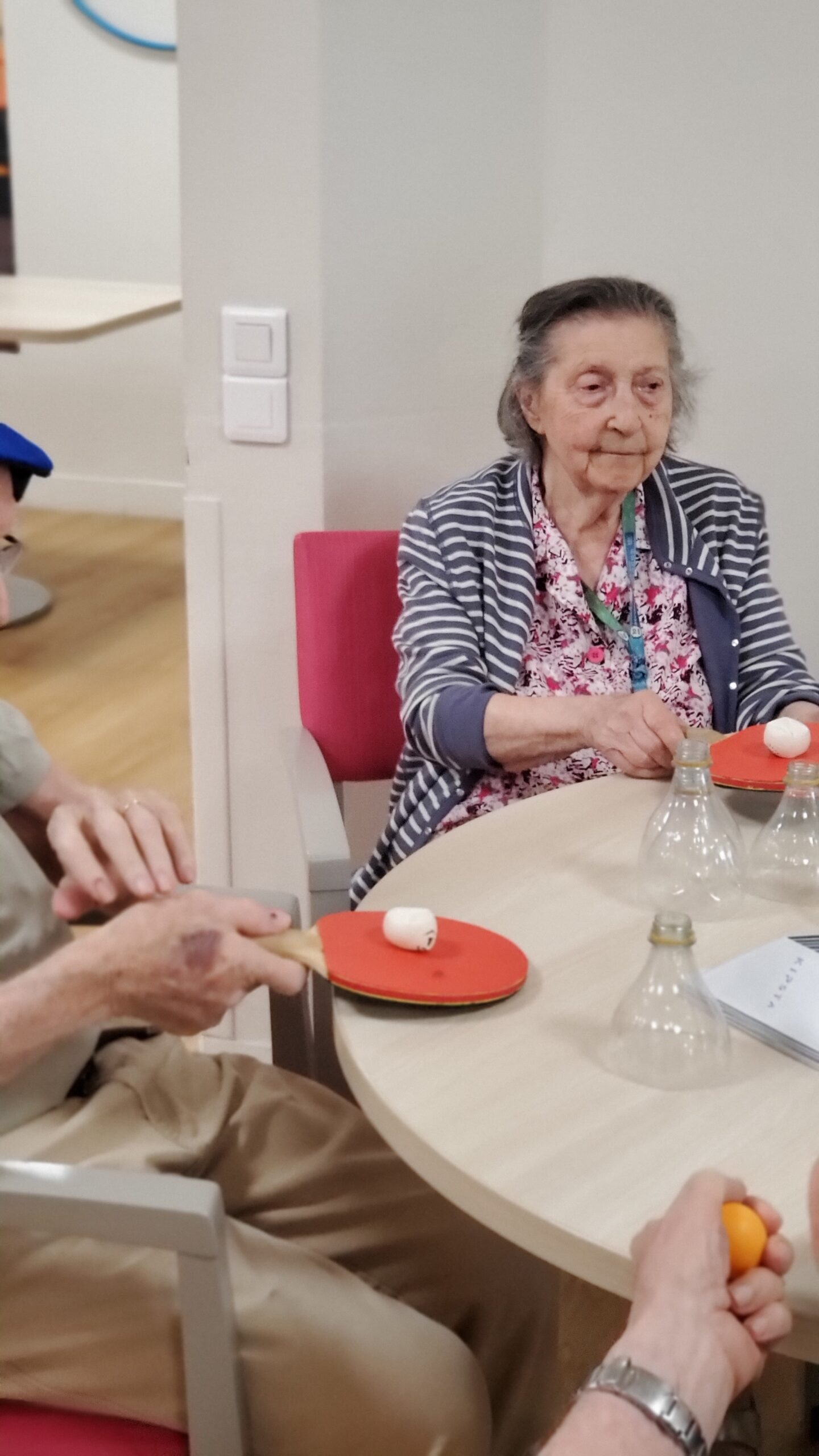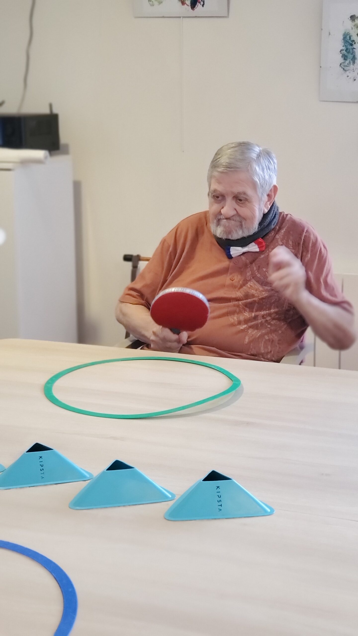 Ce lundi 1er juillet, dans le cadre des Jeux Olympiques inter établissement du groupe ACPPA, nous avons organisé une compétition de Ping Pong. Nous avons sollicité l’association Monqui Pong de Neuville-sur-Saône. Dimitri, nous a proposé 5 ateliers différents pour expérimenter la dextérité, la souplesse, la force et le maniement de la raquette. Une après-midi sportive où nous avons affronté l’équipe de la Résidence des Volubis de Décines. Avec beaucoup d’entrain et d’humour, nous nous sommes retrouvés autour d’un gâteau en forme de raquette et de quelques glaces. Nous nous retrouverons tous le vendredi 26 juillet pour remettre la coupe à l’établissement vainqueur des compétitions.
