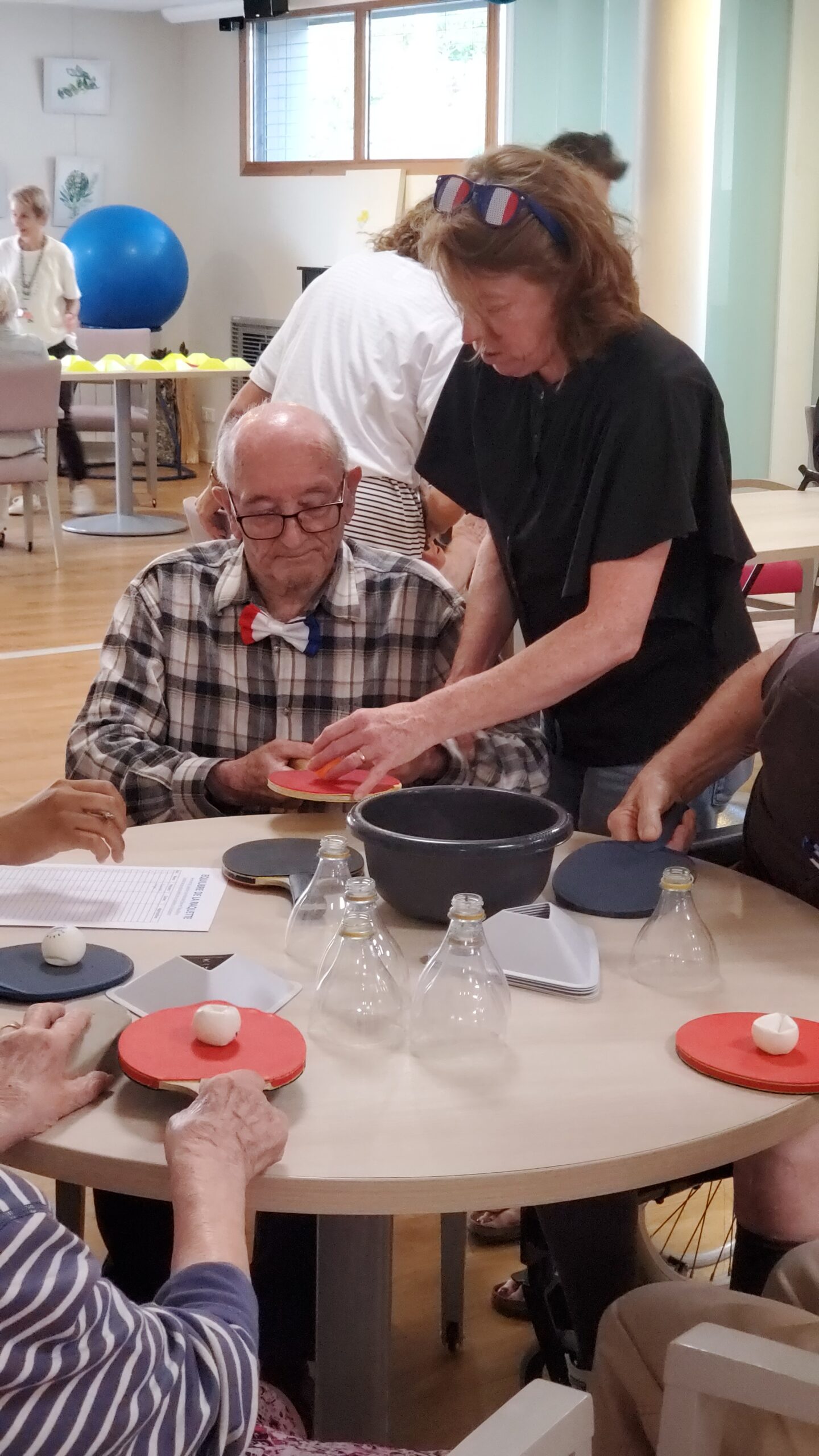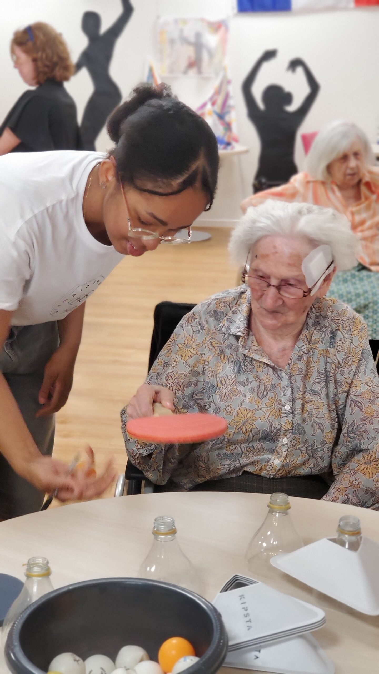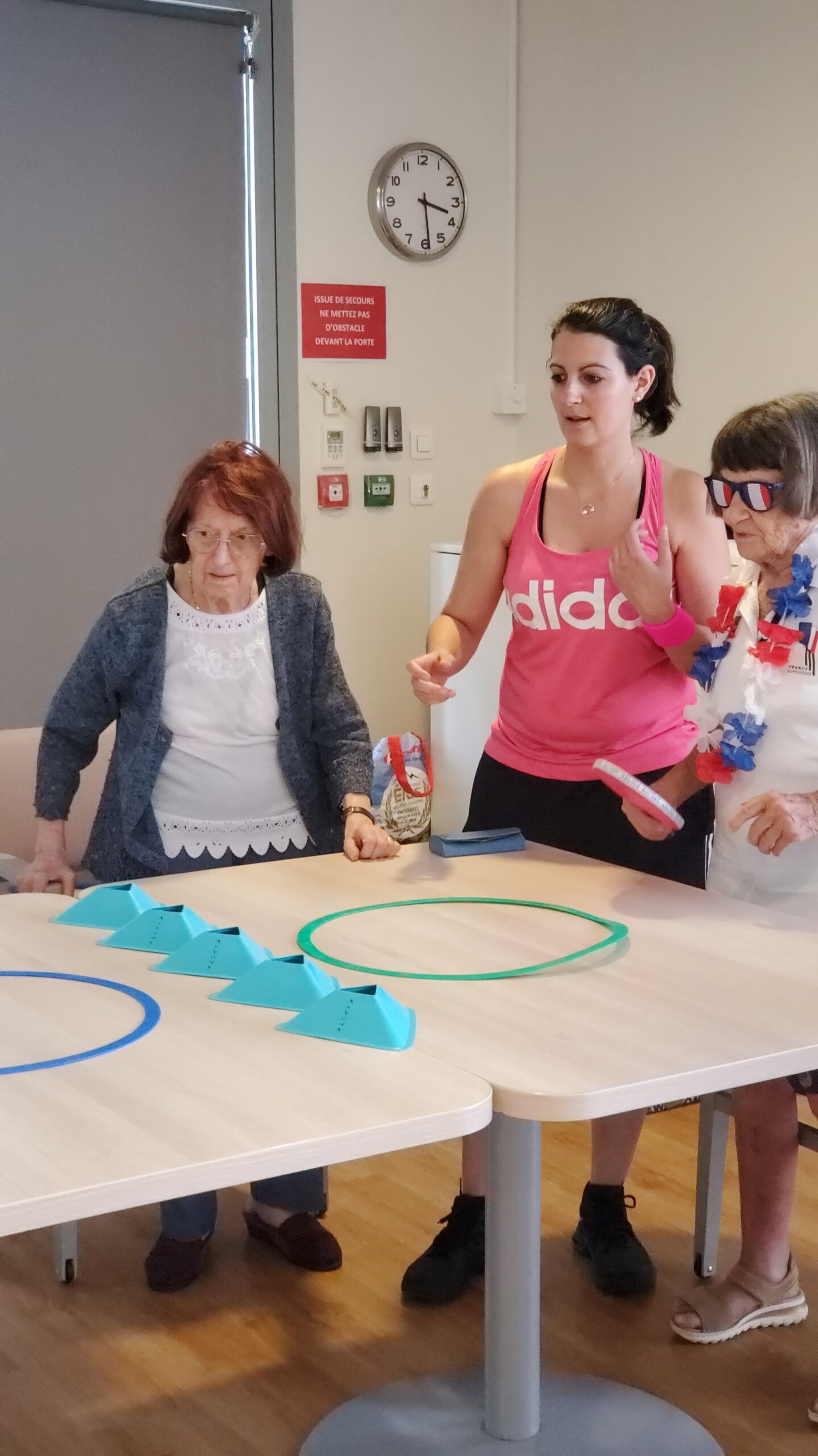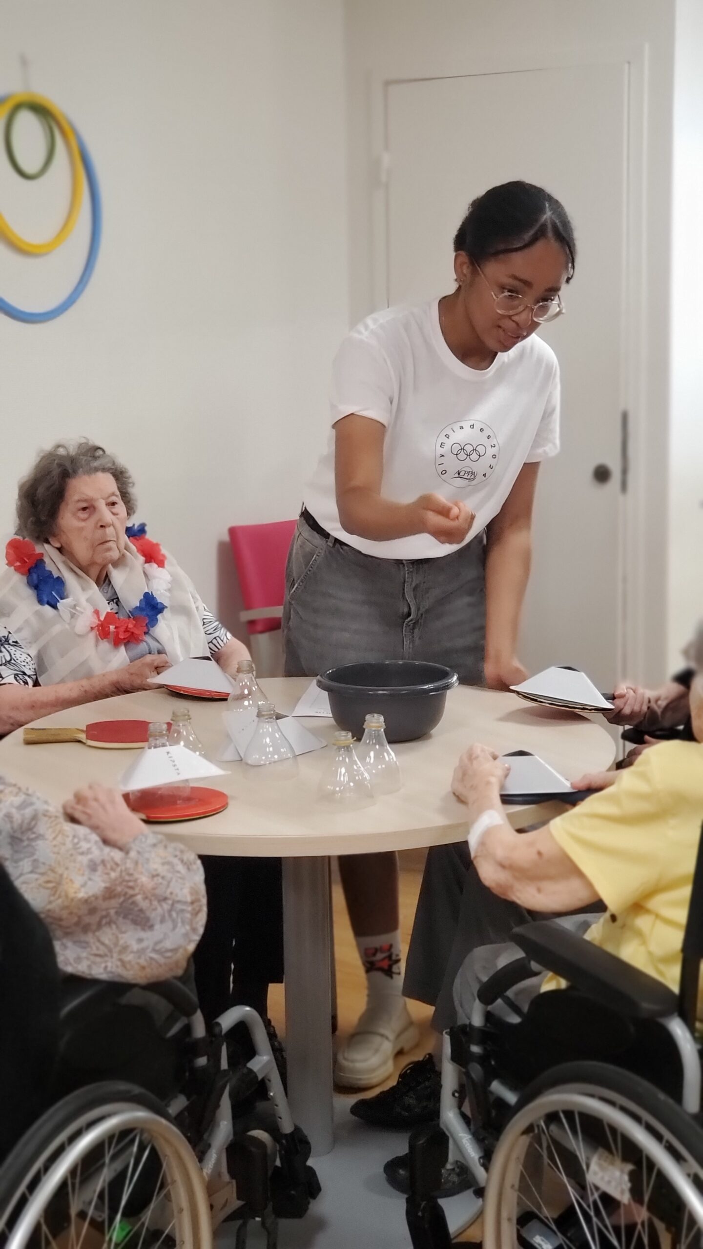 Ce lundi 1er juillet, dans le cadre des Jeux Olympiques inter établissement du groupe ACPPA, nous avons organisé une compétition de Ping Pong. Nous avons sollicité l’association Monqui Pong de Neuville-sur-Saône. Dimitri, nous a proposé 5 ateliers différents pour expérimenter la dextérité, la souplesse, la force et le maniement de la raquette. Une après-midi sportive où nous avons affronté l’équipe de la Résidence des Volubis de Décines. Avec beaucoup d’entrain et d’humour, nous nous sommes retrouvés autour d’un gâteau en forme de raquette et de quelques glaces. Nous nous retrouverons tous le vendredi 26 juillet pour remettre la coupe à l’établissement vainqueur des compétitions.