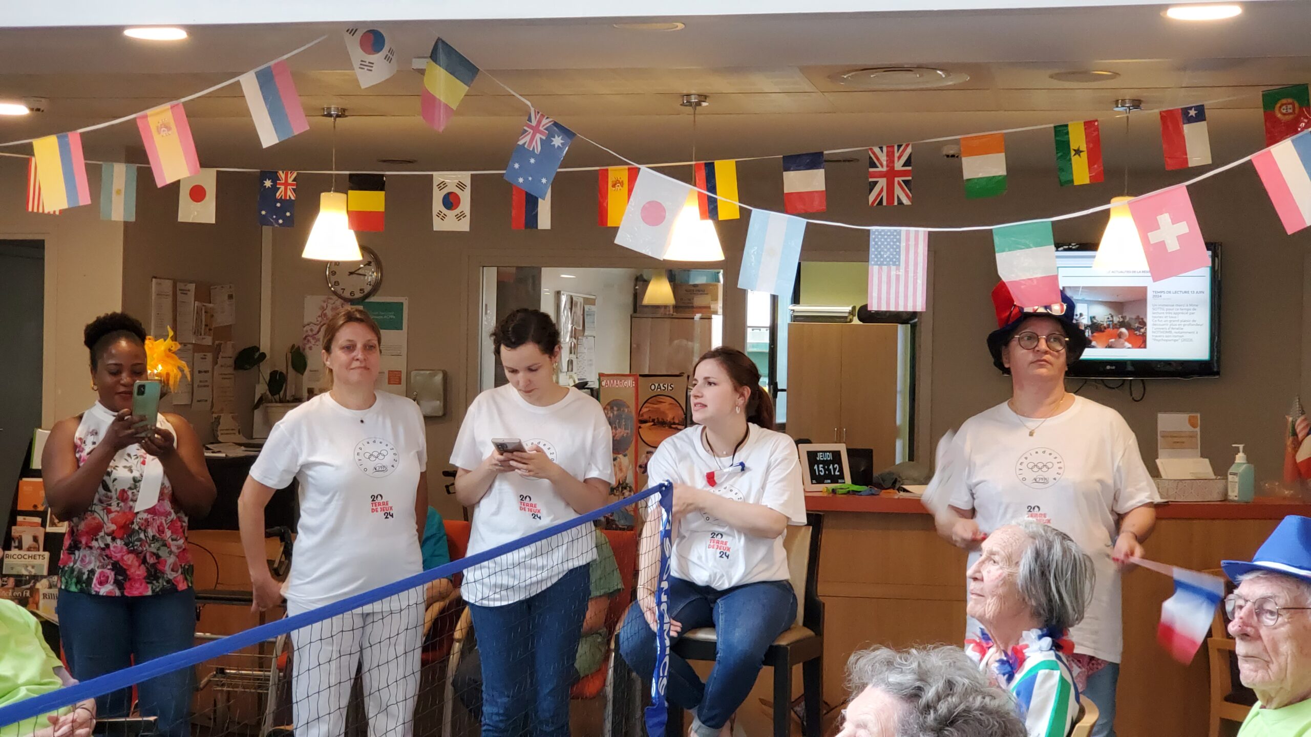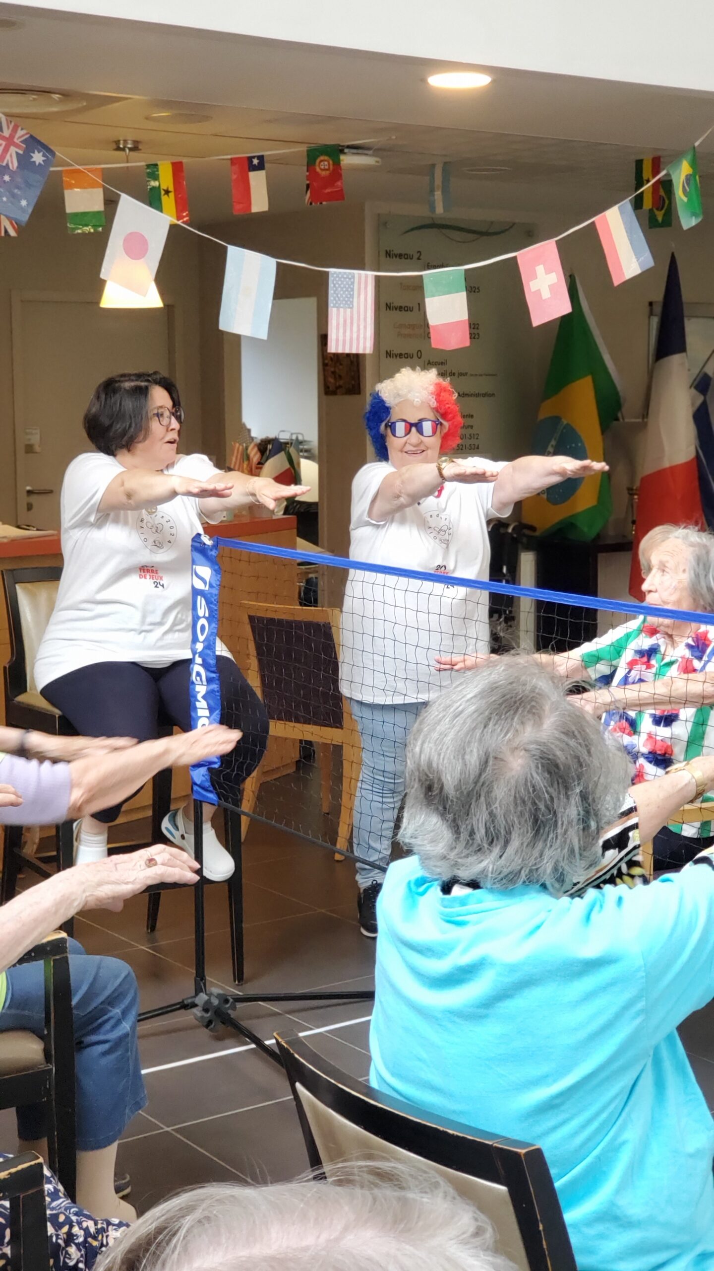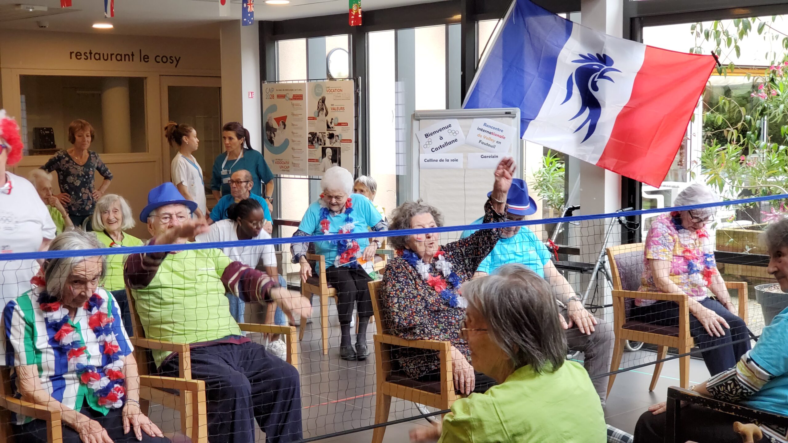 Dans le cadre des Jeux Olympiques, les EHPAD du Groupe ACPPA de la Région vont se rencontrer au cours du mois de juin et juillet pour découvrir de nouveaux sports. Accompagnés par un/e professionnel/lle les résidents de différents établissements s’affrontent sur de petites activités. Jeudi 20 juin, nous nous sommes rencontrés à l’EHPAD La Castellane à Rillieux la Pape pour une découverte de la pratique du volley. Nous avons concouru face l’équipe de l’EHPAD du Gareizin, et nous avons remporté la médaille d’argent. Une belle après-midi clôturée par un gouter festif.