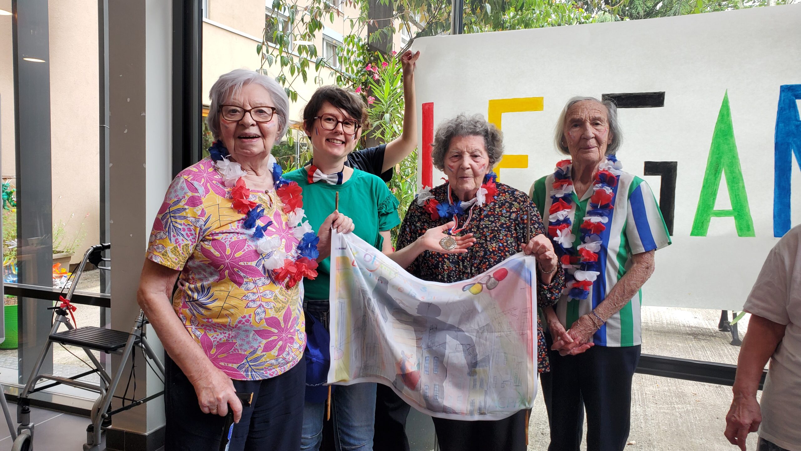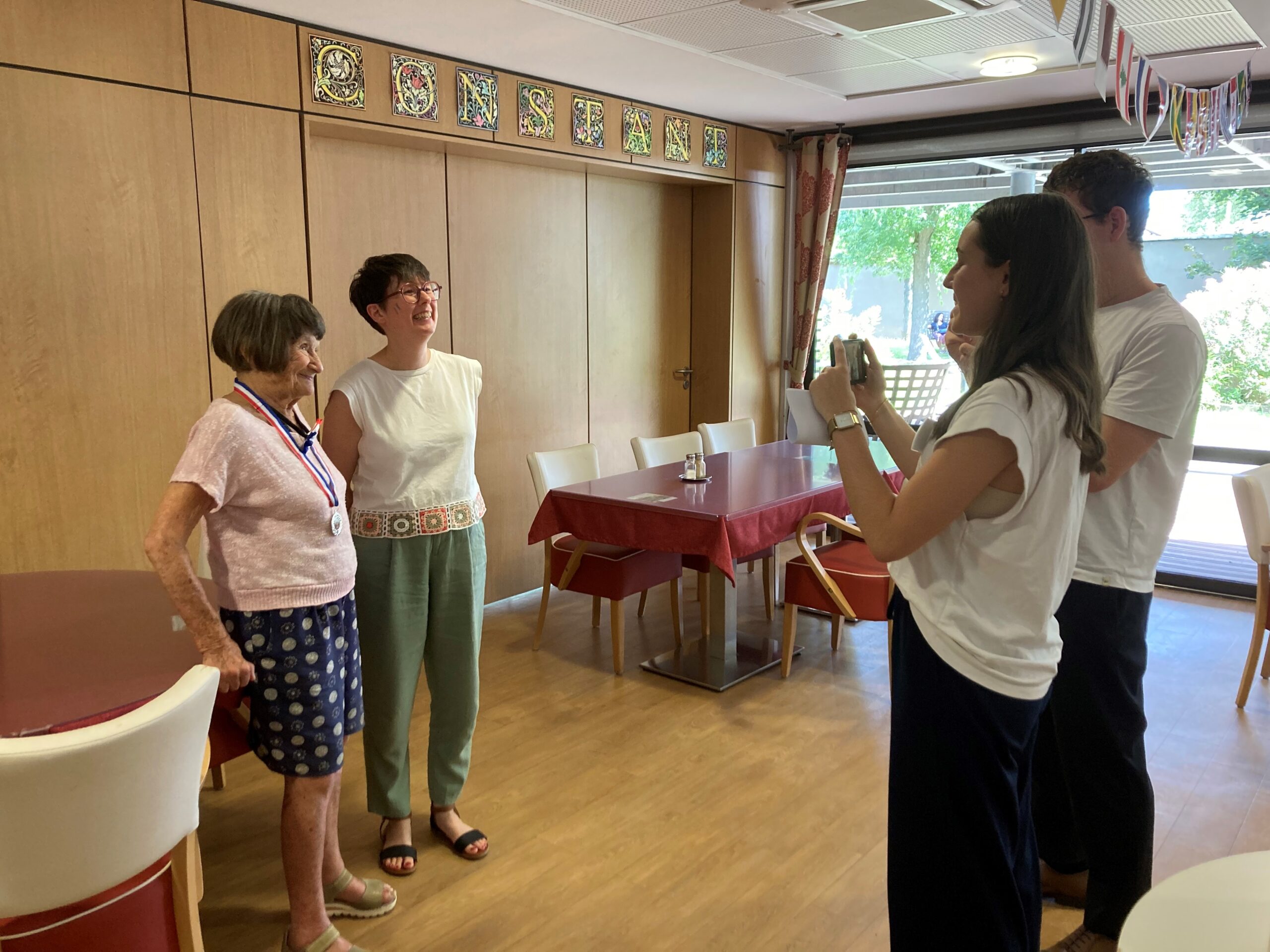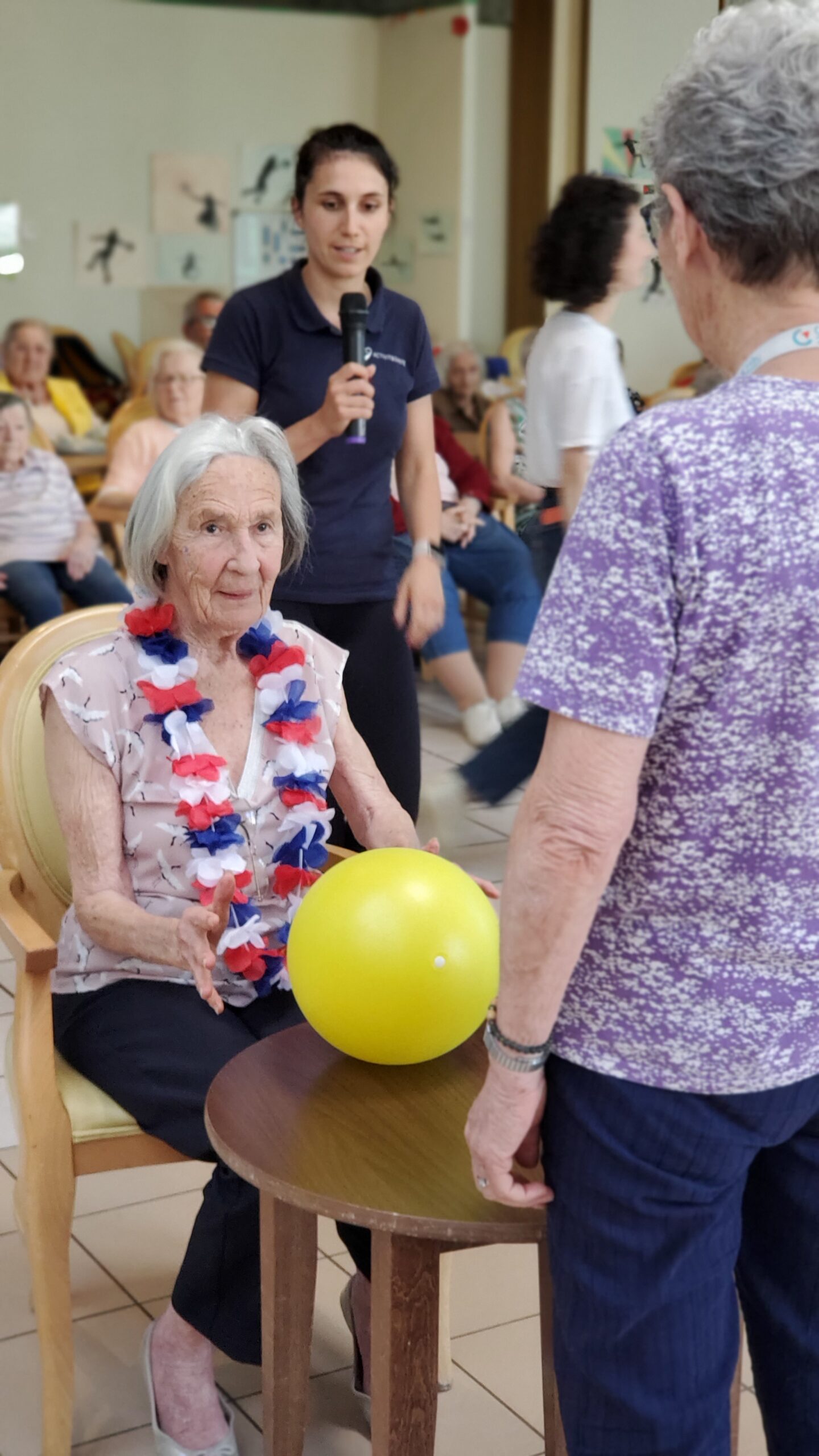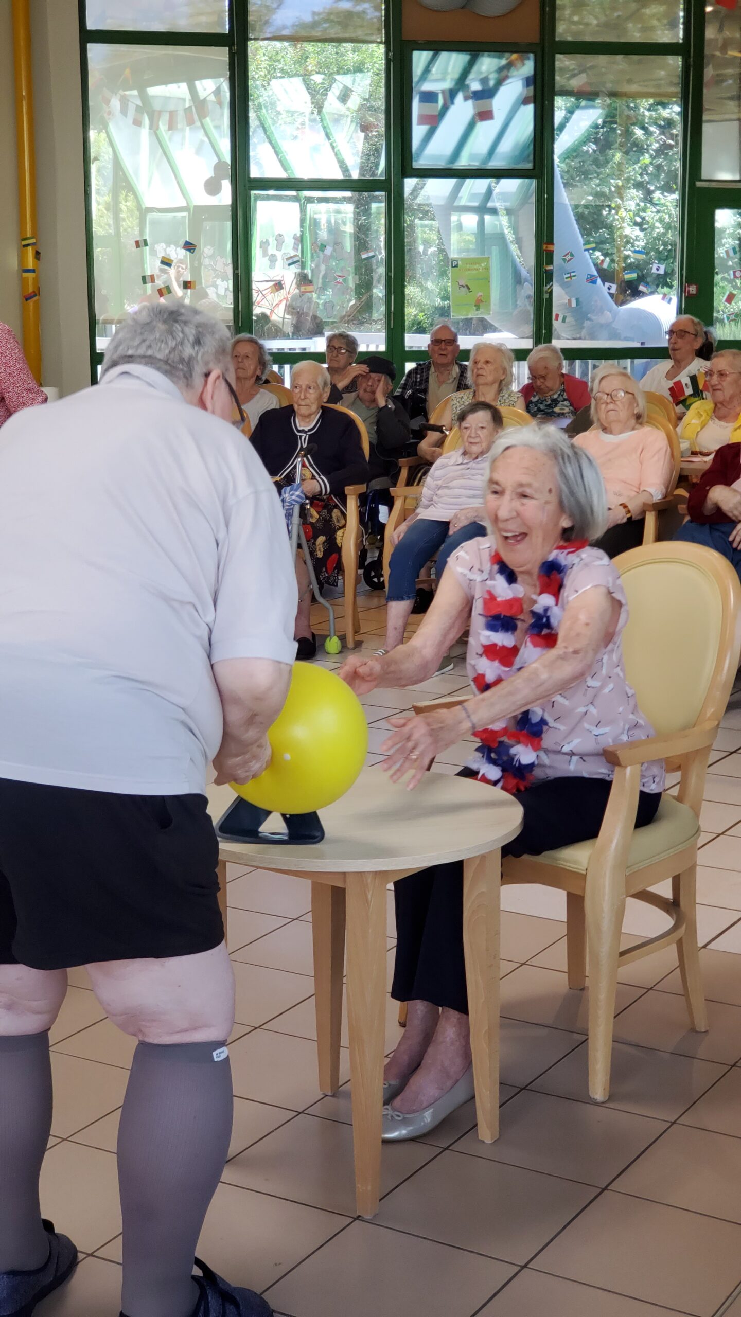 Dans le cadre des Jeux Olympiques, les EHPAD du Groupe ACPPA de la Région vont se rencontrer au cours du mois de juin et juillet pour découvrir de nouveaux sports. Accompagnés par un/e professionnel/lle les résidents de différents établissements s’affrontent sur de petites activités. Jeudi 20 juin, nous nous sommes rencontrés à l’EHPAD La Castellane à Rillieux la Pape pour une découverte de la pratique du volley. Nous avons concouru face l’équipe de l’EHPAD du Gareizin, et nous avons remporté la médaille d’argent. Une belle après-midi clôturée par un gouter festif.