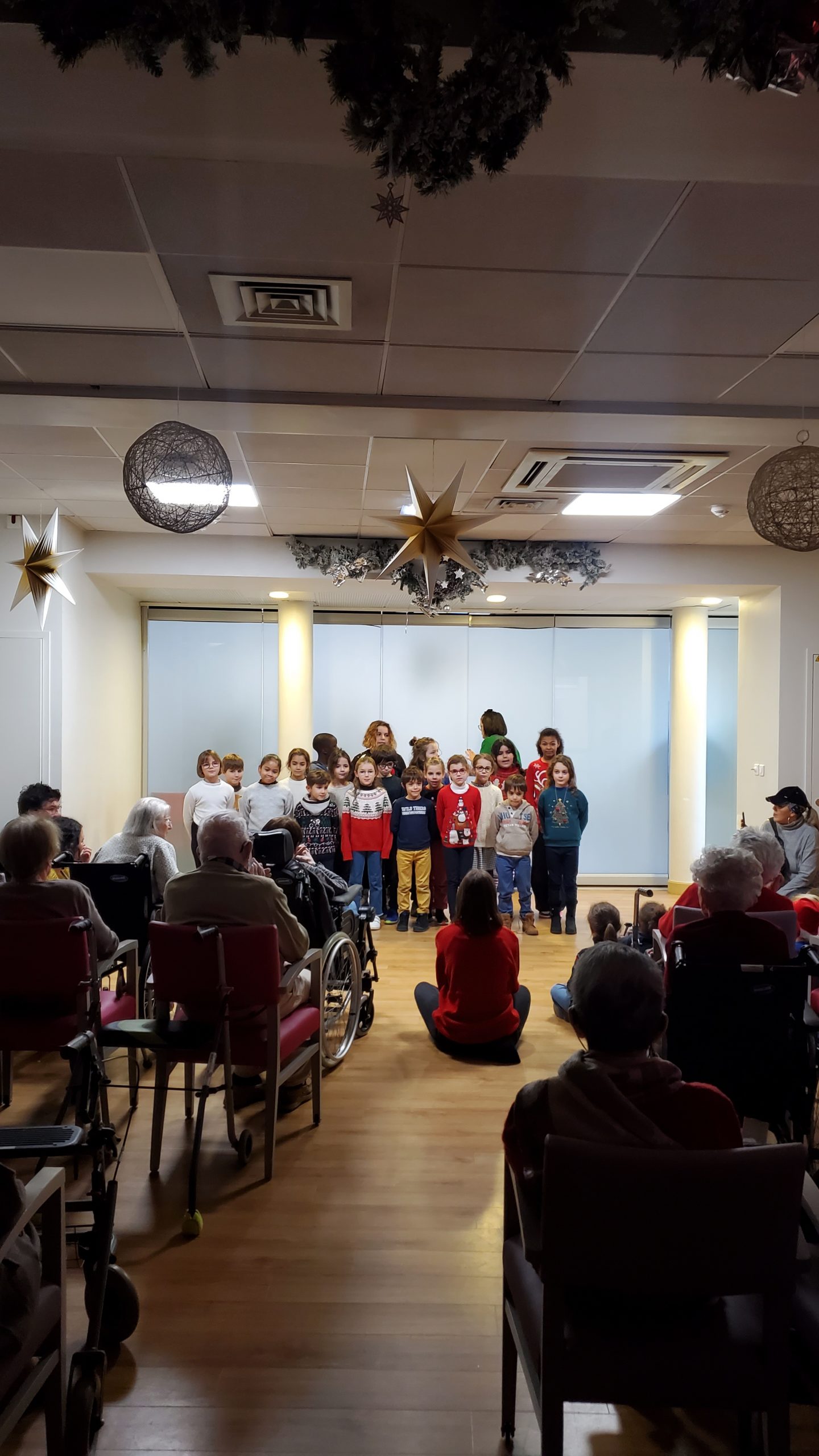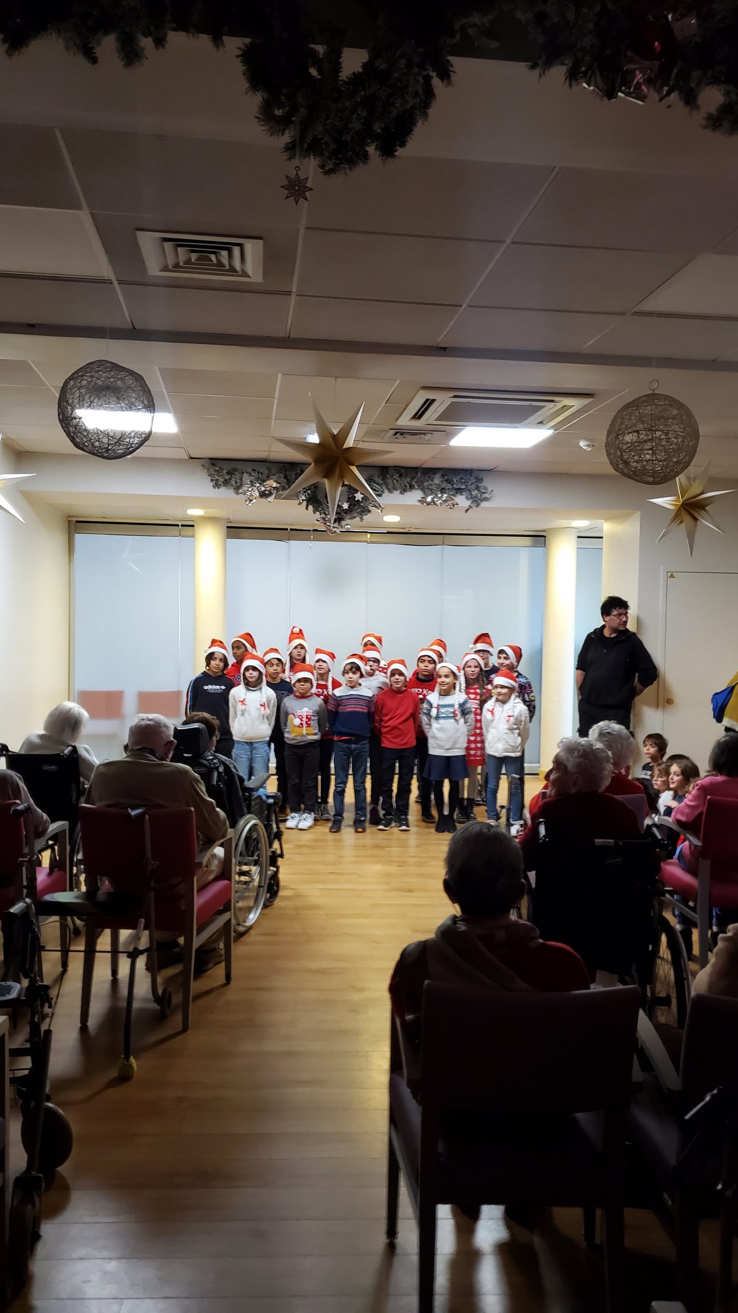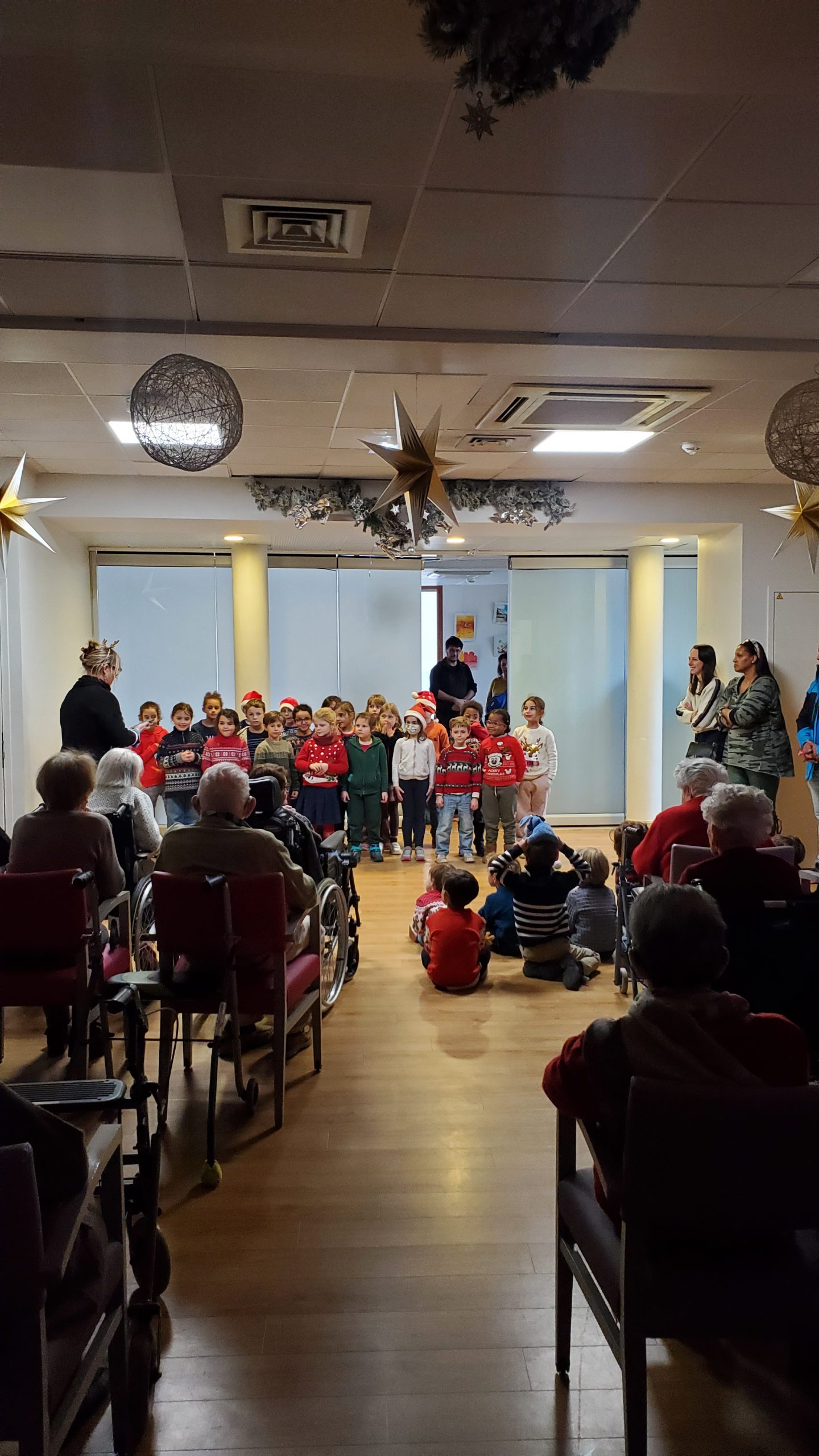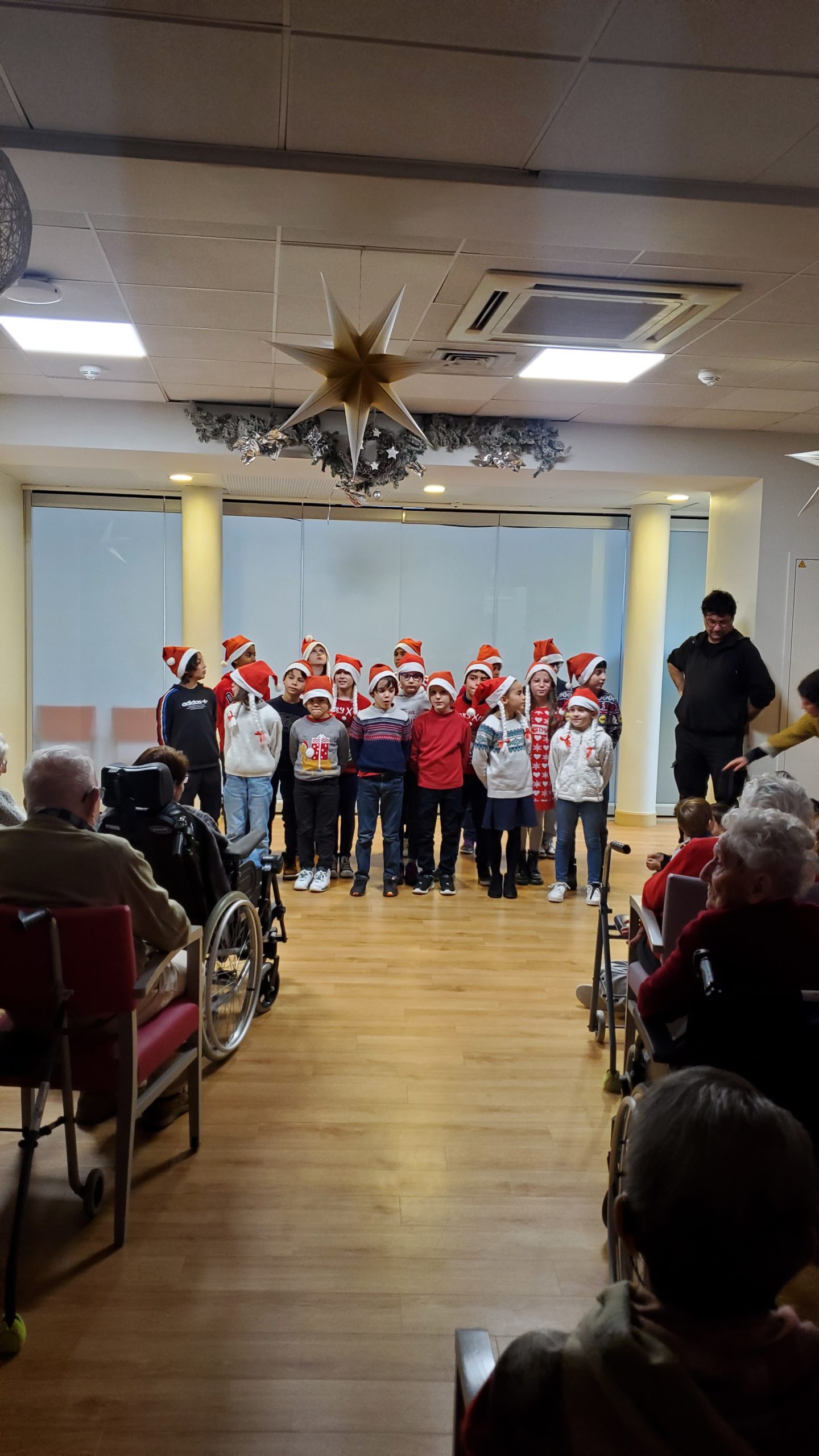 Ce mardi 19 décembre, les classes de maternelle et primaire de l’école Saint Louis Saint Bruno sont venus en représentation à la Résidence La Colline de la Soie pour célébrer Noel. Tous beaux vêtus de bonnet et de pull multicolore, ils ont chanté leur répertoire des fêtes. Un moment attendrissant que nous avons clôturé par un goûter partagé.