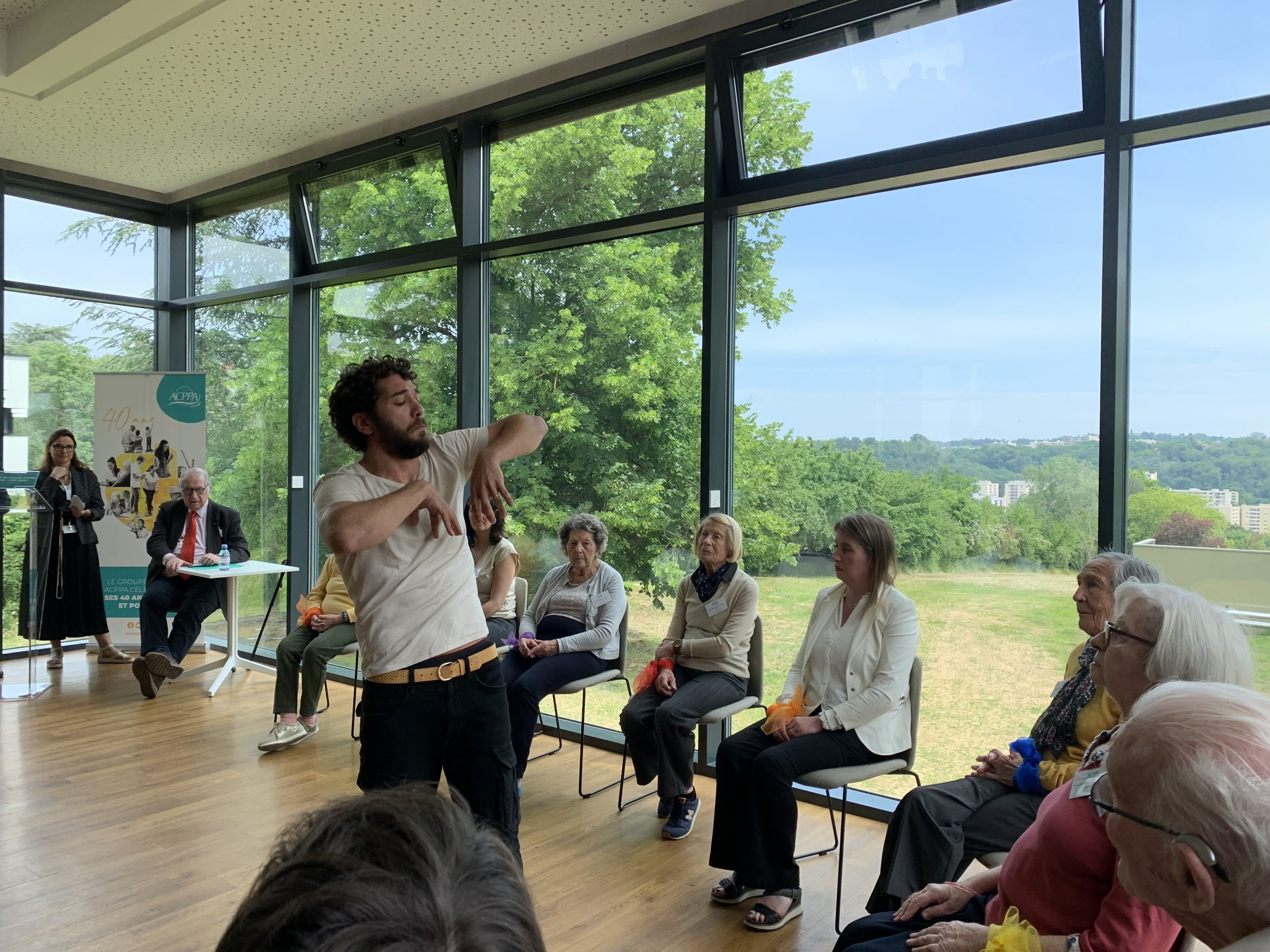 Notre groupe célèbre ses 40 ans d’existence et lance son Nouveau Projet Associatif « Cap 2028 ». Jeudi 25 mai, un groupe de résidents a été convié à cet anniversaire au siège du groupe pour donner une représentation du spectacle Babel crée en 2021 à la Résidence, avec Cécile de Momentum et Tarek de la Compagnie Colegram. Une bel occasion de montrer notre engagement culturel et notre travail au quotidien. Nous avons pu aussi profiter d’un journée ensoleillée accompagné d’un buffet traiteur et de champagne. Nos résidents ont eu des étoiles dans yeux. Un grand Merci au Groupe de nous avoir accueilli, à notre Direction pour son soutien, et à Céline Psychomotricienne et Fatma, AHS, pour leur présence sans faille.