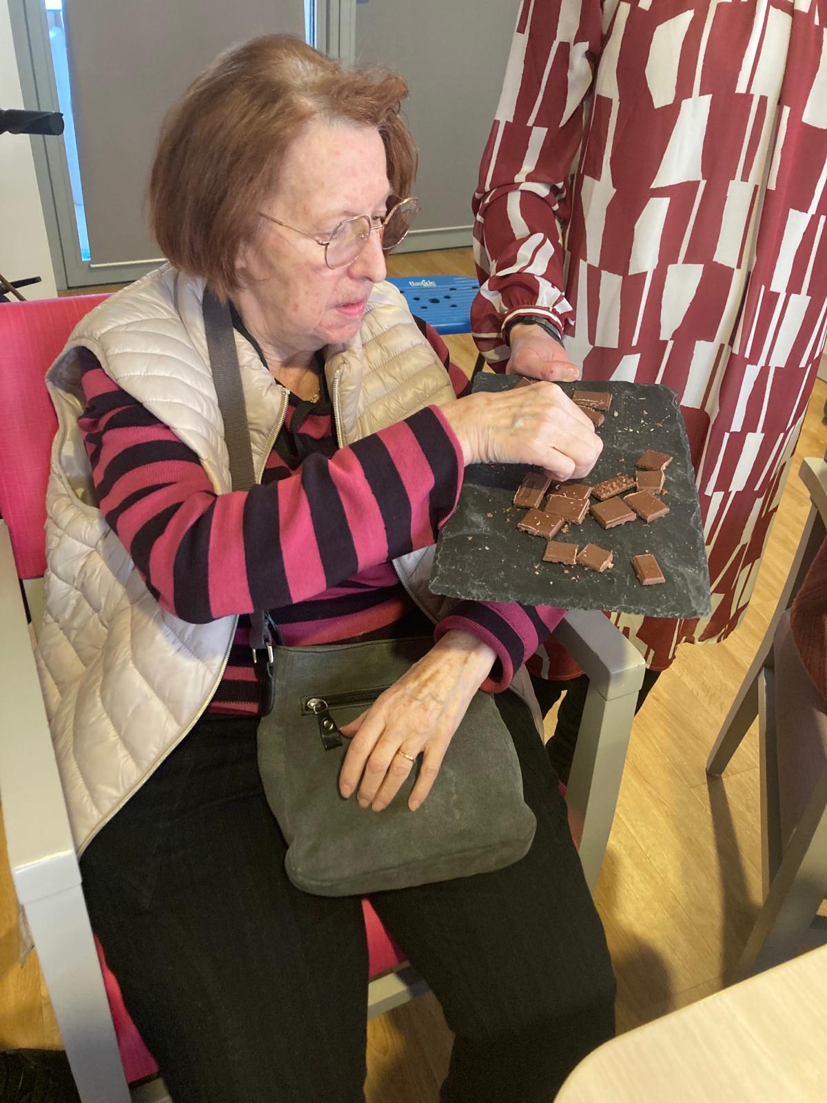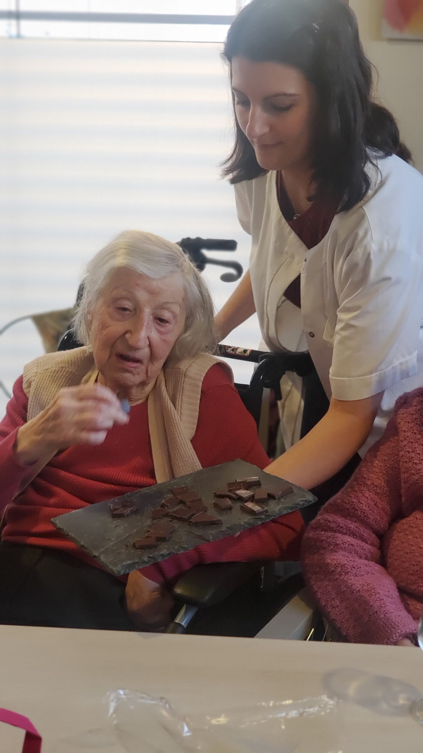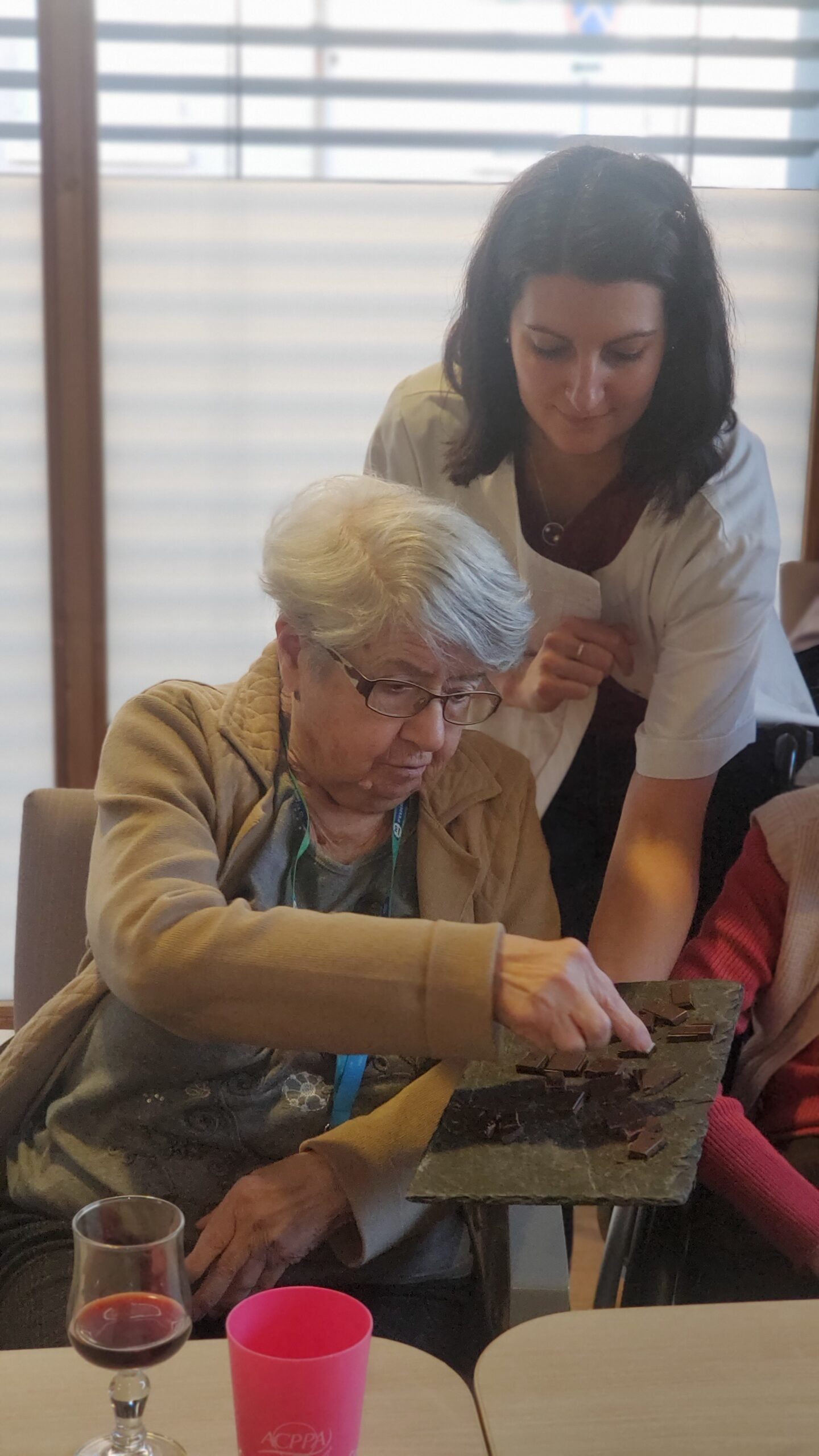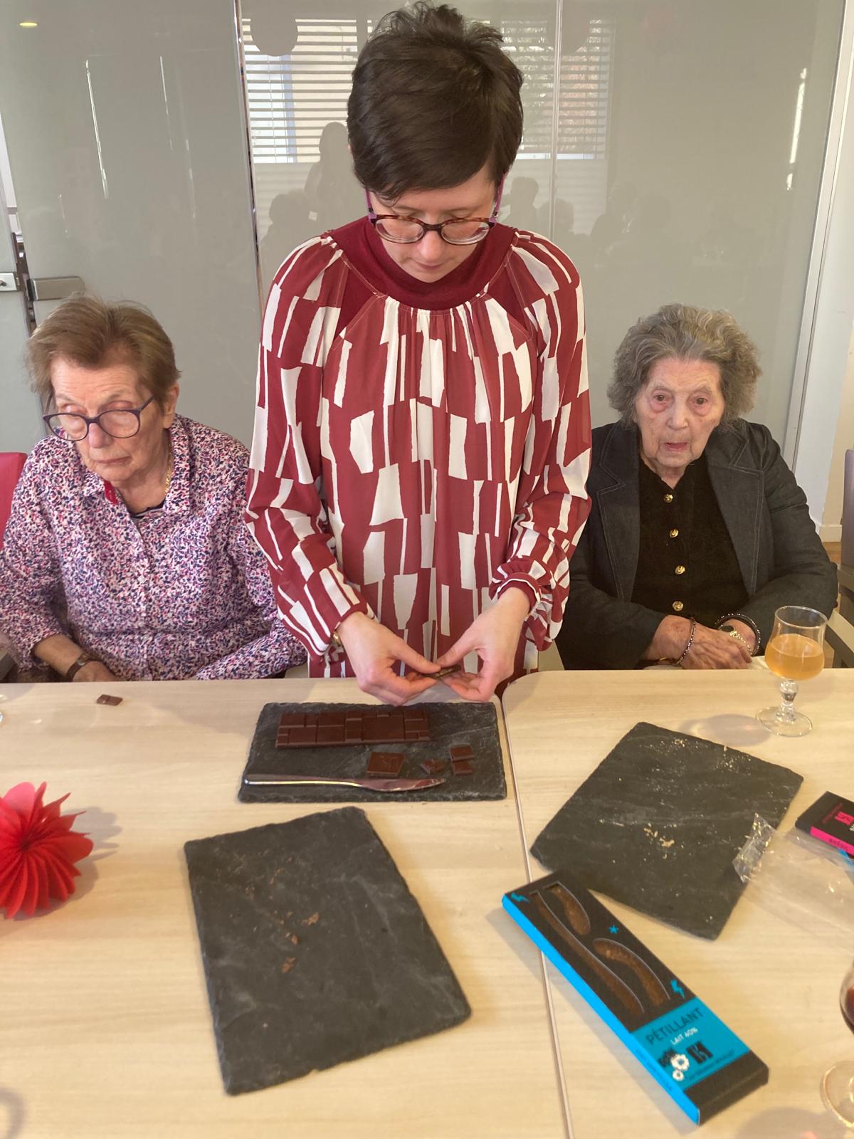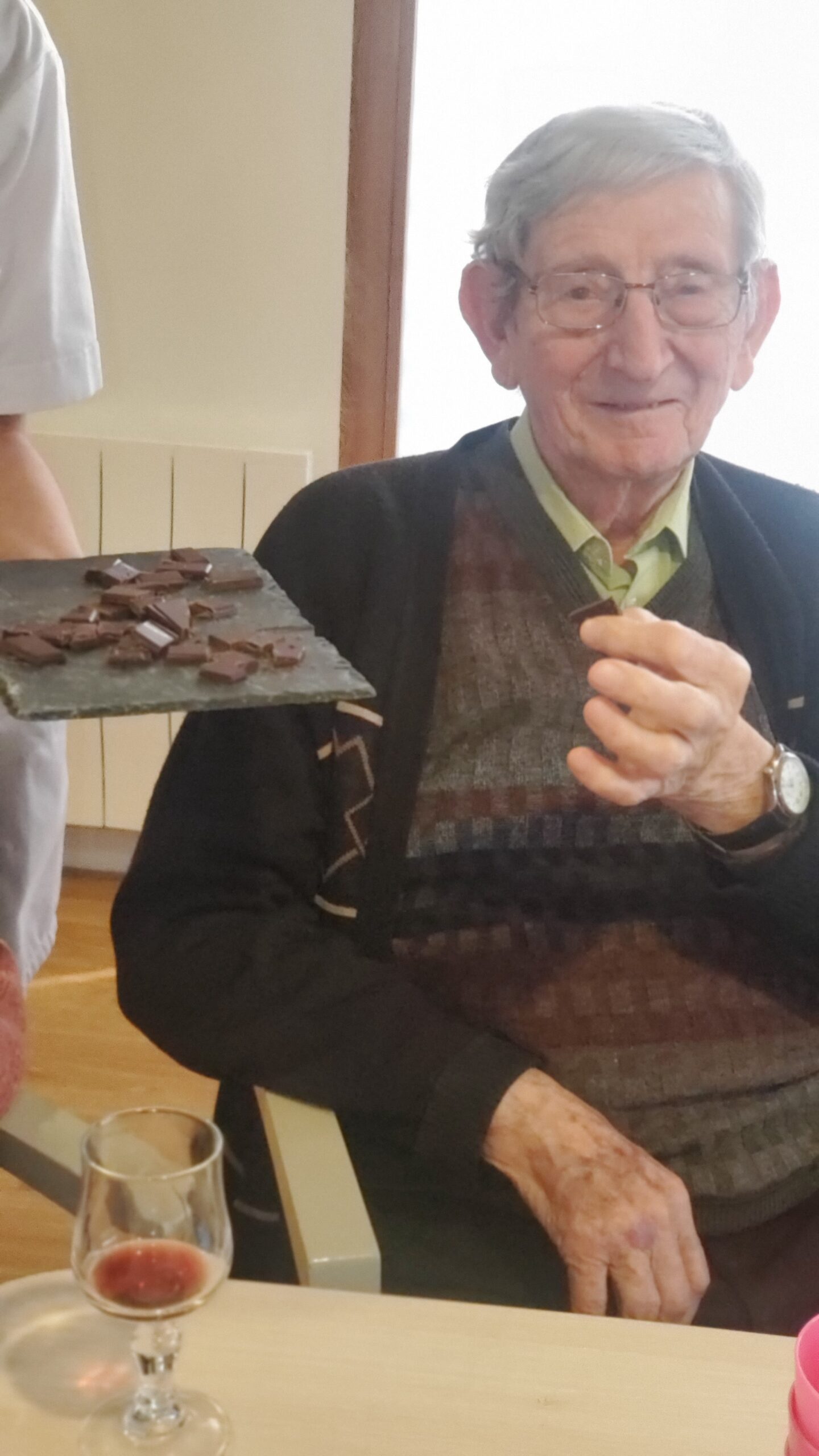L’après-midi, avec nos résidents, nous avons dégusté des tablettes de chocolat de chez Bouillet. Accompagné d’un petit verre de vin rouge, nous avons savouré cet atelier.