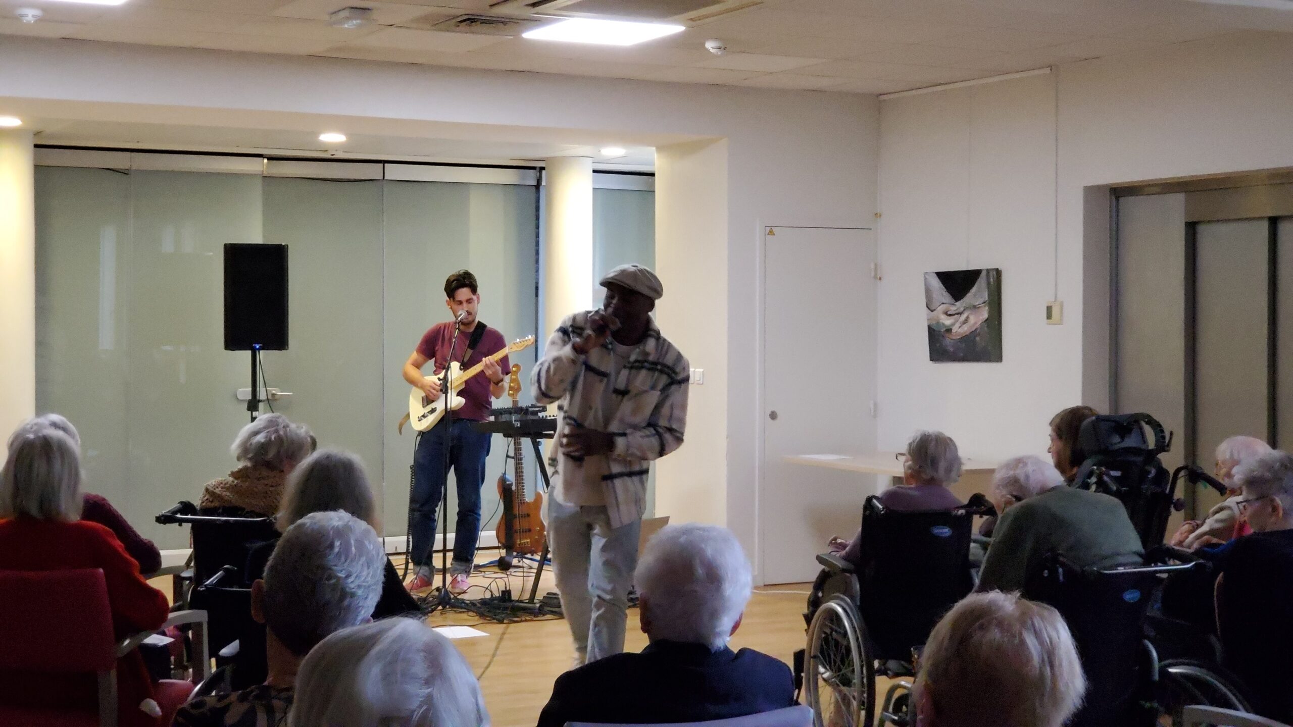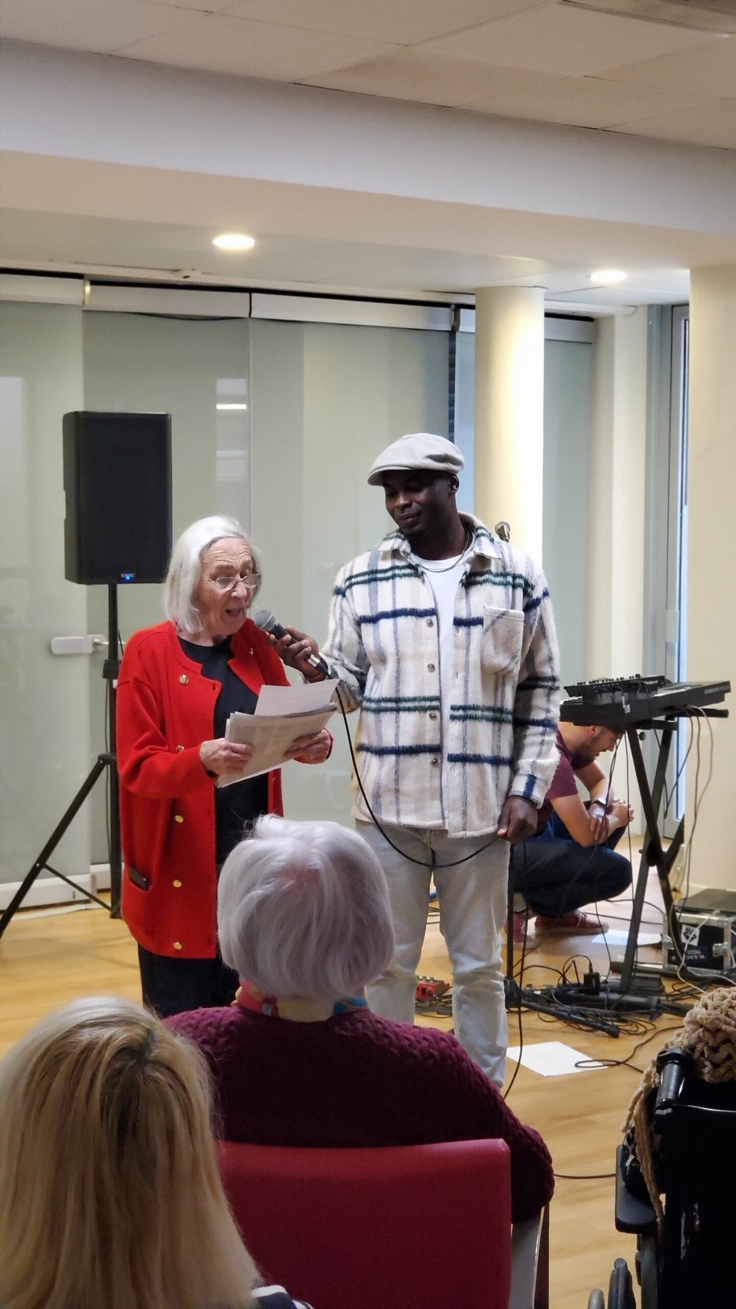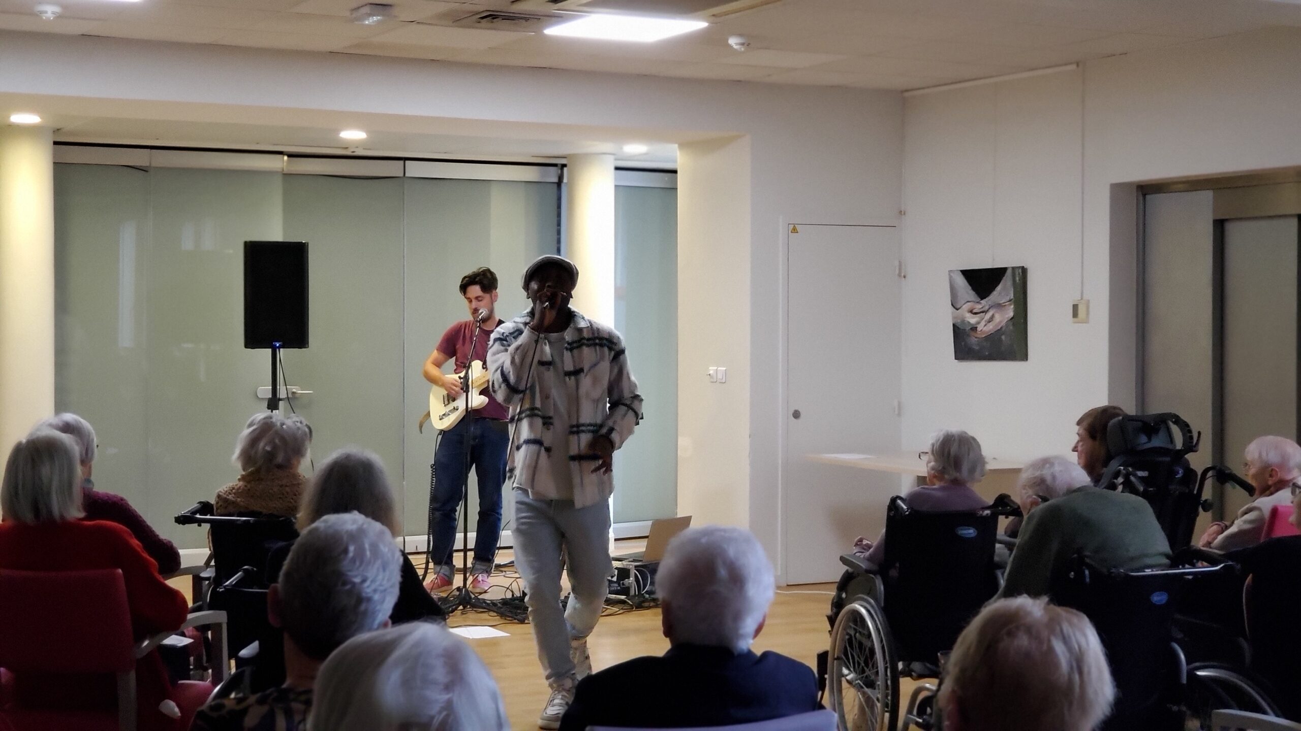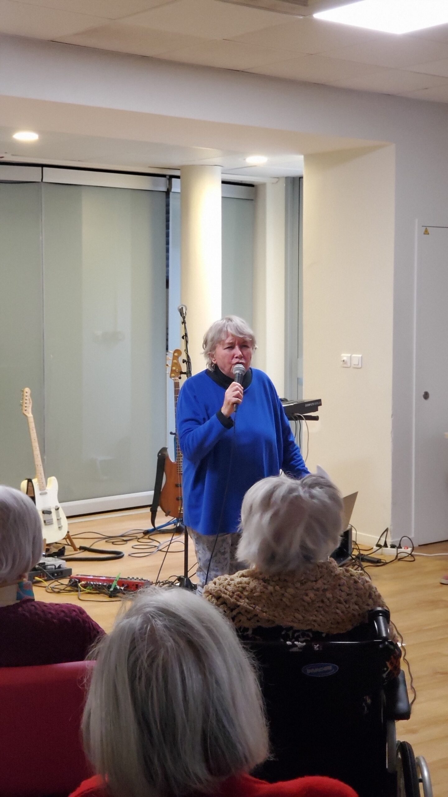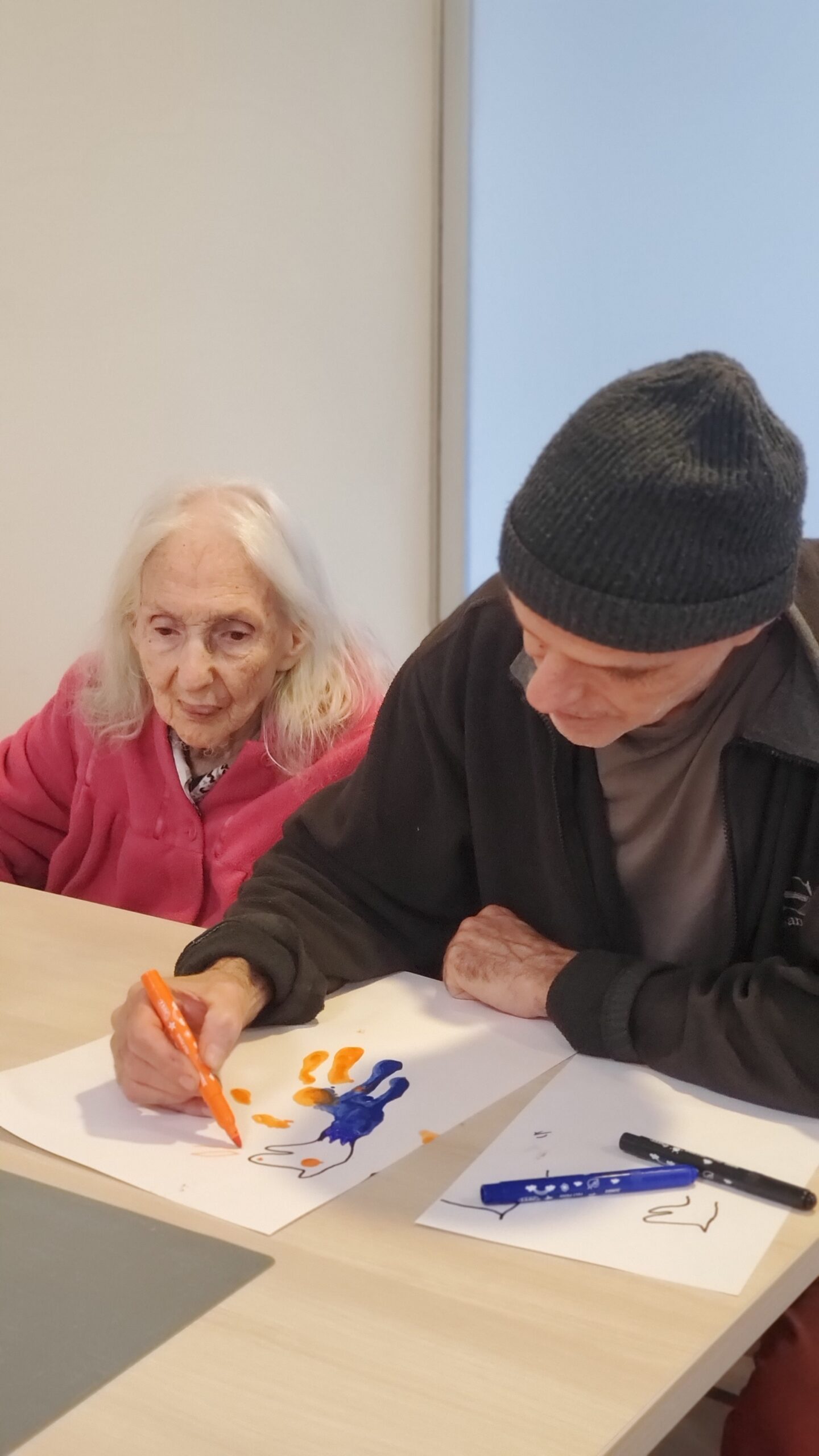Pendant la semaine bleue, nous avons organisé plusieurs évènements. Nous avons proposé des conférences, l’une sur l’histoire du sport, de l’Antiquité à nos jours, et l’autre sur les musiques de films par l’Institut Lumière. Nous avons eu la chance, aussi, d’accueillir pour la deuxième fois le slameur Gyslain N. Avec les résidents, ils ont créé des textes sur le thème de l’arbre symbole de l’histoire de vie. Grace à des enregistrements, nous avons pu écouter, ce mercredi 2 octobre, une composition originale, pleine de poésie. Nous avons aussi proposé un atelier d’arts plastiques sur le thème des mains en lien avec l’exposition en cours. Mireille Ledru, artiste, est venue nous présenter son travail et accompagner les résidents dans leur pratique.