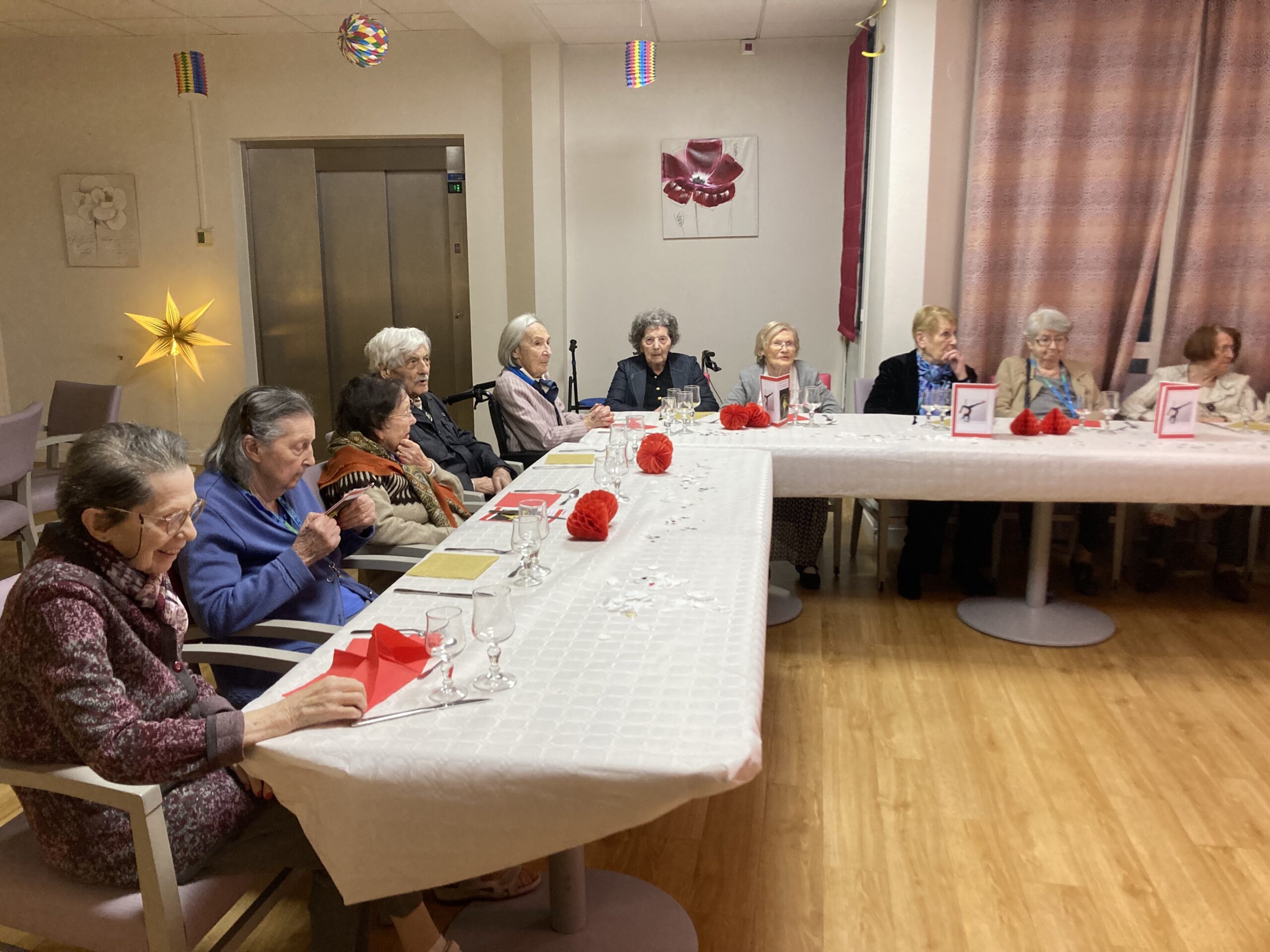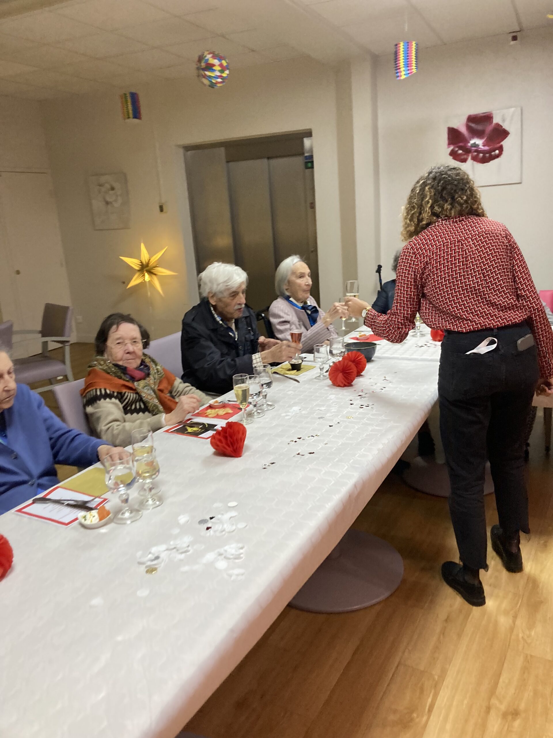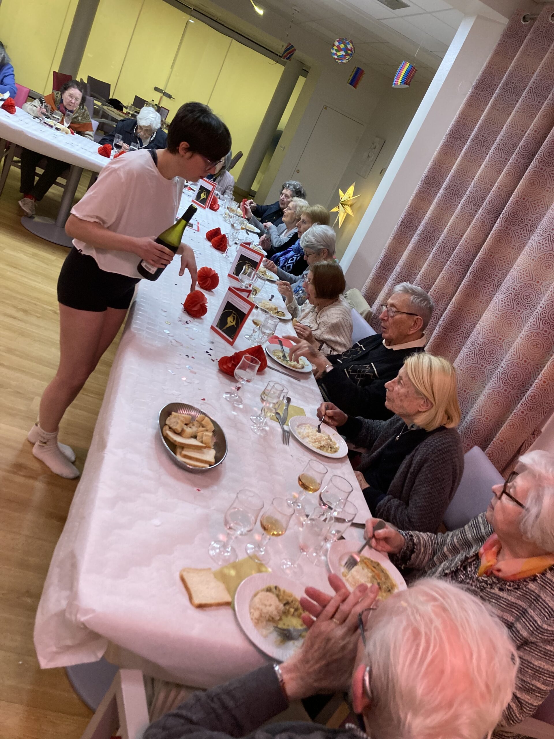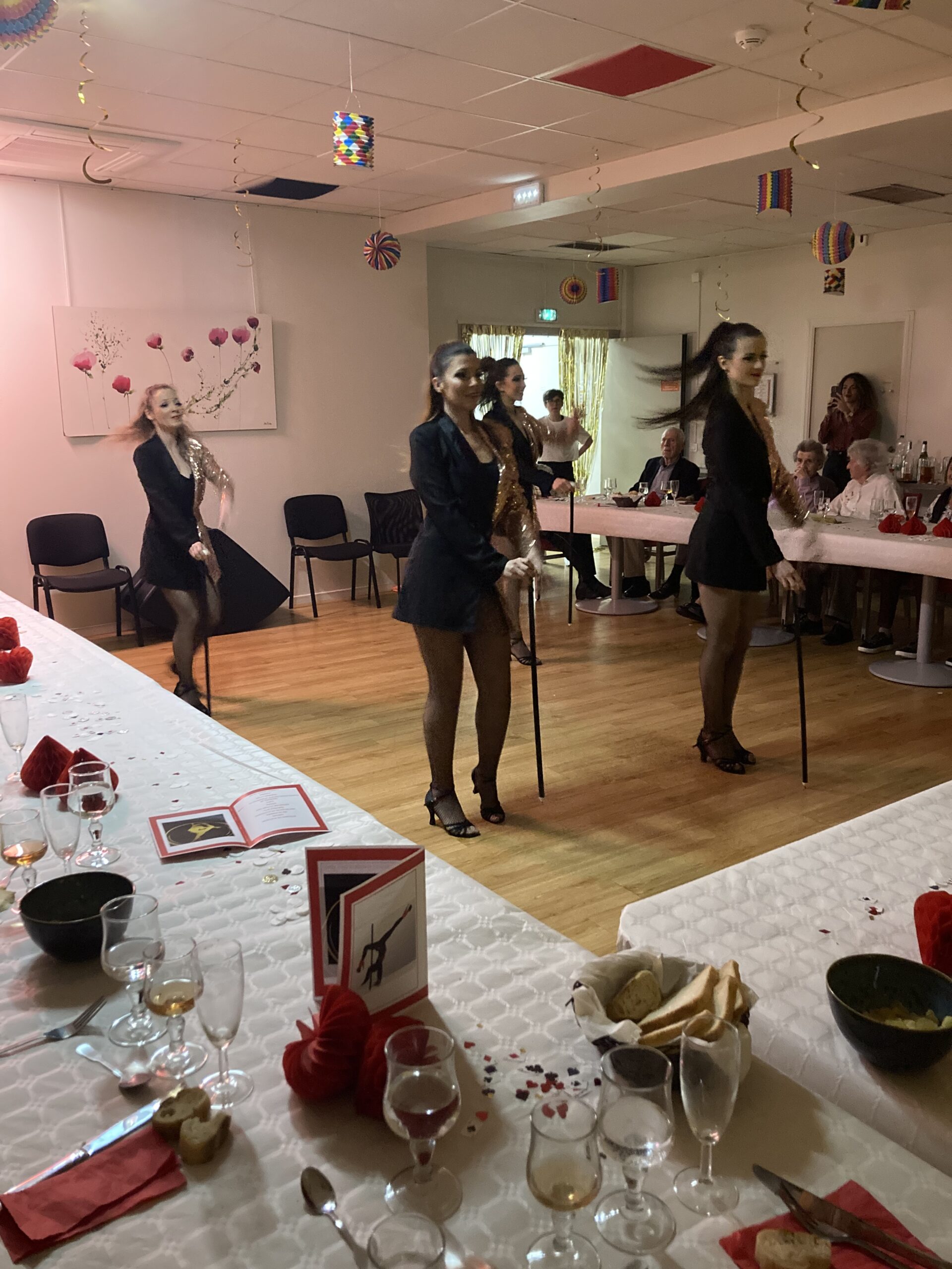 Mercredi 21 février, nous avons organisé une soirée Cabaret. Nous avons commencé par un apéritif au pétillant suivi d’une entrée de foie gras, puis d’une cassolette de fruits de mer et son riz, un plateau de saint marcelin et un moelleux au chocolat, crème anglaise. Entre chaque plat, une prestation dansée avec 4 danseuses de cabaret et 2 de pôle dance. L’ambiance était à son comble et s’est clôturée par le French Cancan typique du Moulin Rouge. Une très belle soirée qui a laissé des étoiles dans les yeux à nos résidents.