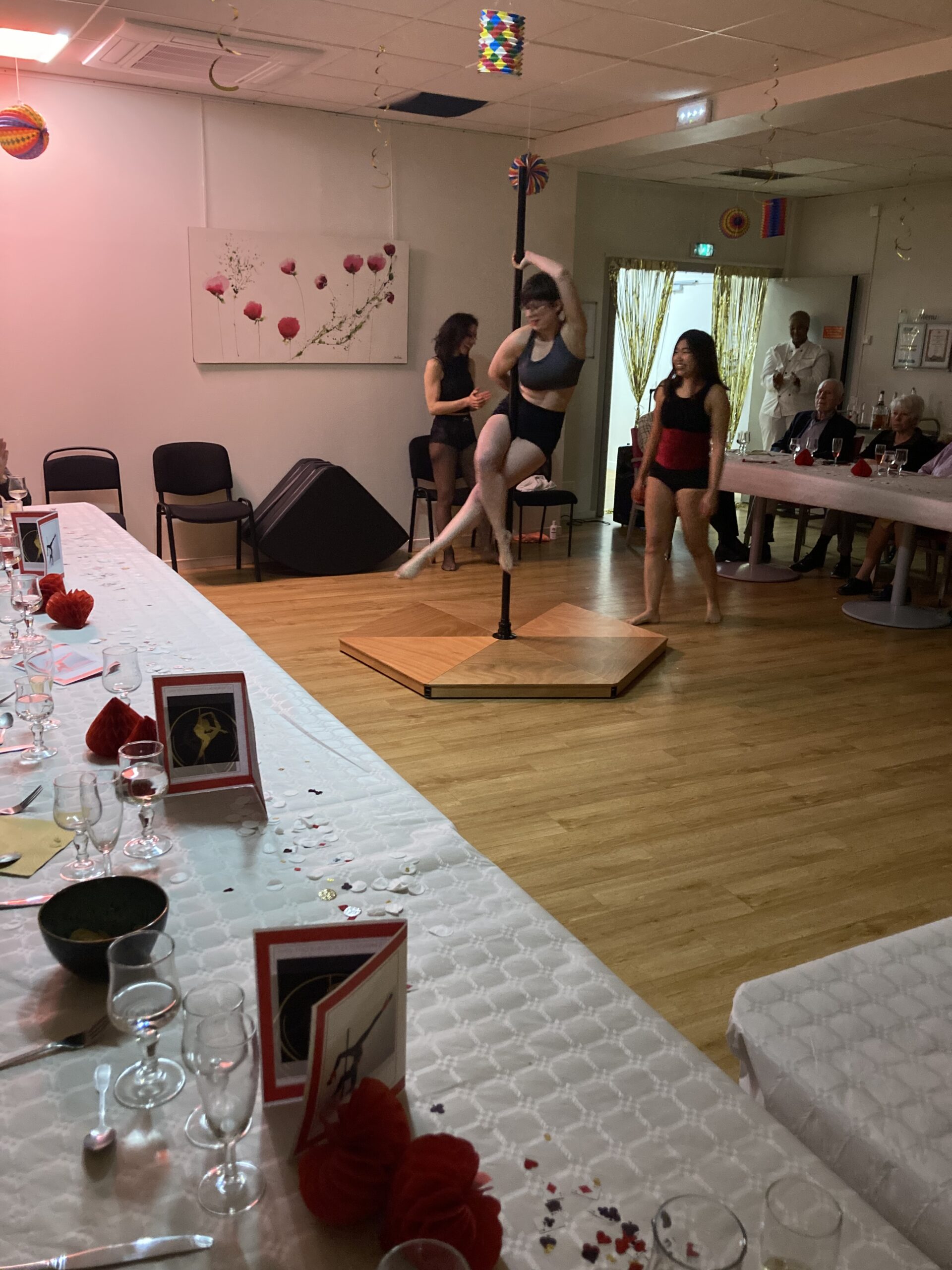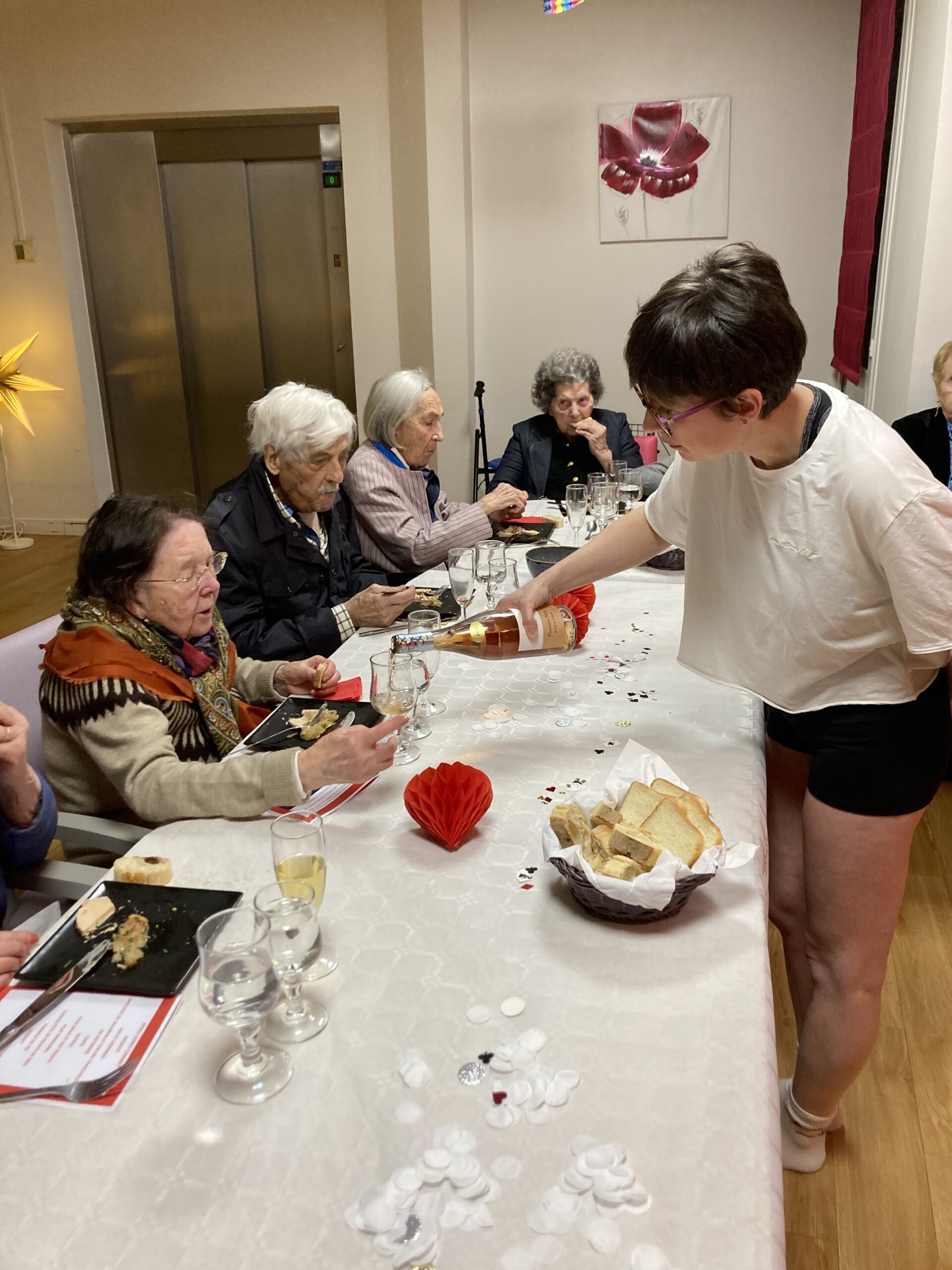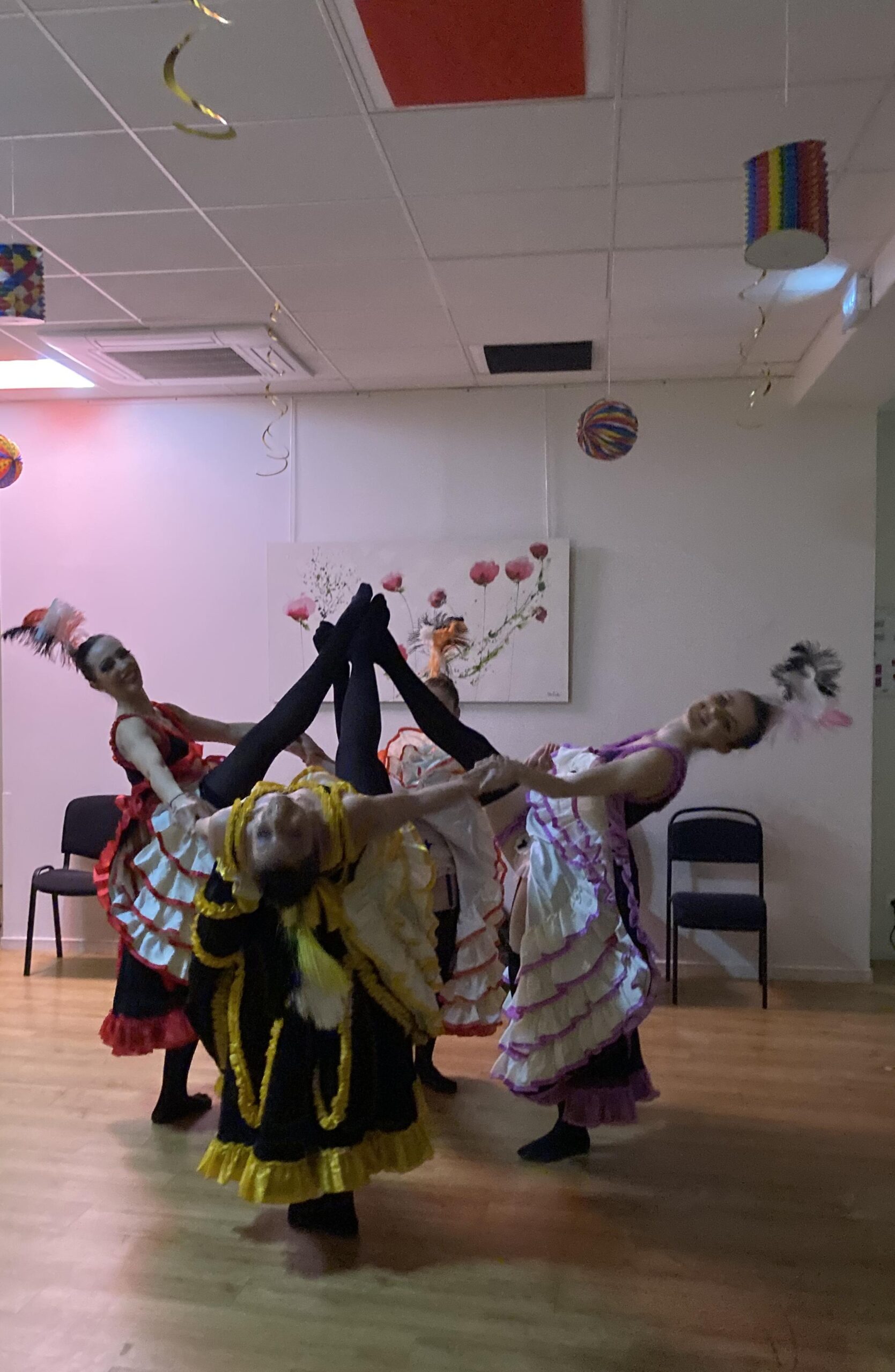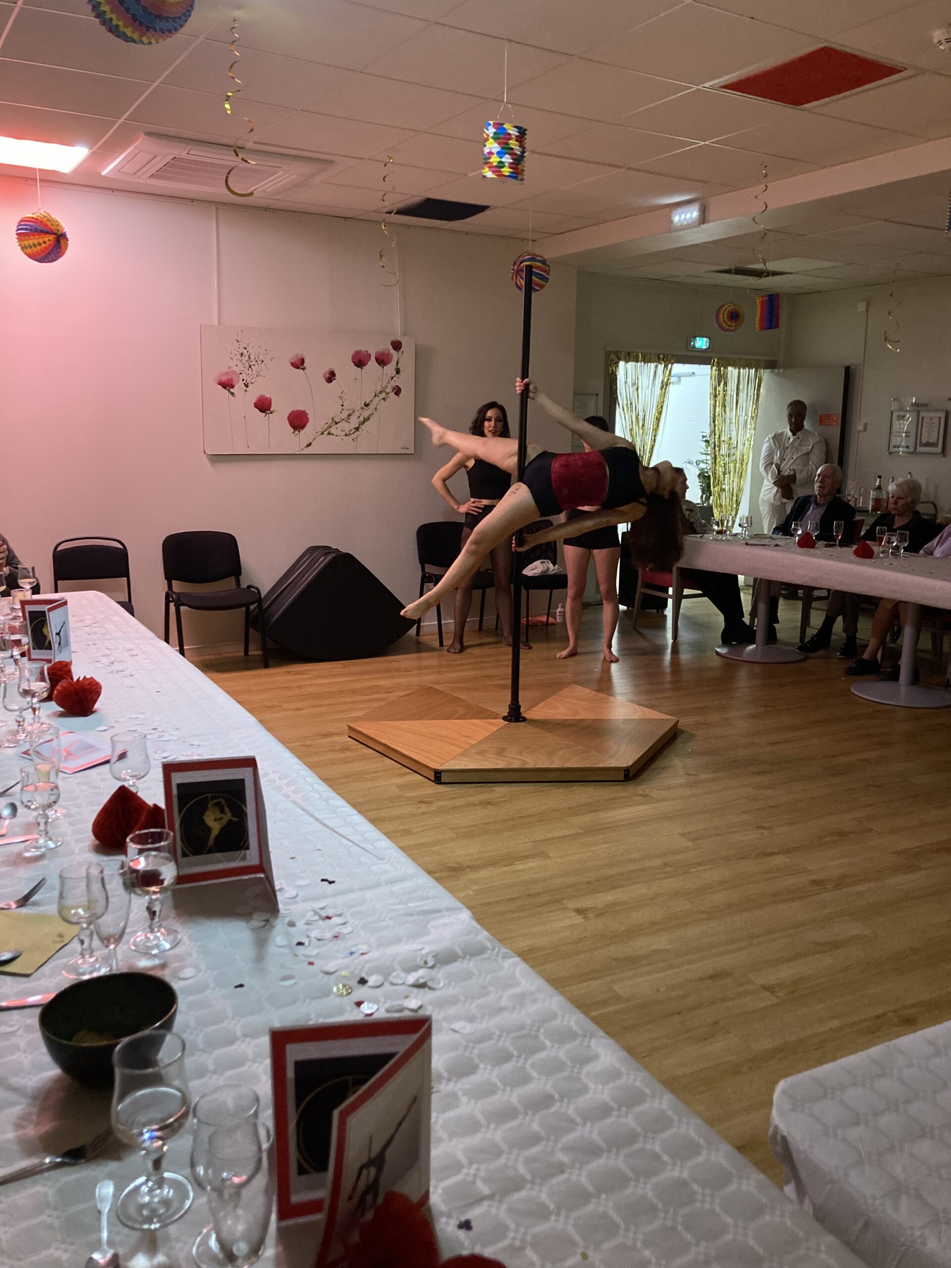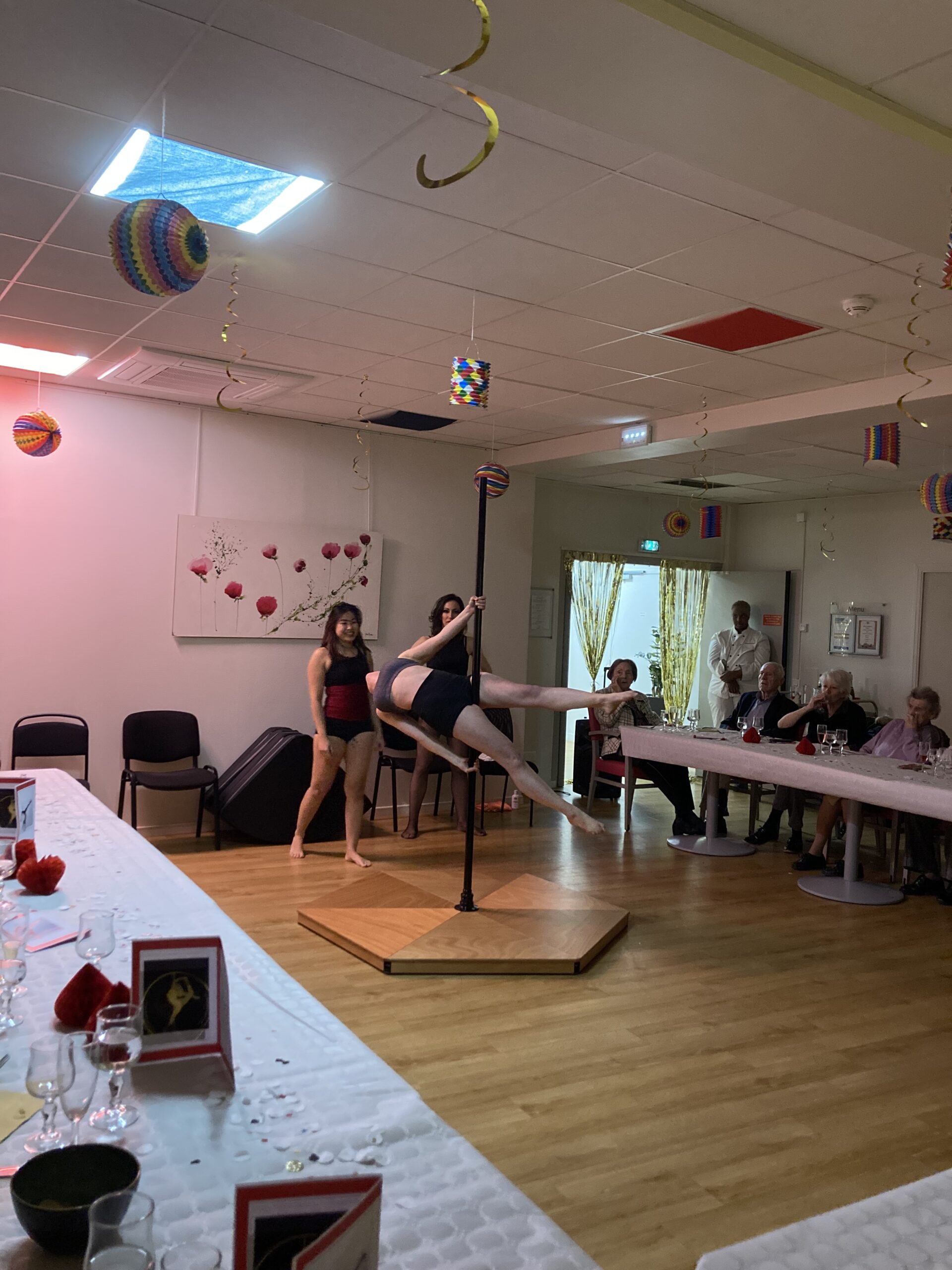 Mercredi 21 février, nous avons organisé une soirée Cabaret. Nous avons commencé par un apéritif au pétillant suivi d’une entrée de foie gras, puis d’une cassolette de fruits de mer et son riz, un plateau de saint marcelin et un moelleux au chocolat, crème anglaise. Entre chaque plat, une prestation dansée avec 4 danseuses de cabaret et 2 de pôle dance. L’ambiance était à son comble et s’est clôturée par le French Cancan typique du Moulin Rouge. Une très belle soirée qui a laissé des étoiles dans les yeux à nos résidents.
