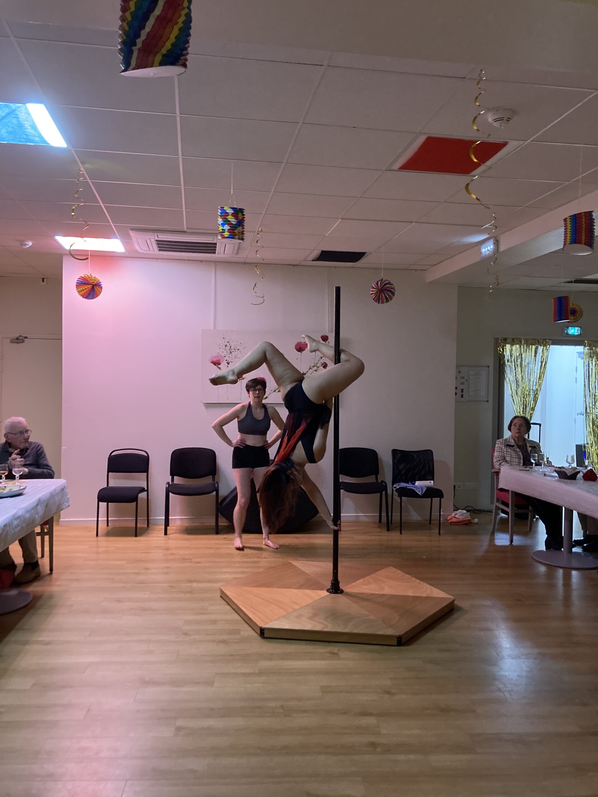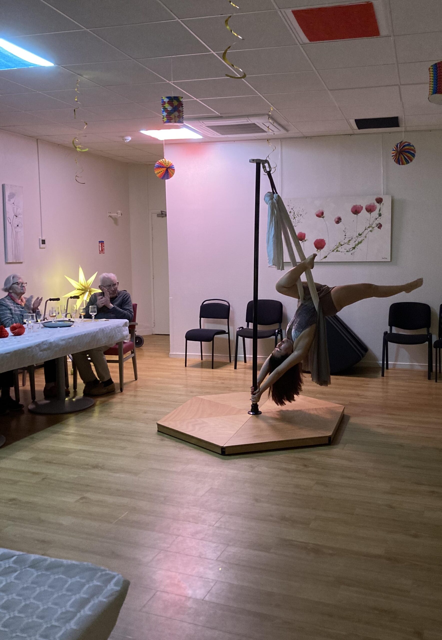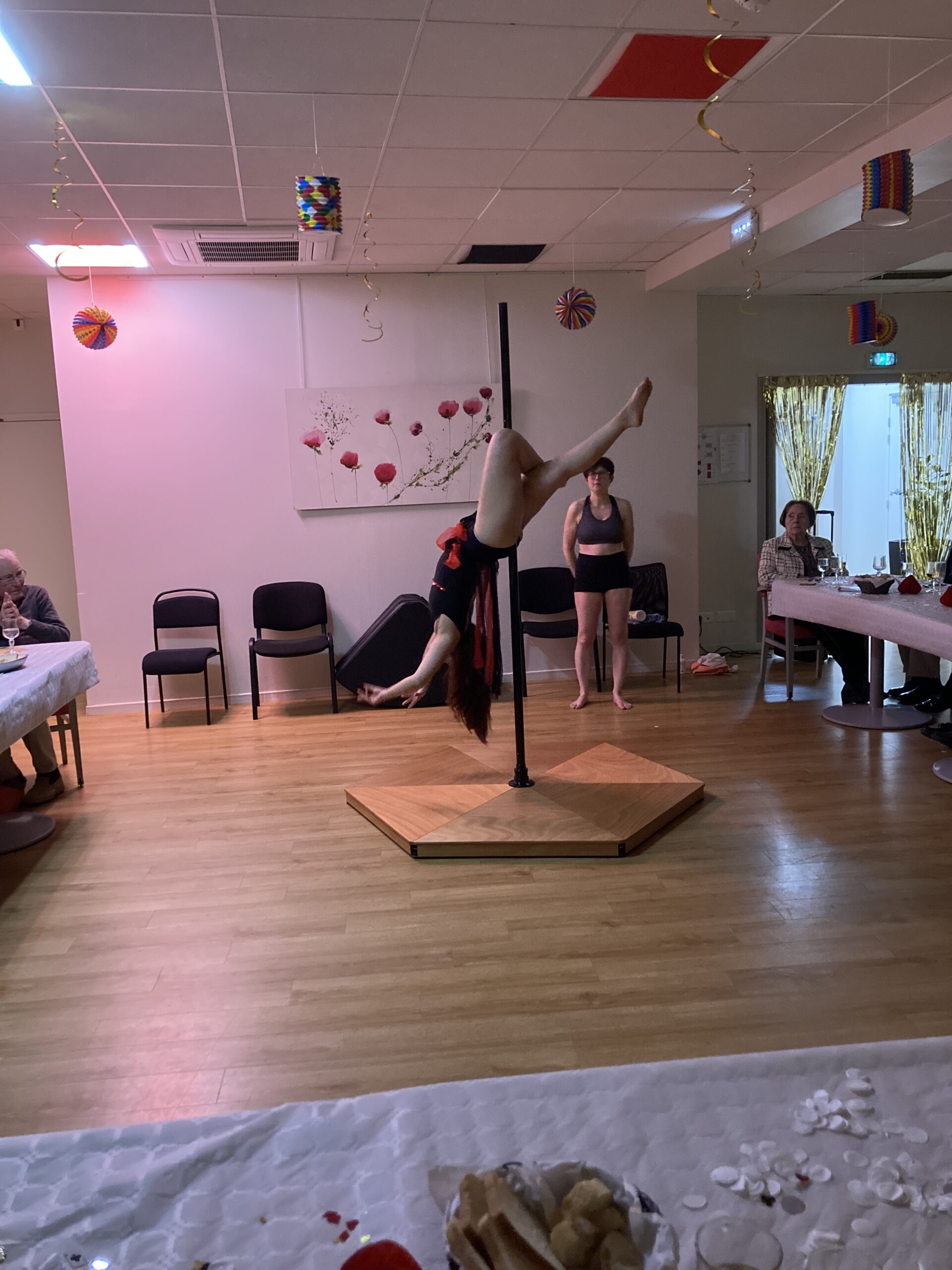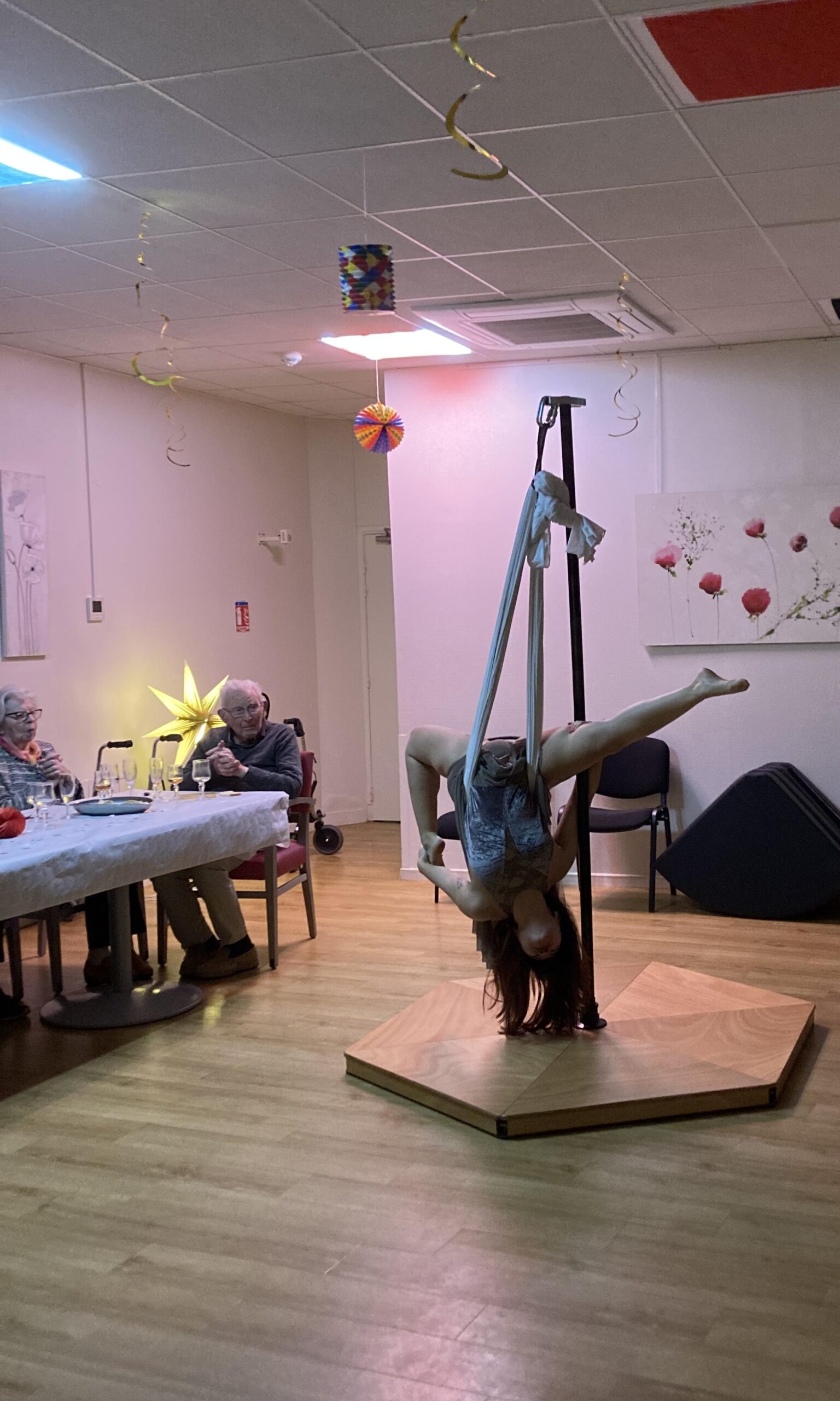 Mercredi 21 février, nous avons organisé une soirée Cabaret. Nous avons commencé par un apéritif au pétillant suivi d’une entrée de foie gras, puis d’une cassolette de fruits de mer et son riz, un plateau de saint marcelin et un moelleux au chocolat, crème anglaise. Entre chaque plat, une prestation dansée avec 4 danseuses de cabaret et 2 de pôle dance. L’ambiance était à son comble et s’est clôturée par le French Cancan typique du Moulin Rouge. Une très belle soirée qui a laissé des étoiles dans les yeux à nos résidents.