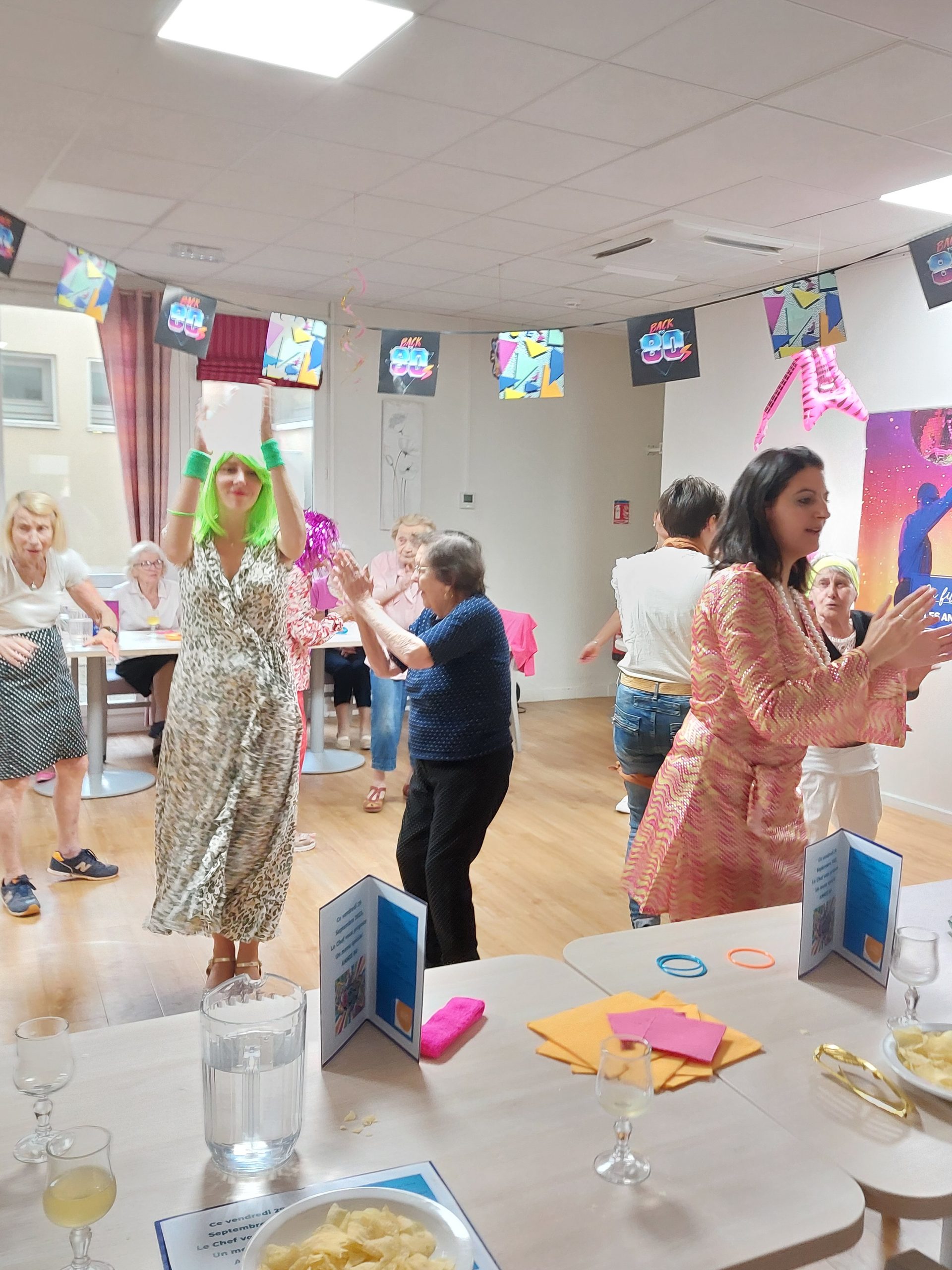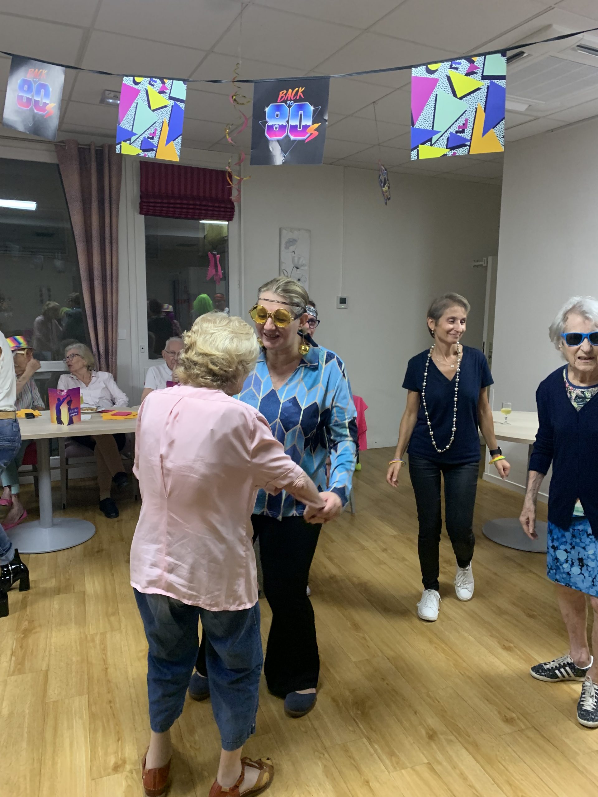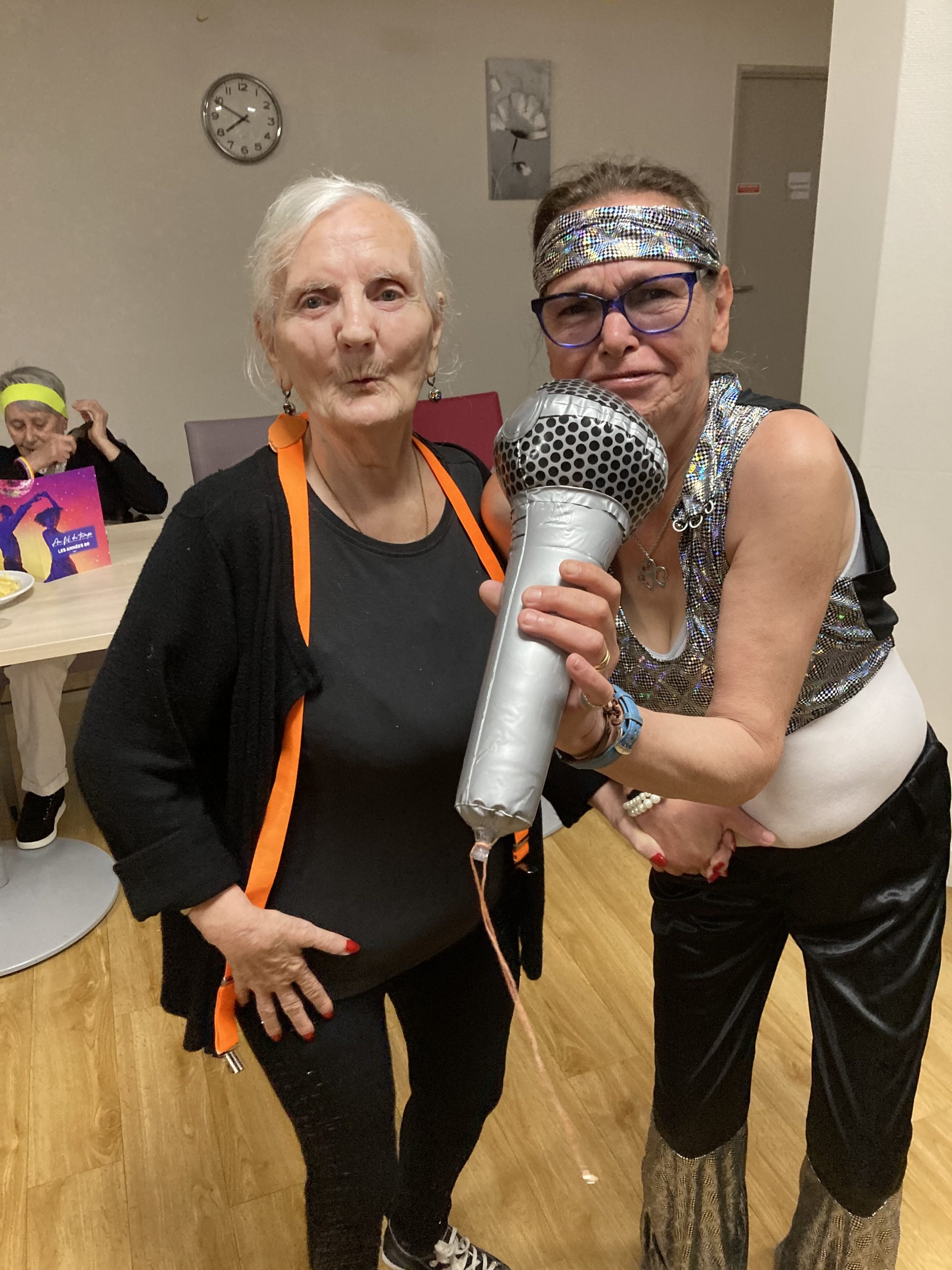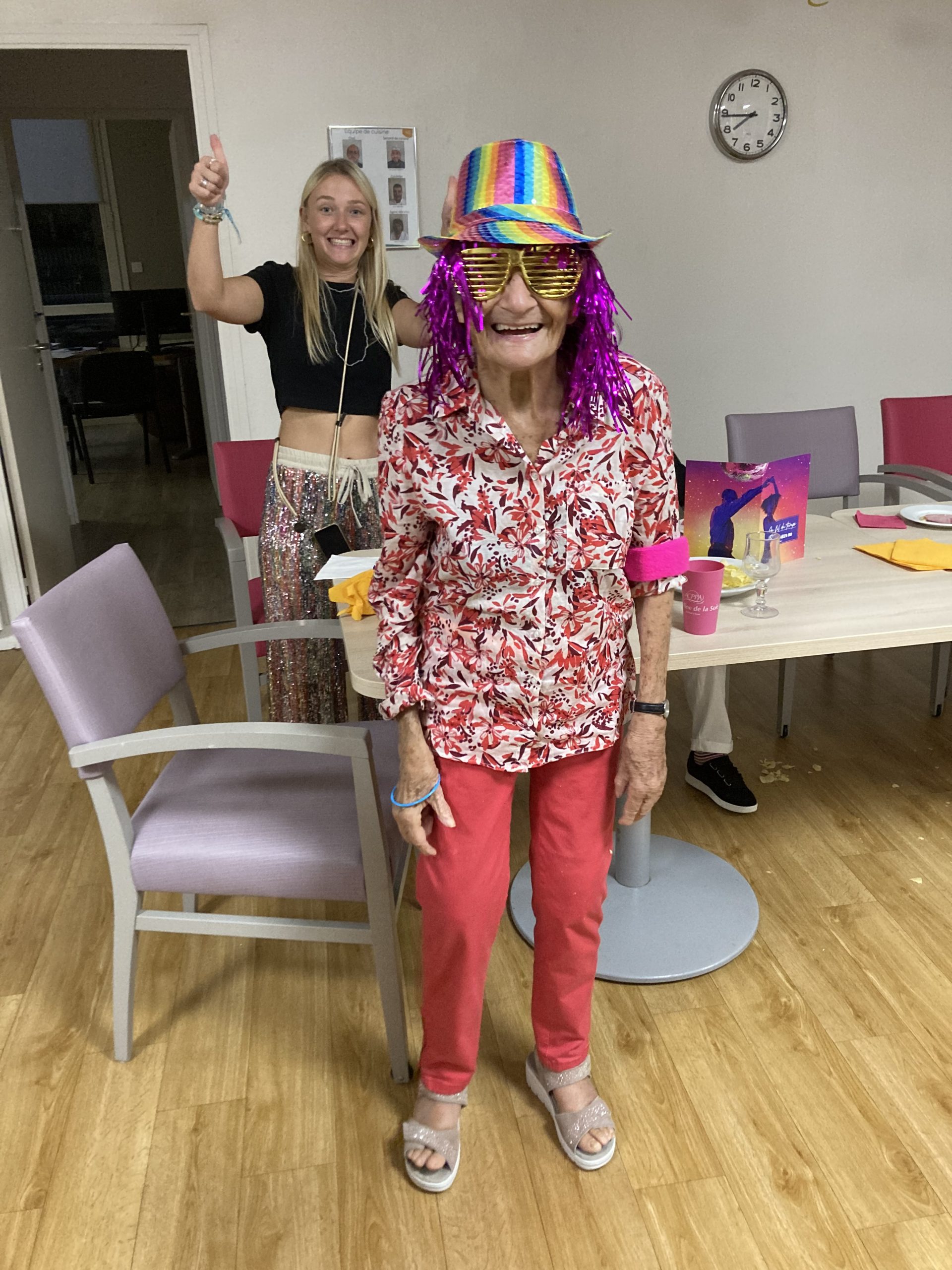 Pour terminer le mois de septembre, nous avons proposé aux résidents, une soirée Disco Fever. Nous nous sommes retrouvés vendredi 29 au soir pour diner ensemble et mettre le feu au Dance Floor. Un repas fait de gourmandises, avec des feuilletés, des croque-monsieurs, des crèmes au chocolat et des bonbons. Nous avons chanté sur les tubes et beaucoup rit grâce à nos déguisements. Une belle soirée.