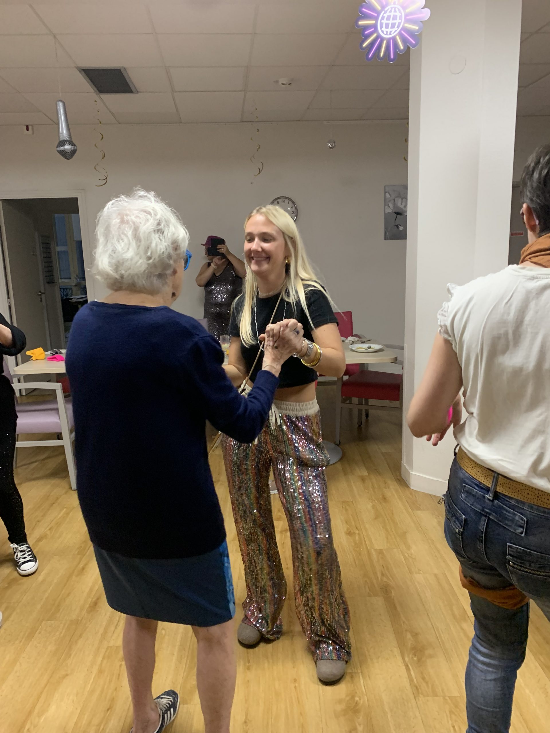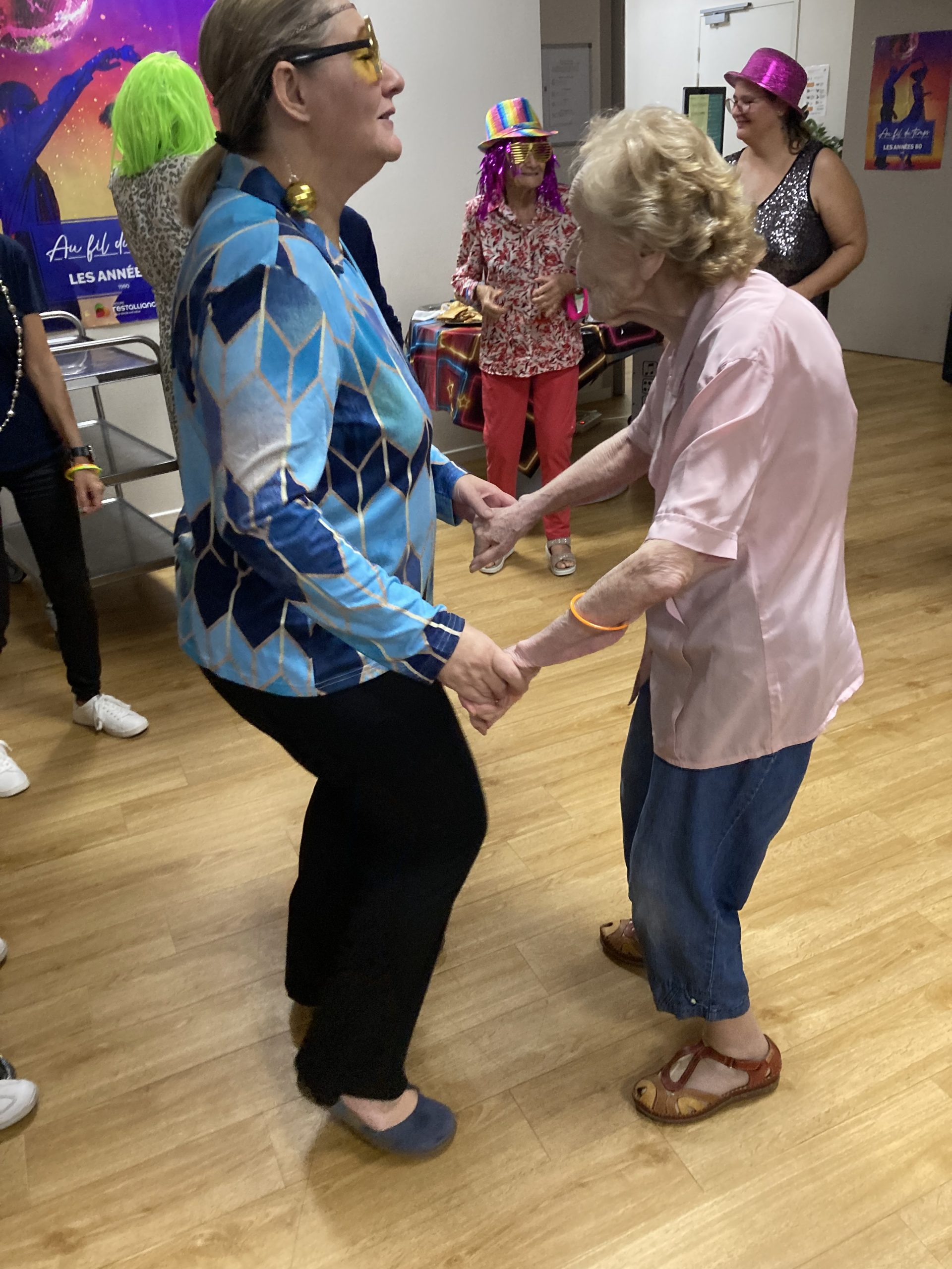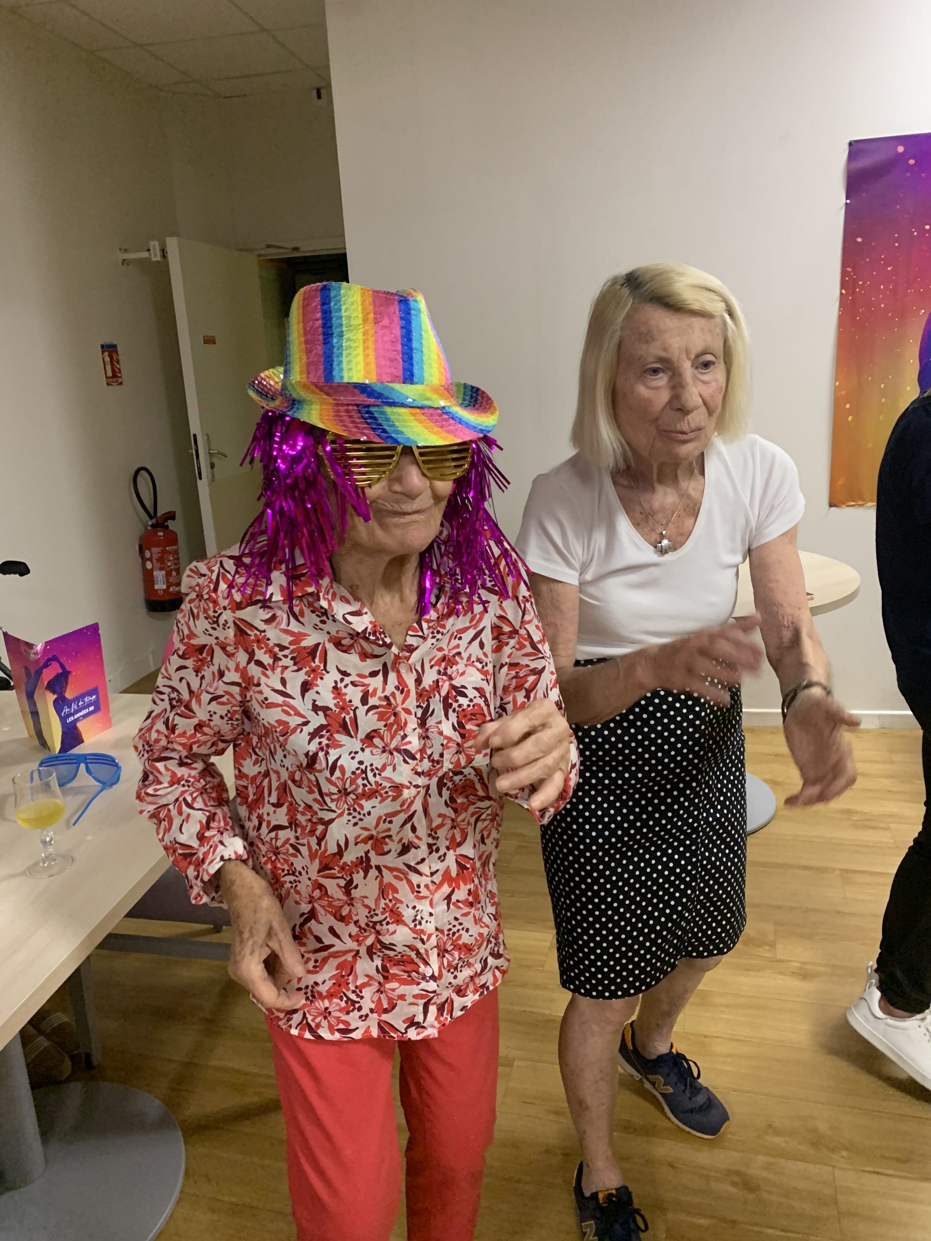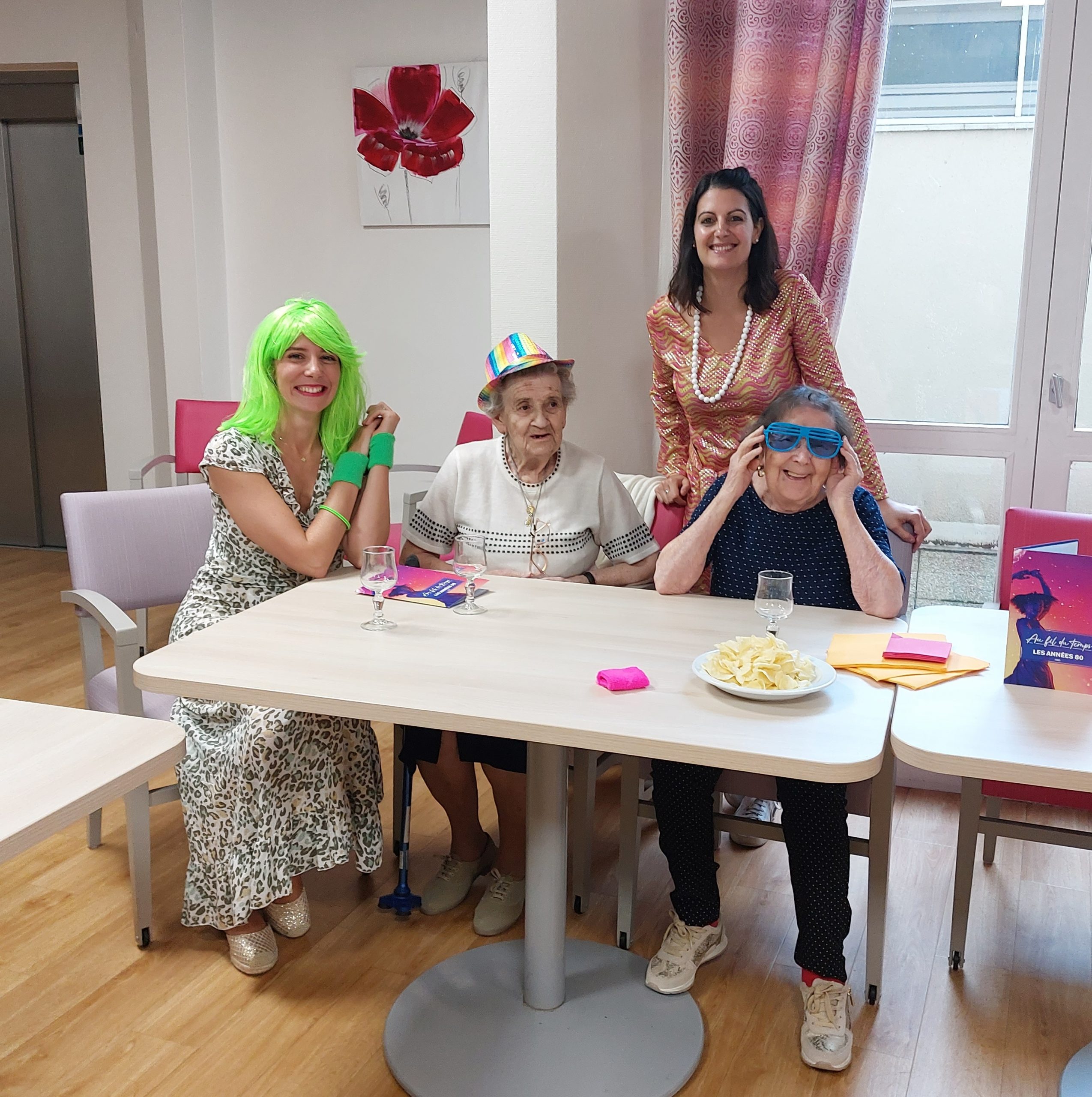 Pour terminer le mois de septembre, nous avons proposé aux résidents, une soirée Disco Fever. Nous nous sommes retrouvés vendredi 29 au soir pour diner ensemble et mettre le feu au Dance Floor. Un repas fait de gourmandises, avec des feuilletés, des croque-monsieurs, des crèmes au chocolat et des bonbons. Nous avons chanté sur les tubes et beaucoup rit grâce à nos déguisements. Une belle soirée.