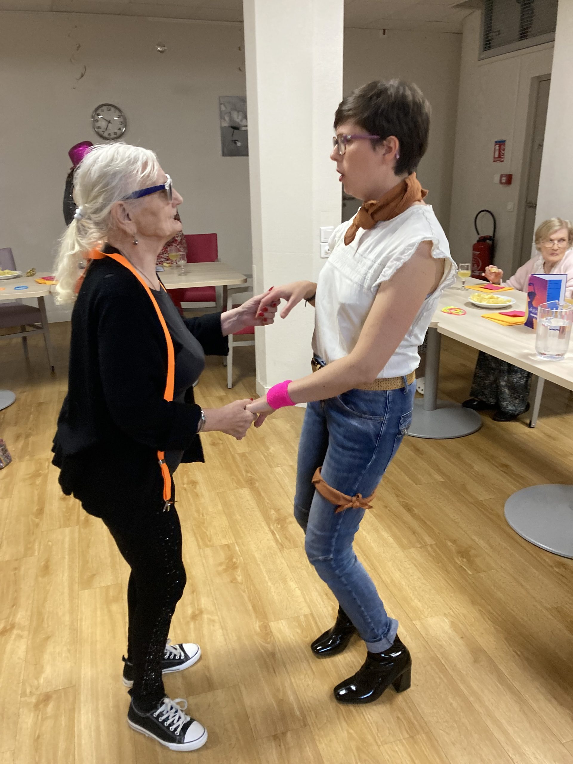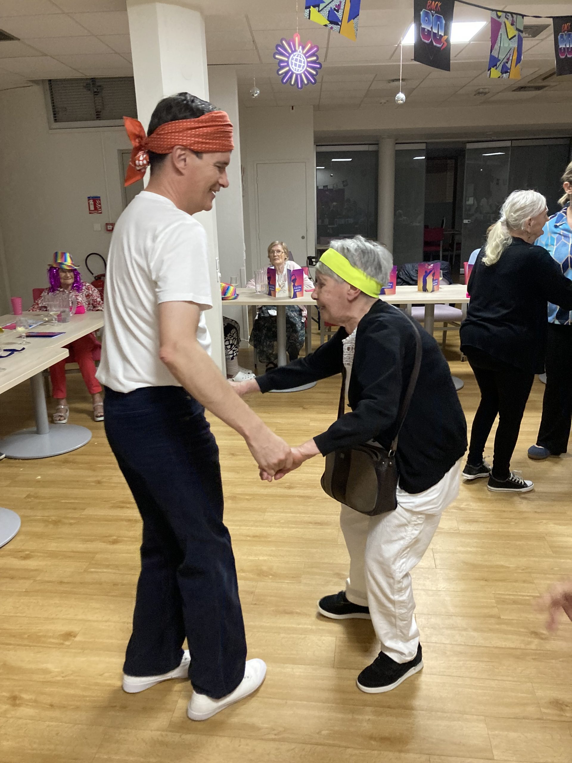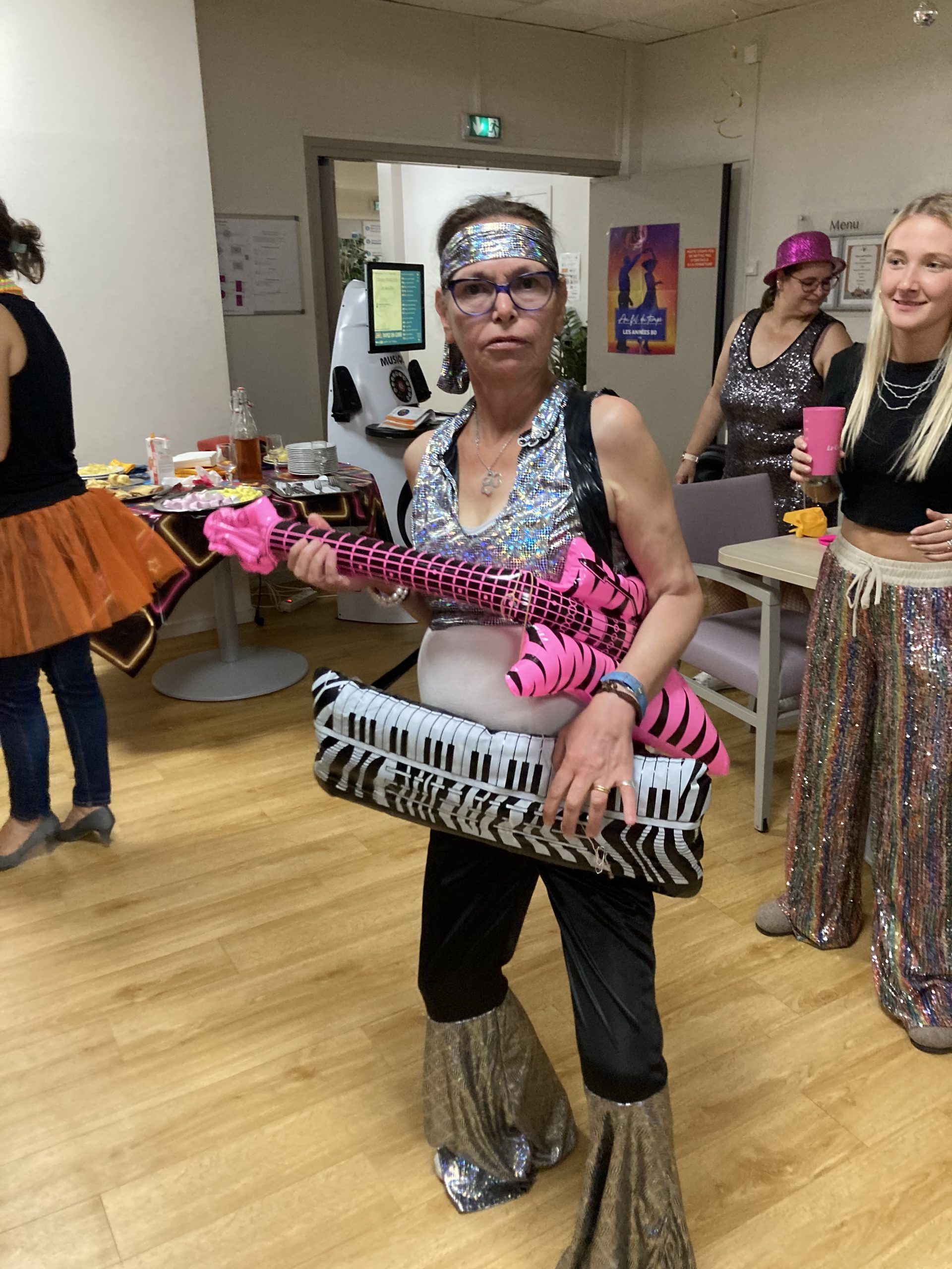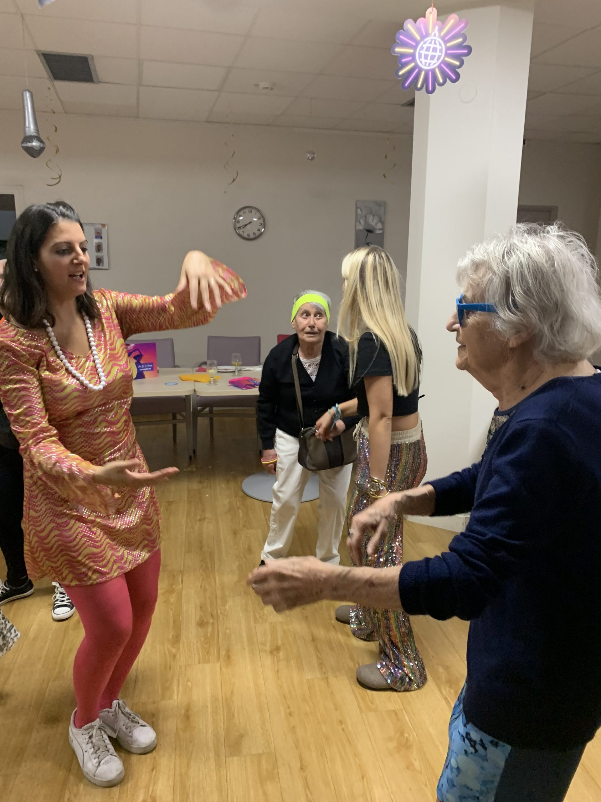 Pour terminer le mois de septembre, nous avons proposé aux résidents, une soirée Disco Fever. Nous nous sommes retrouvés vendredi 29 au soir pour diner ensemble et mettre le feu au Dance Floor. Un repas fait de gourmandises, avec des feuilletés, des croque-monsieurs, des crèmes au chocolat et des bonbons. Nous avons chanté sur les tubes et beaucoup rit grâce à nos déguisements. Une belle soirée.