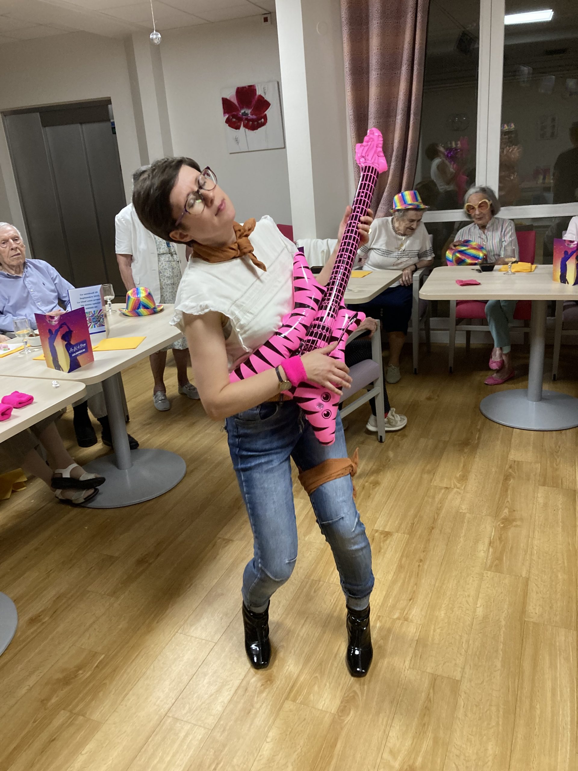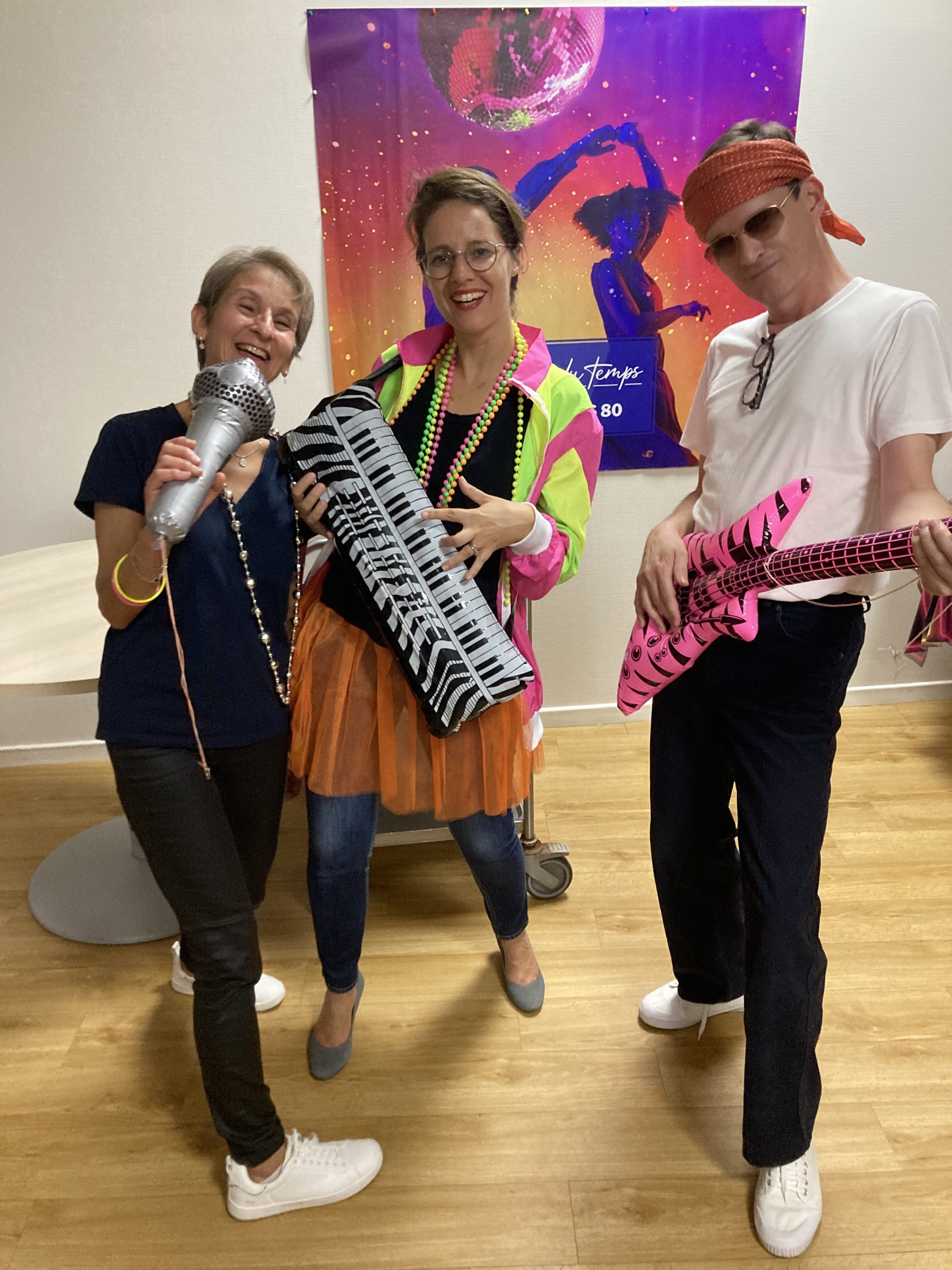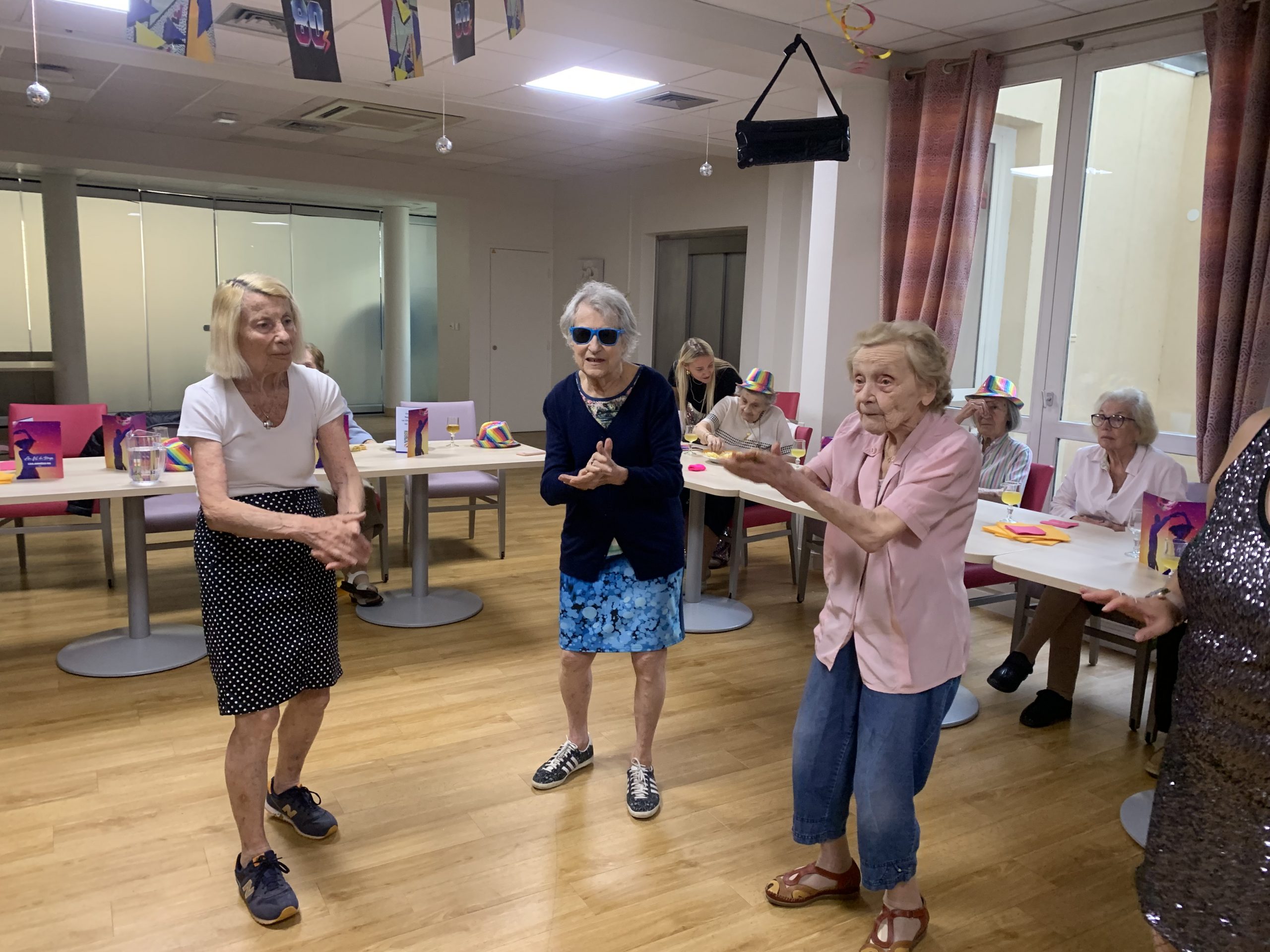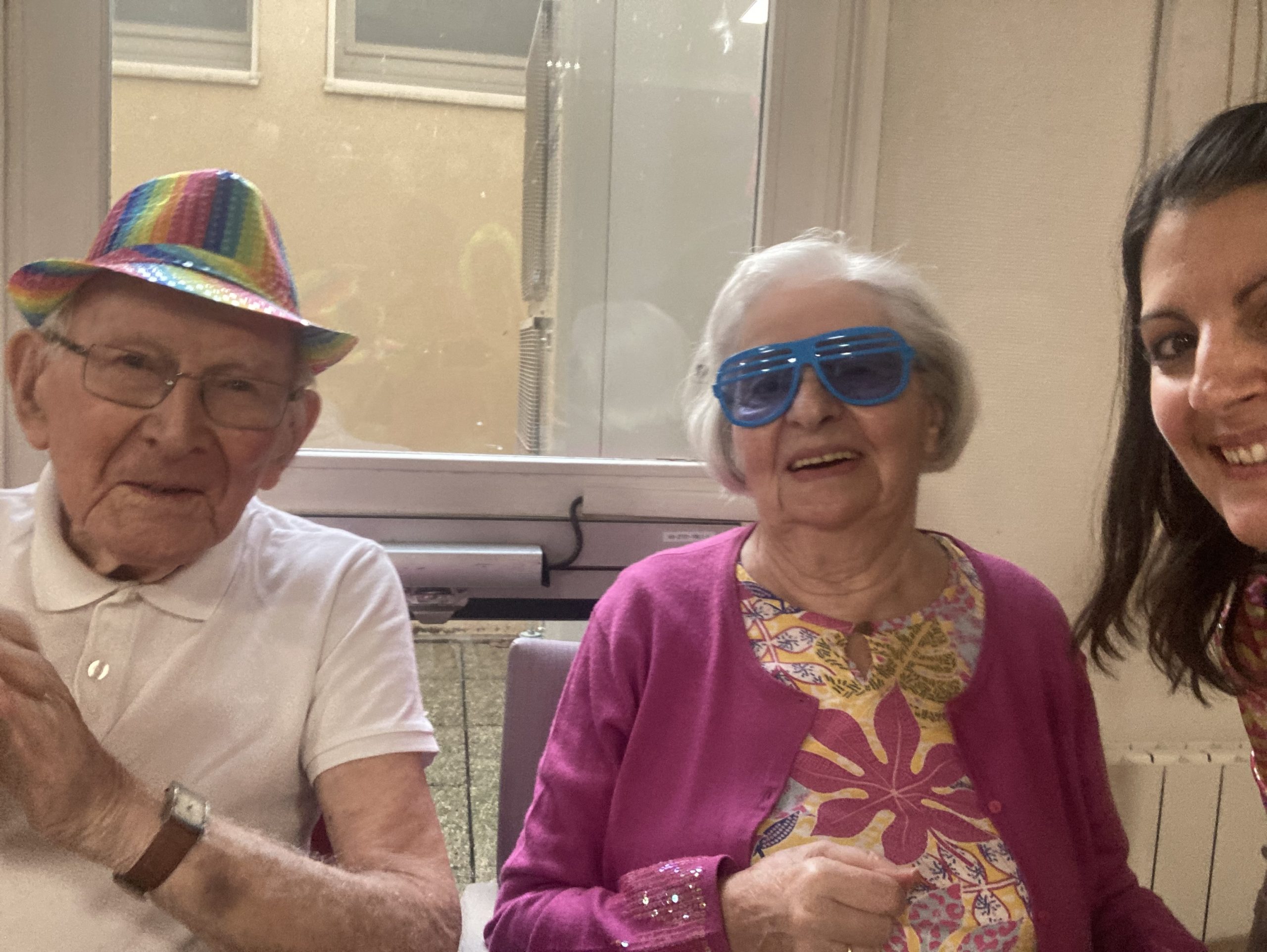 Pour terminer le mois de septembre, nous avons proposé aux résidents, une soirée Disco Fever. Nous nous sommes retrouvés vendredi 29 au soir pour diner ensemble et mettre le feu au Dance Floor. Un repas fait de gourmandises, avec des feuilletés, des croque-monsieurs, des crèmes au chocolat et des bonbons. Nous avons chanté sur les tubes et beaucoup rit grâce à nos déguisements. Une belle soirée.