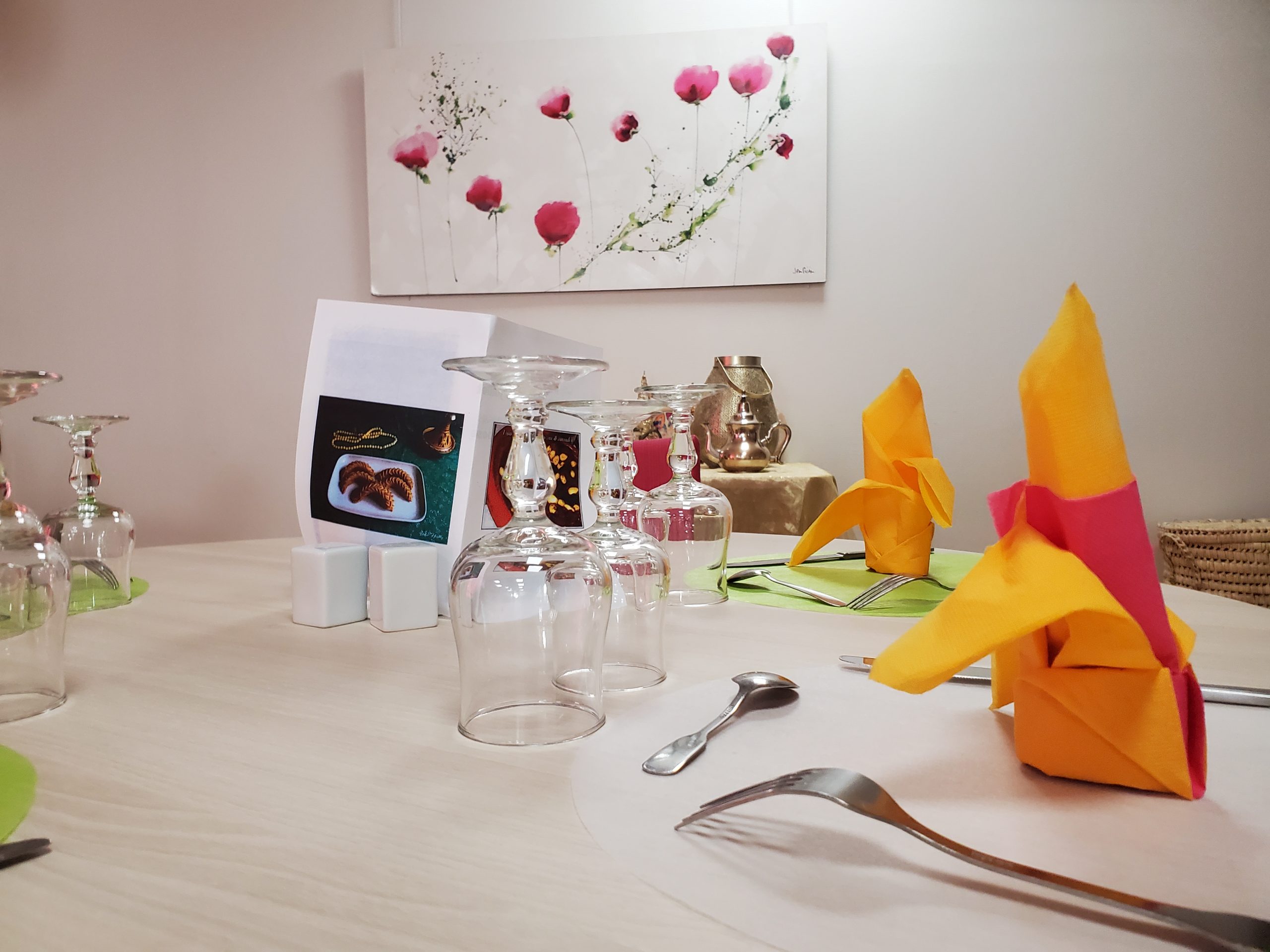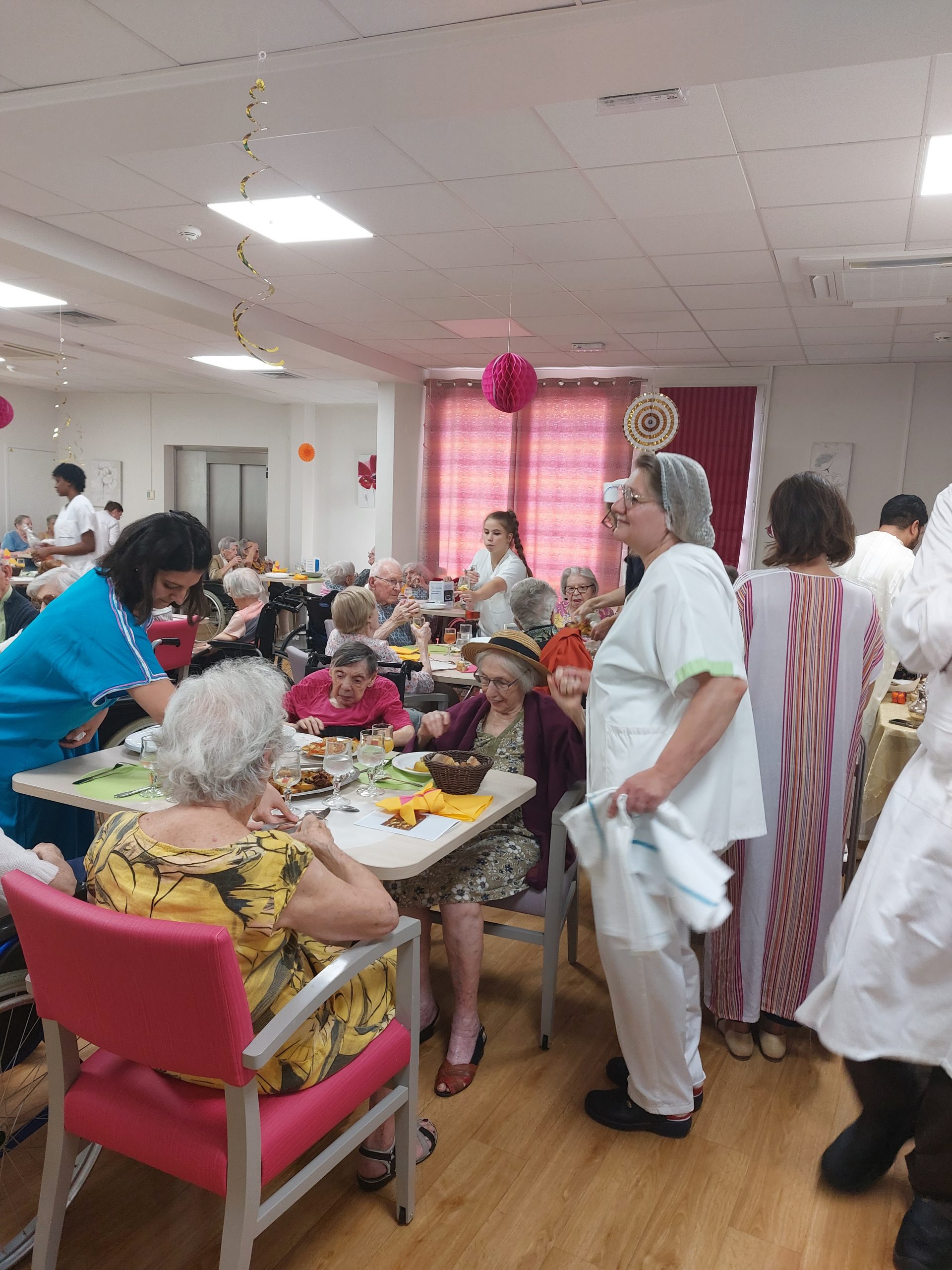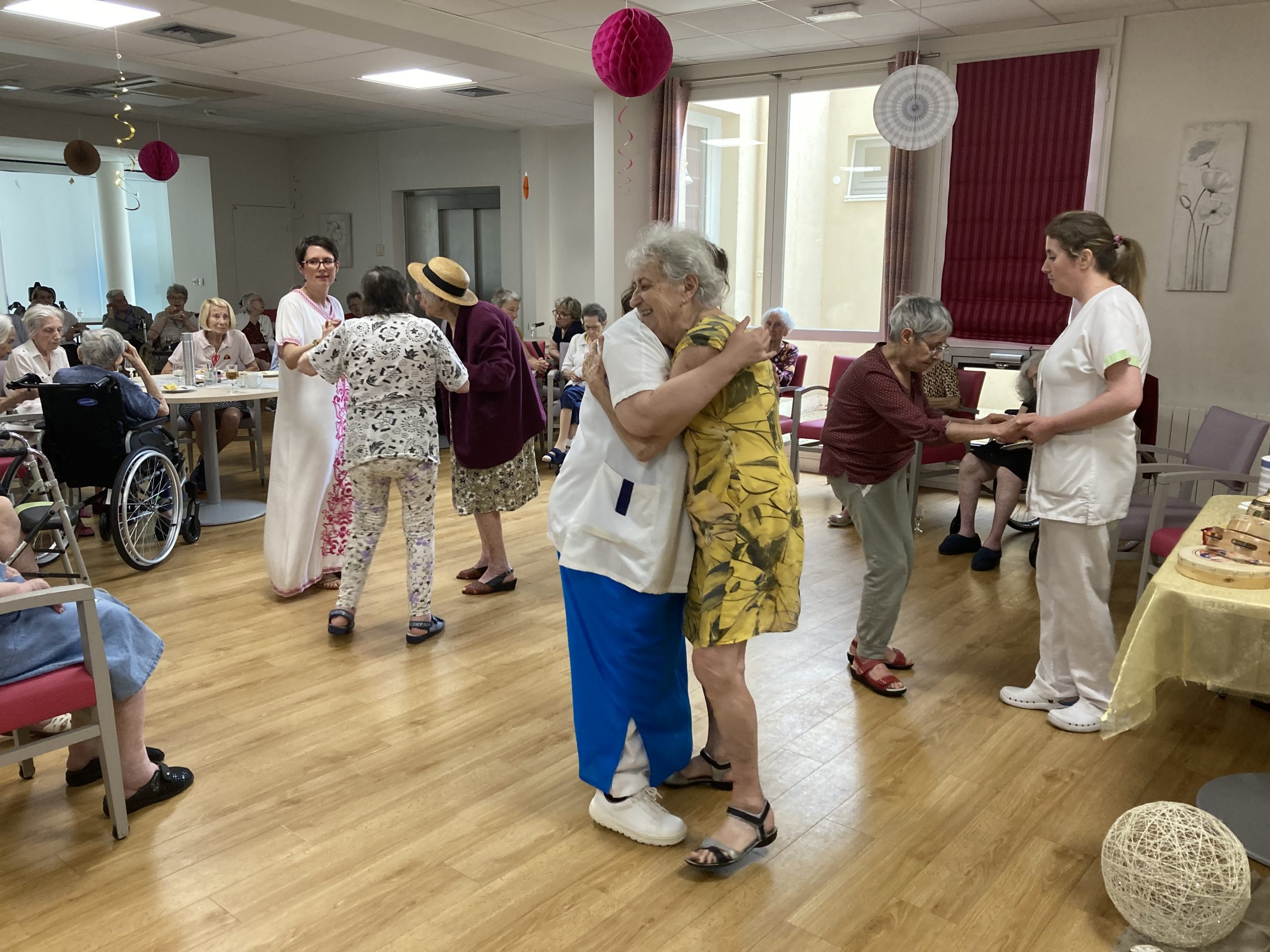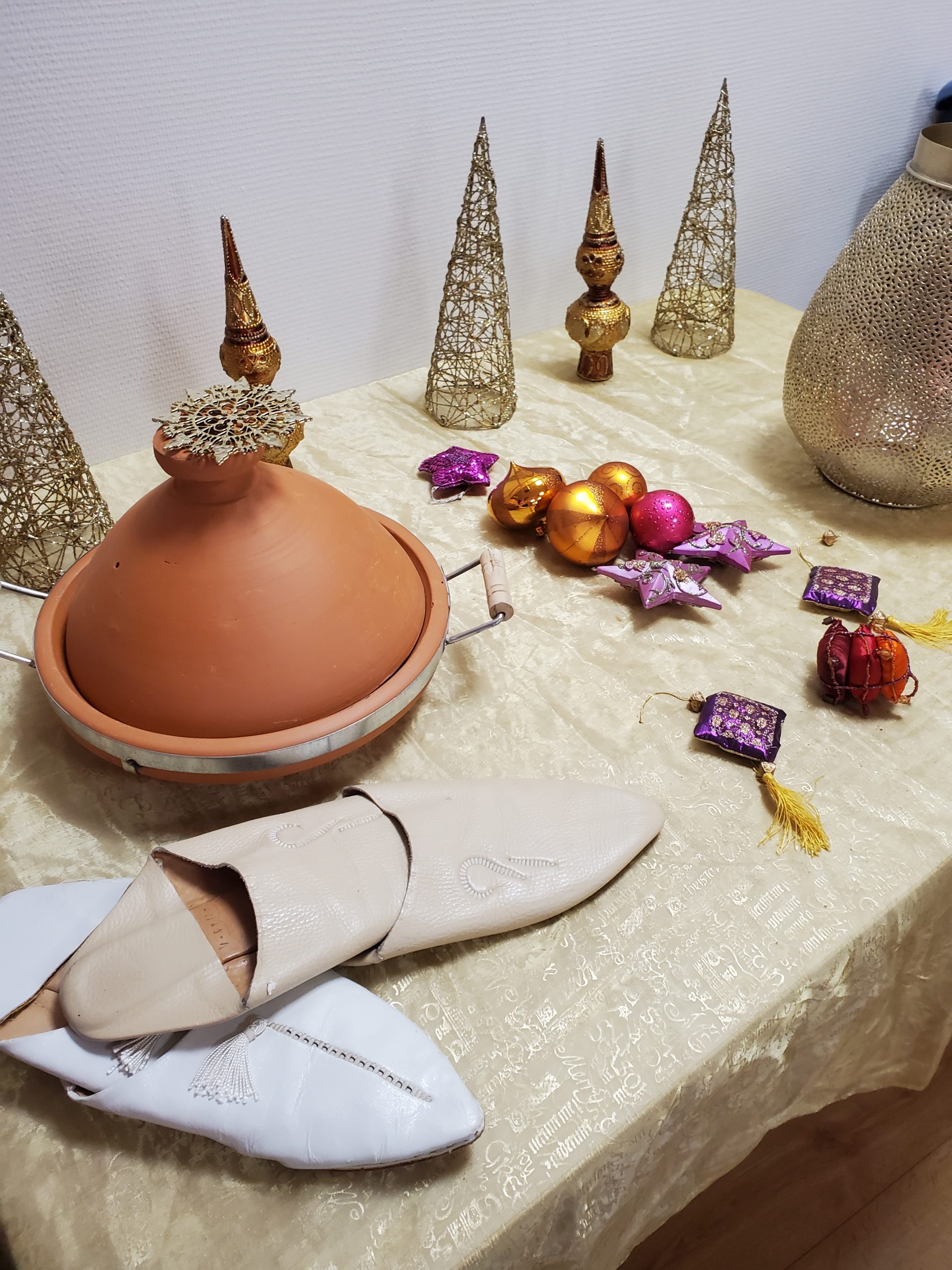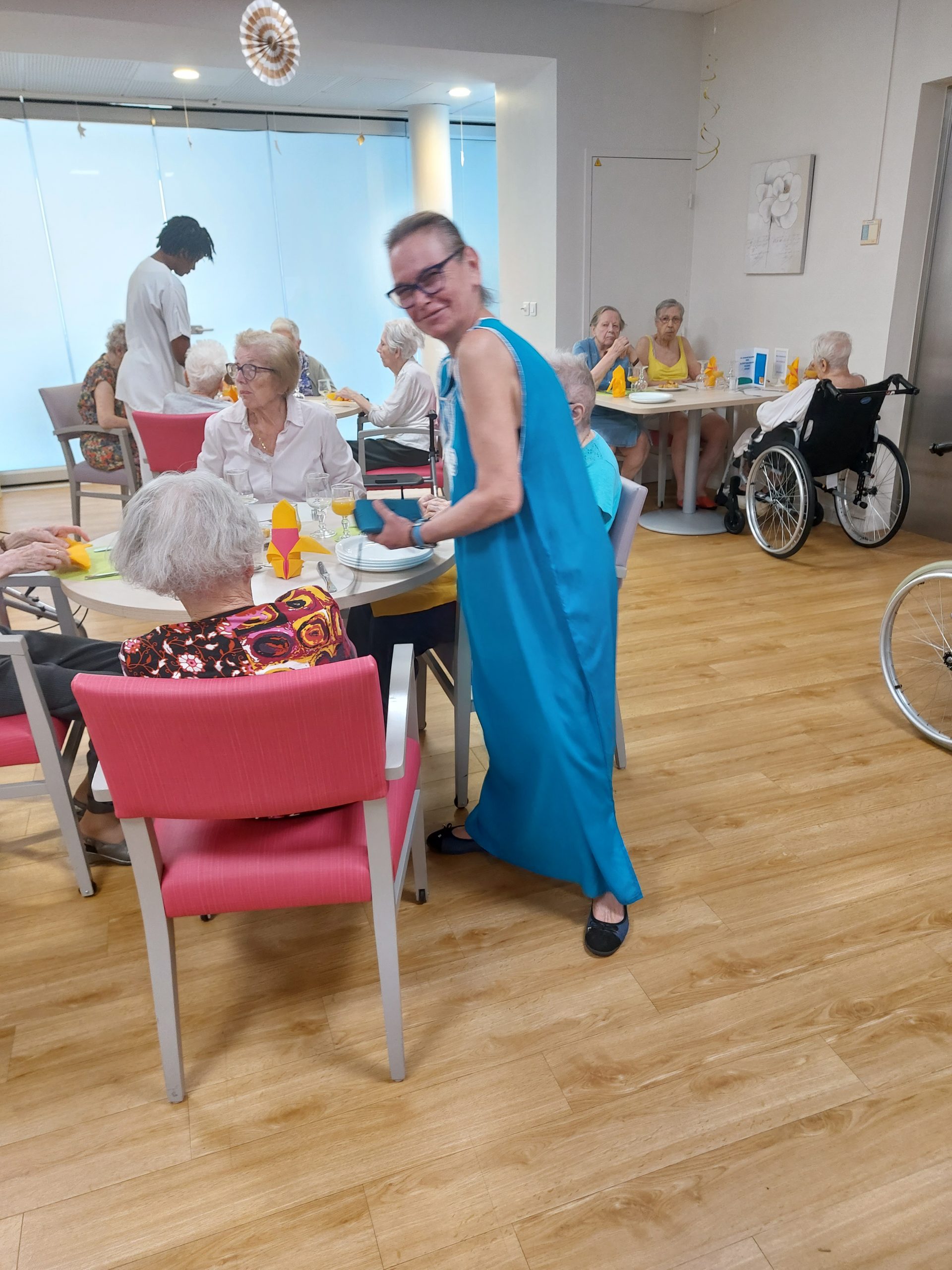 Vendredi 28 juillet, nous avons voyagé au Maroc et en Algérie grâce aux équipes qui ont toutes joué le jeu. La cuisine nous a préparé un repas digne de ce nom avec une Tajine au poulet-citron-abricot, un fromage blanc au miel et des pâtisseries maisons. Nous avons tous aidé au service en tenues traditionnelles accompagnés de musiques berbères. Un moment chaleureux et plein d’enthousiasme. L’après-midi, nous nous sommes retrouvés pour partager un gâteau aux amandes et du thé à la menthe. Nous nous sommes aussi essayé à la danse kabyle.