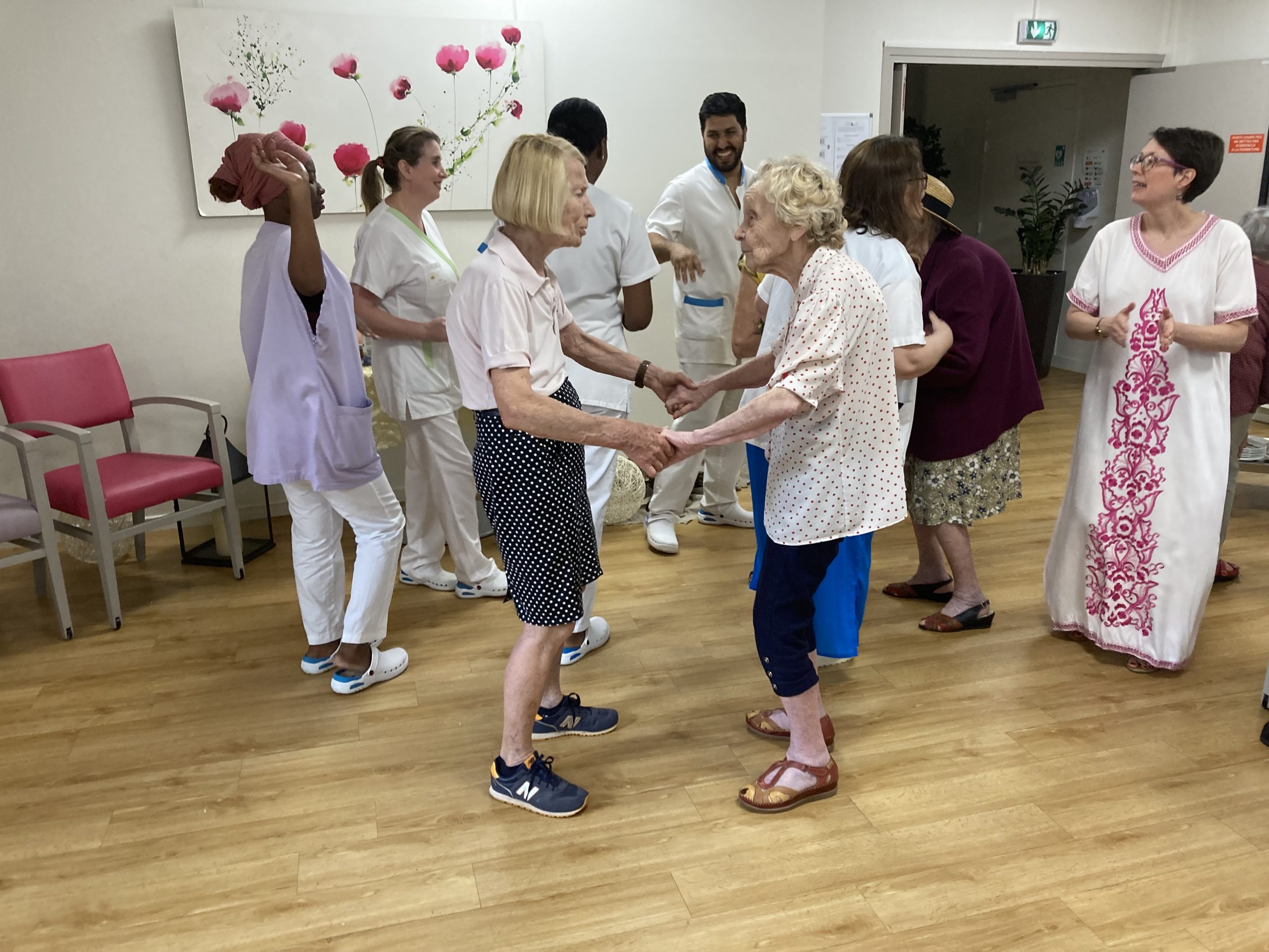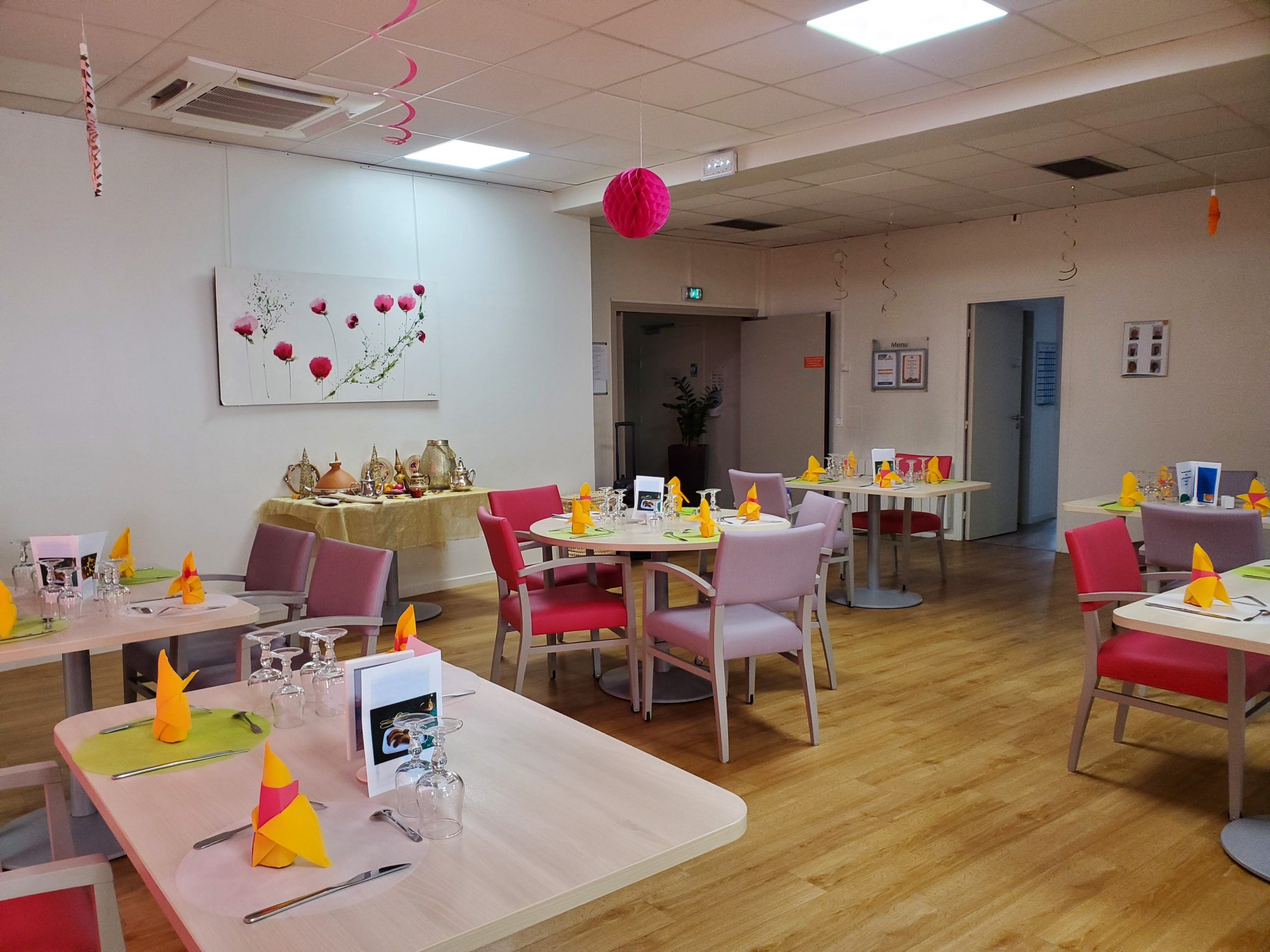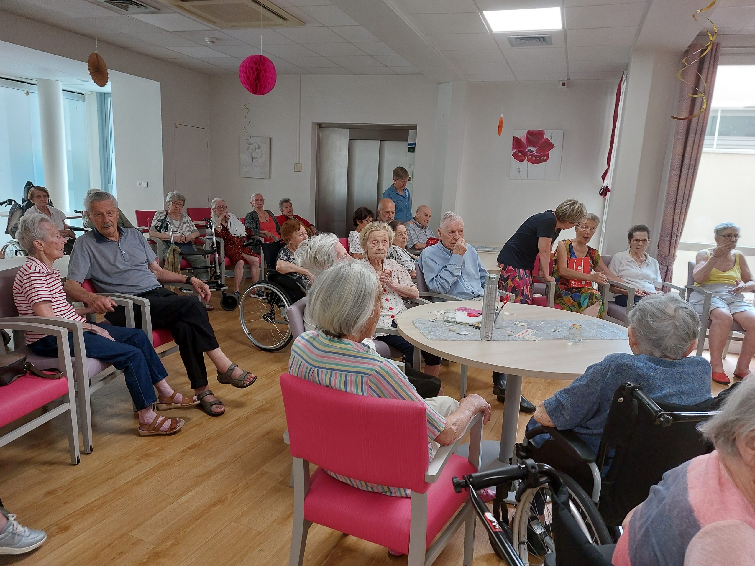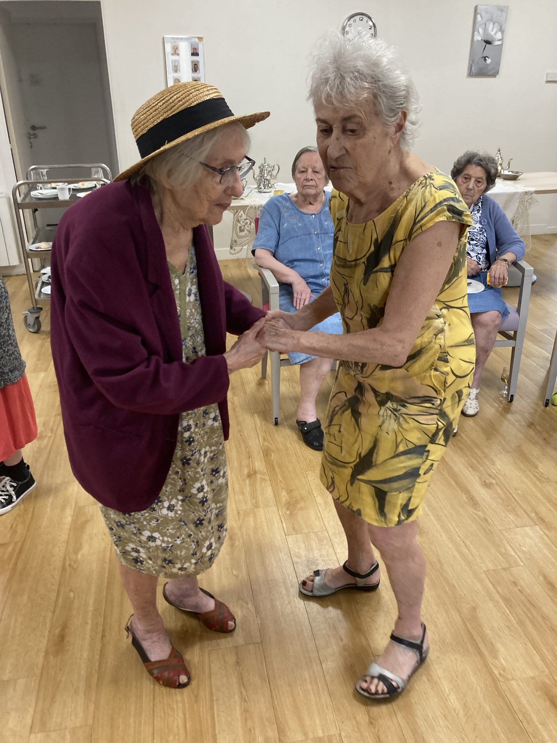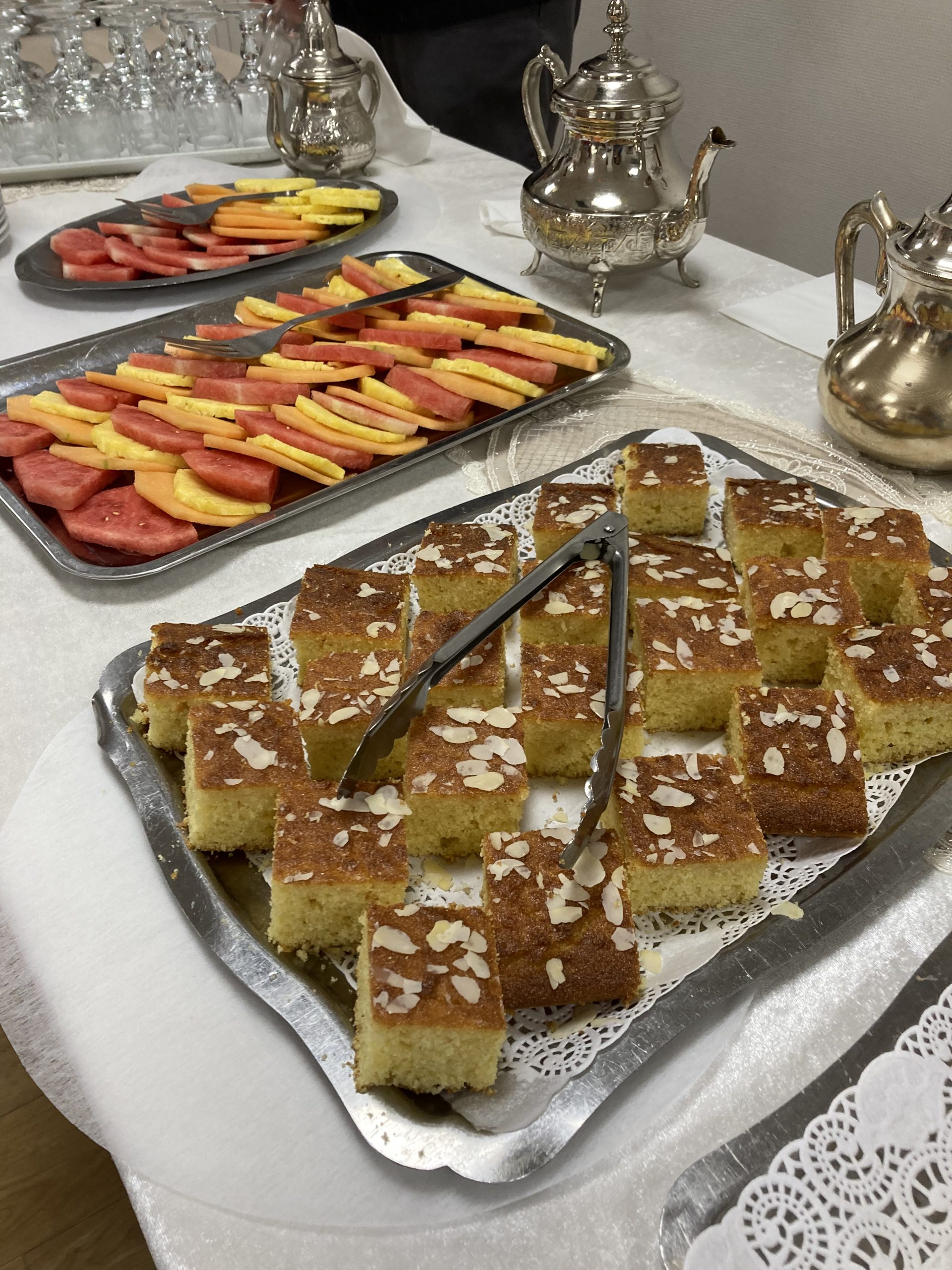 Vendredi 28 juillet, nous avons voyagé au Maroc et en Algérie grâce aux équipes qui ont toutes joué le jeu. La cuisine nous a préparé un repas digne de ce nom avec une Tajine au poulet-citron-abricot, un fromage blanc au miel et des pâtisseries maisons. Nous avons tous aidé au service en tenues traditionnelles accompagnés de musiques berbères. Un moment chaleureux et plein d’enthousiasme. L’après-midi, nous nous sommes retrouvés pour partager un gâteau aux amandes et du thé à la menthe. Nous nous sommes aussi essayé à la danse kabyle.